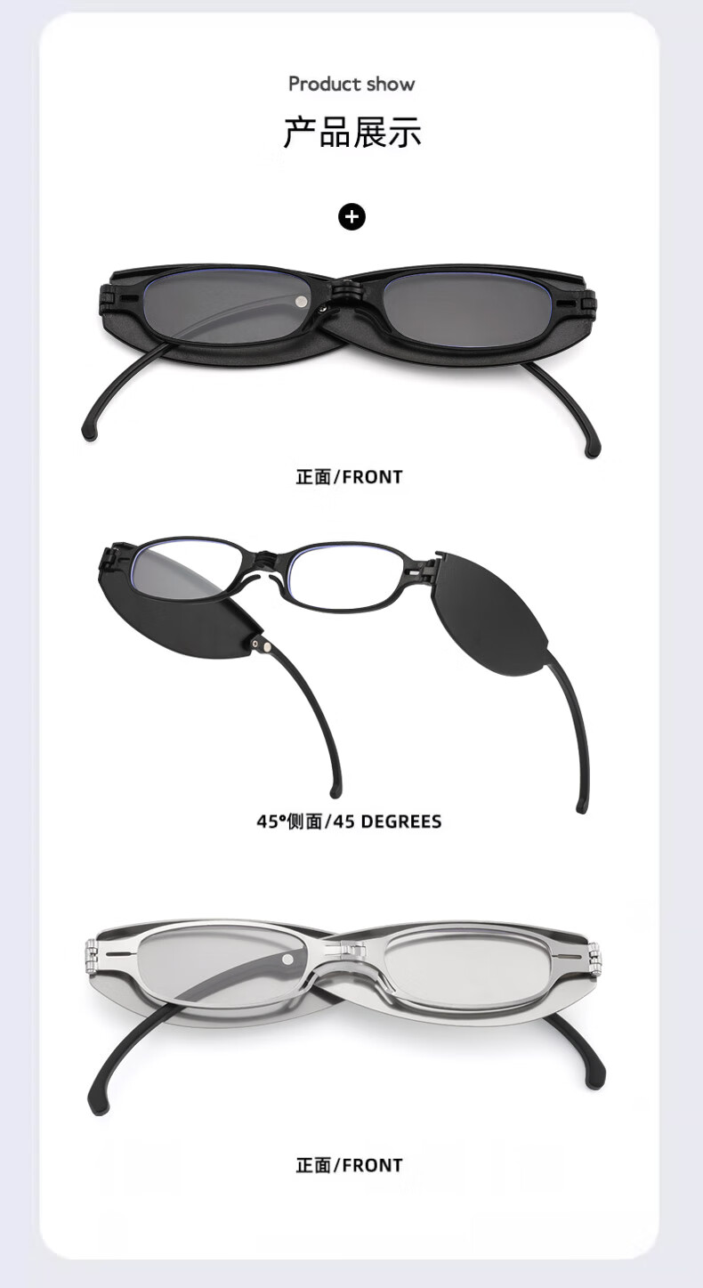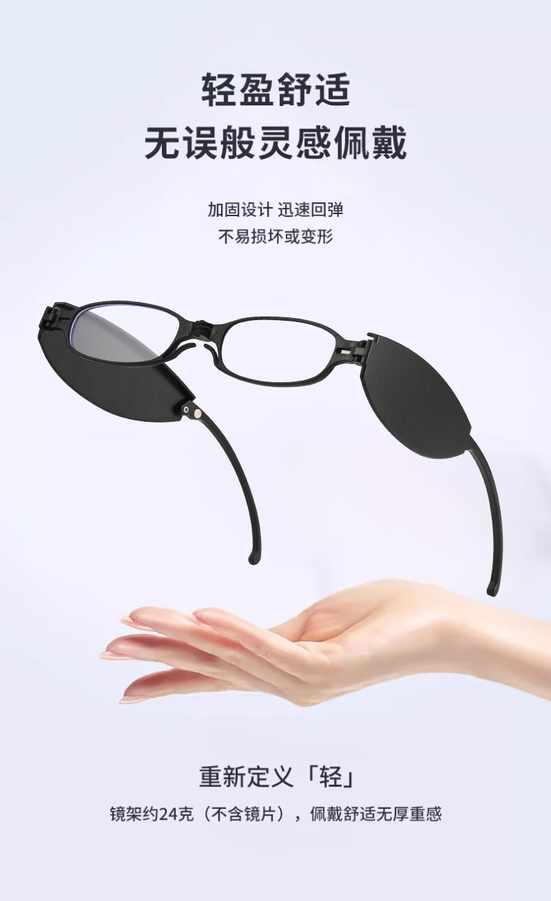 LESCA LUNETIER时尚折叠便携迷你防蓝光老花镜男高清眼镜老花镜女 黑色 150度