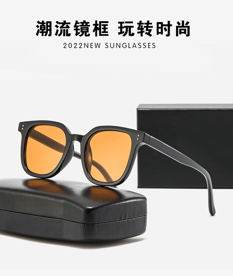 LESCA LUNETIER复古gm茶色墨镜男款开车橘黄色眼镜女时尚太阳镜潮圆脸 落日橘