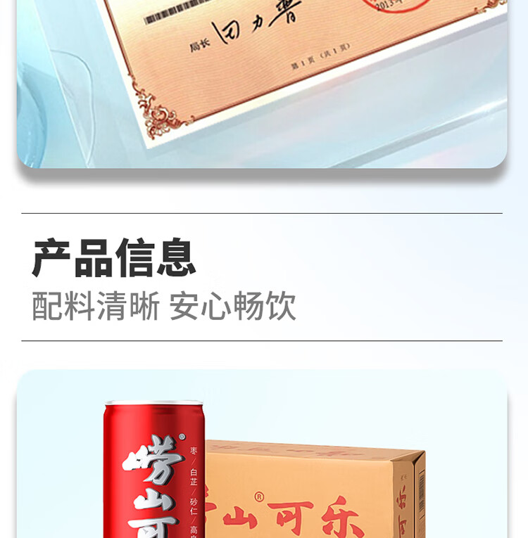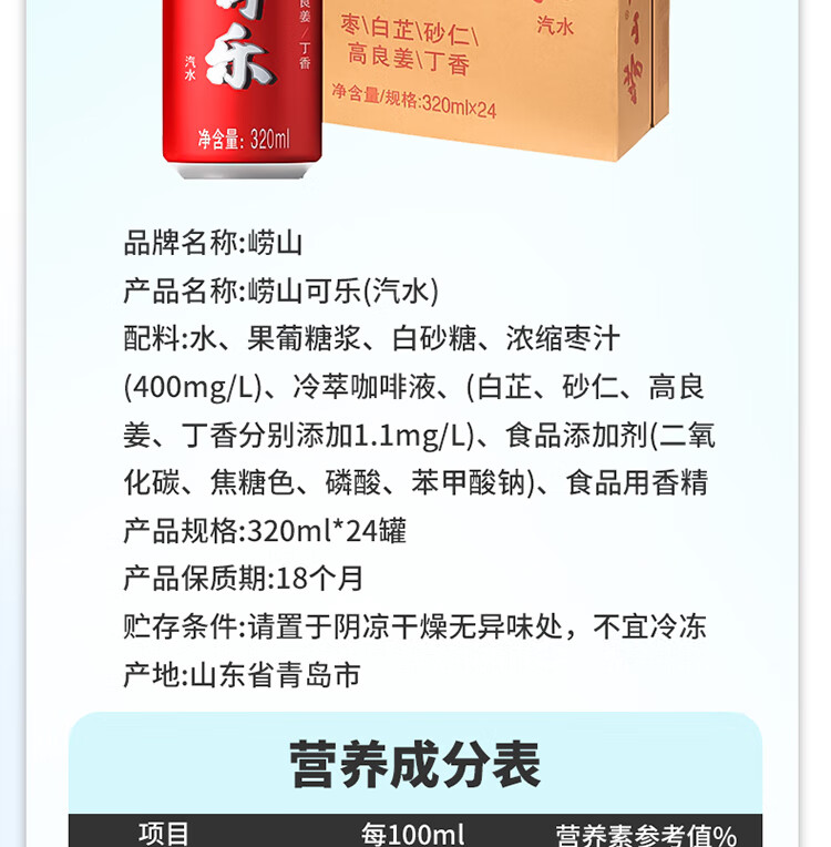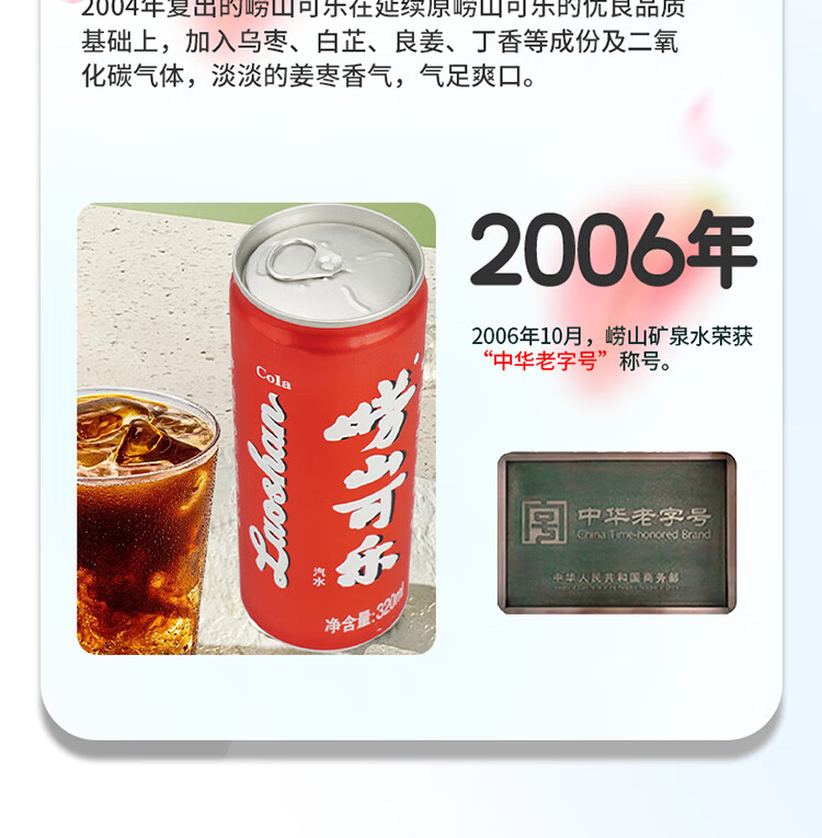 崂山【任嘉伦推荐款】可乐汽水 中华老字号 国货碳酸饮料 320ml*24罐