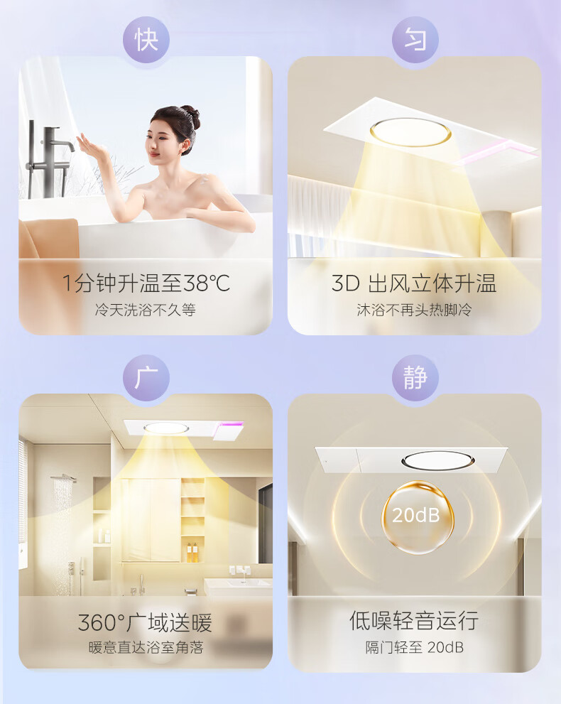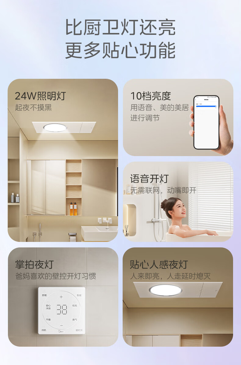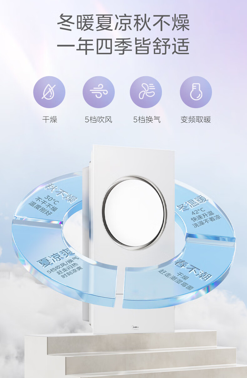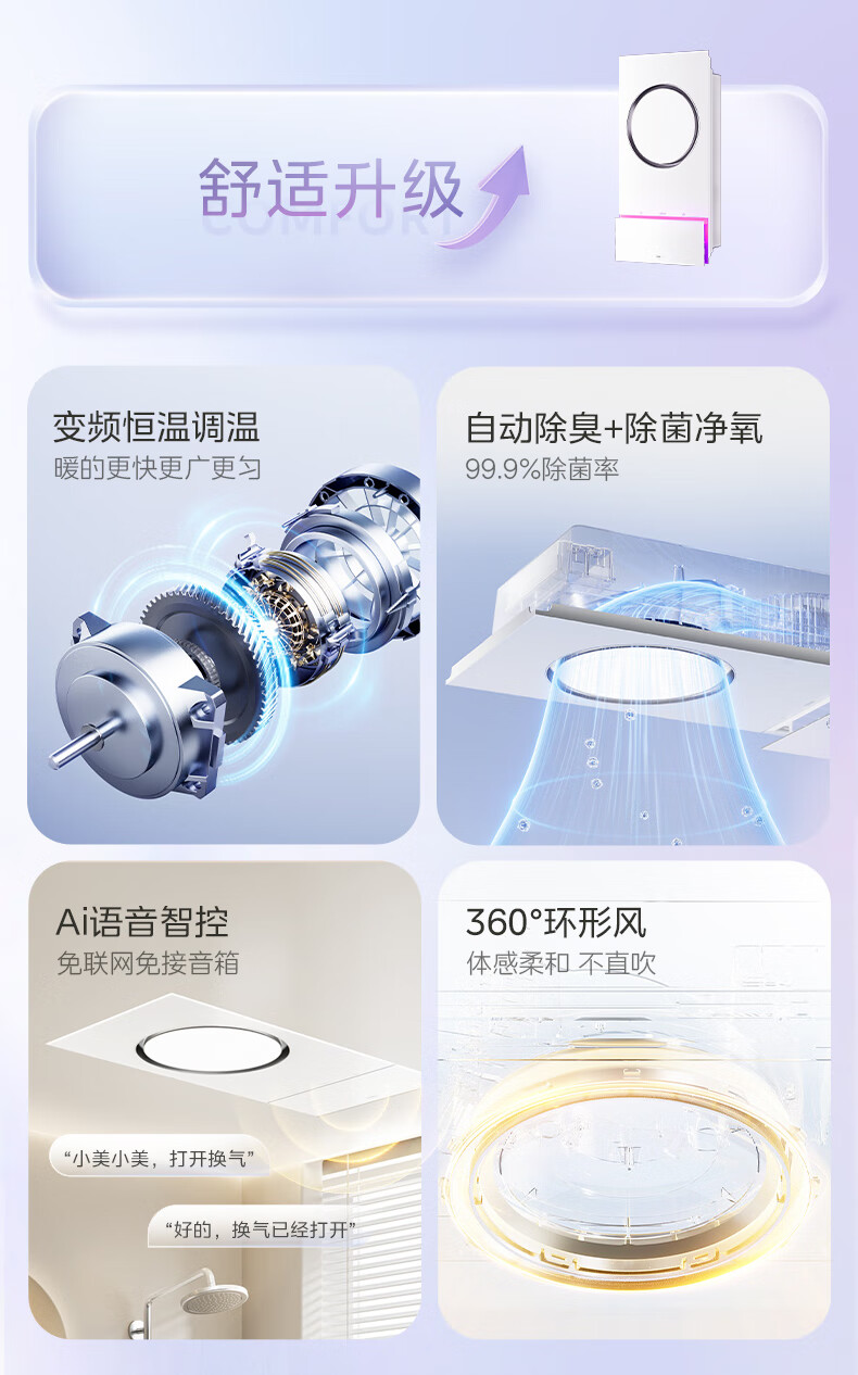 美的(Midea)风暖环形浴霸智能浴室排气取暖卫生间吊顶负离子除菌暖风F3浴霸