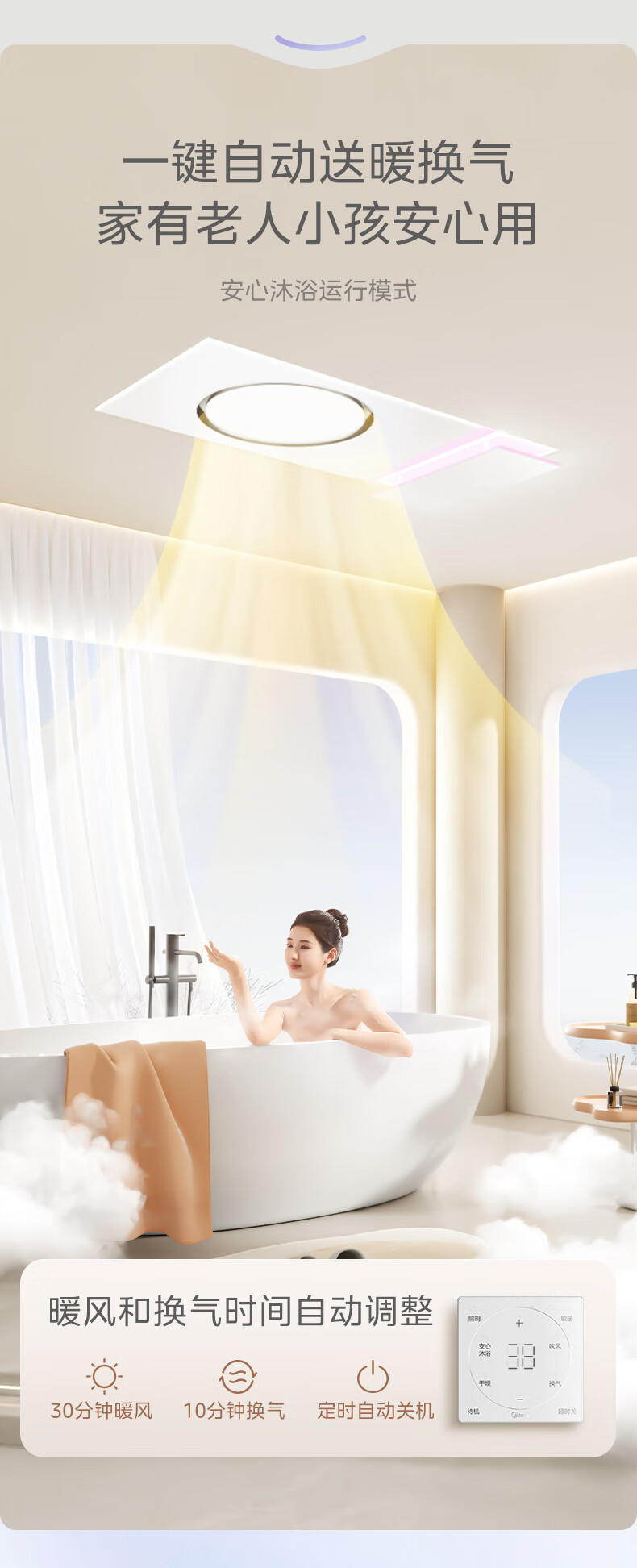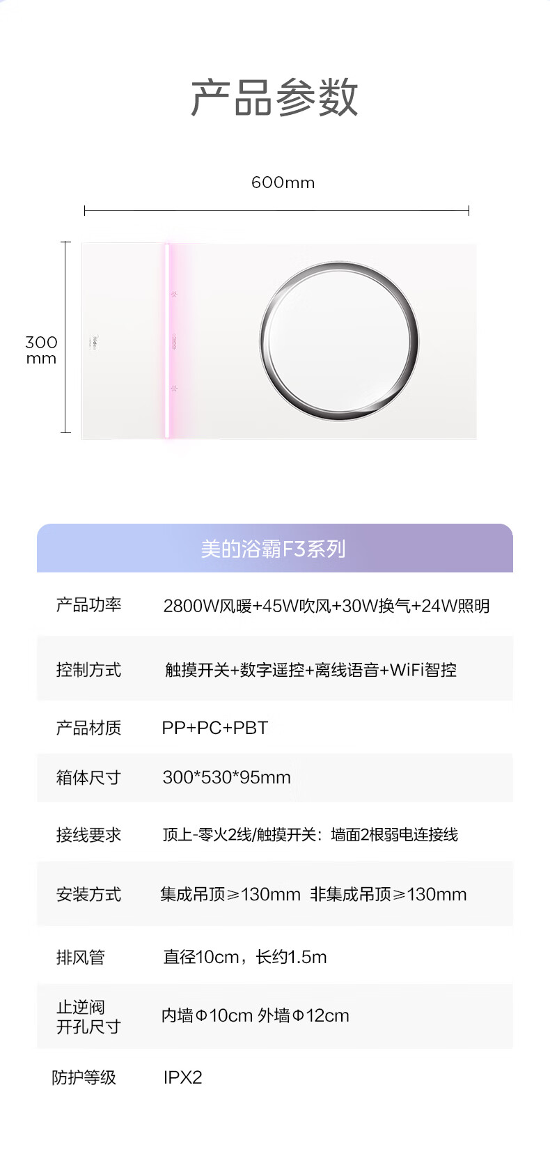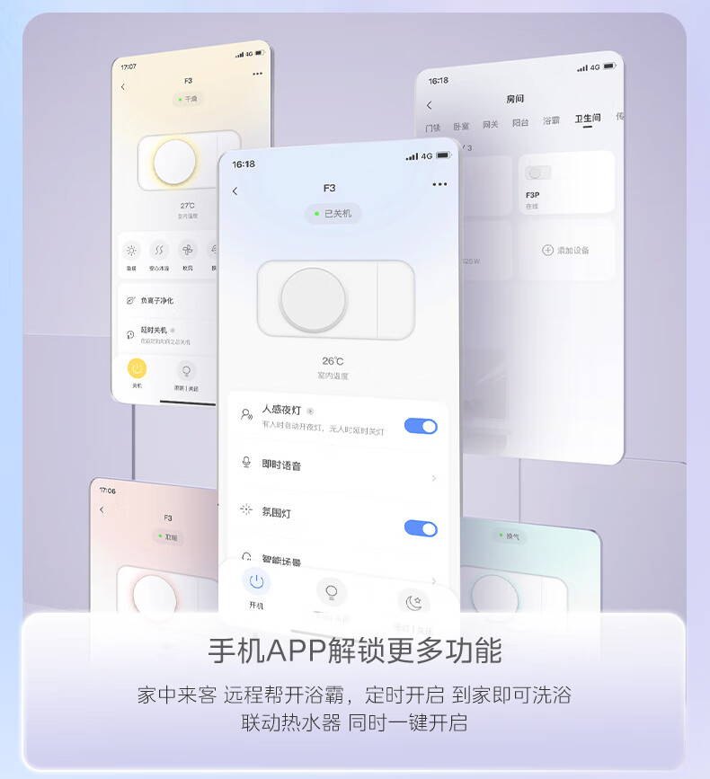 美的(Midea)风暖环形浴霸智能浴室排气取暖卫生间吊顶负离子除菌暖风F3浴霸