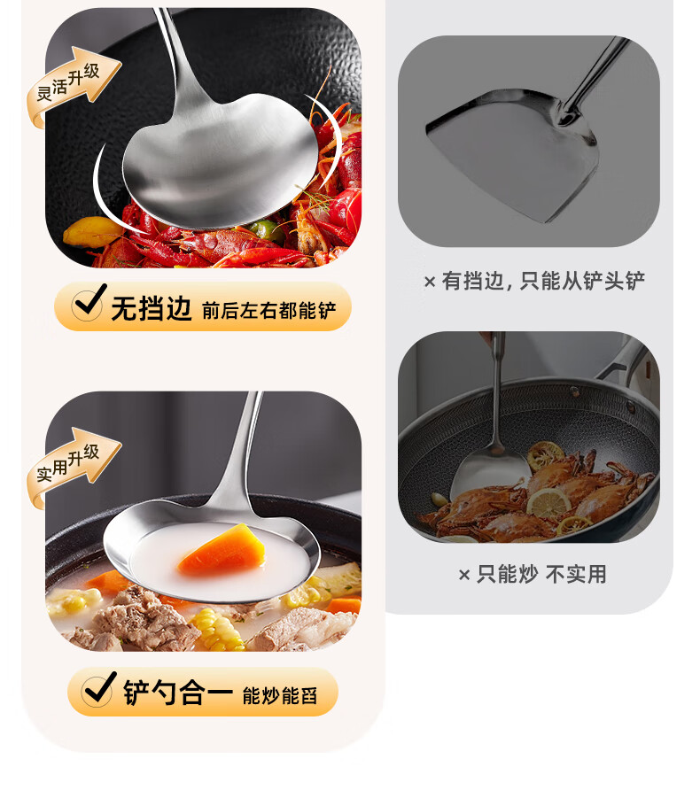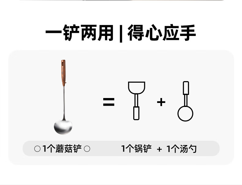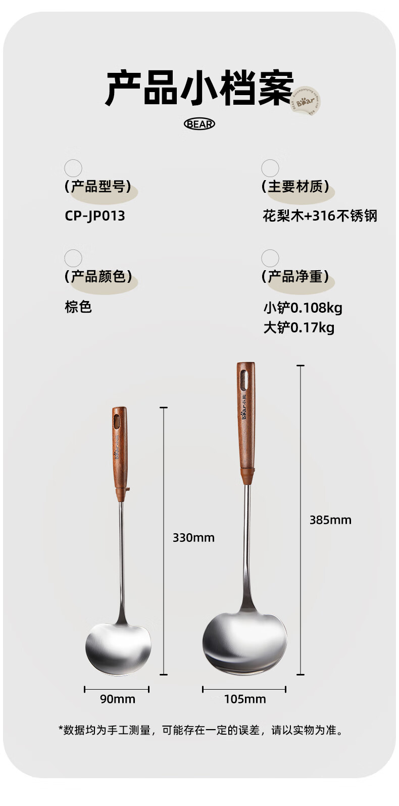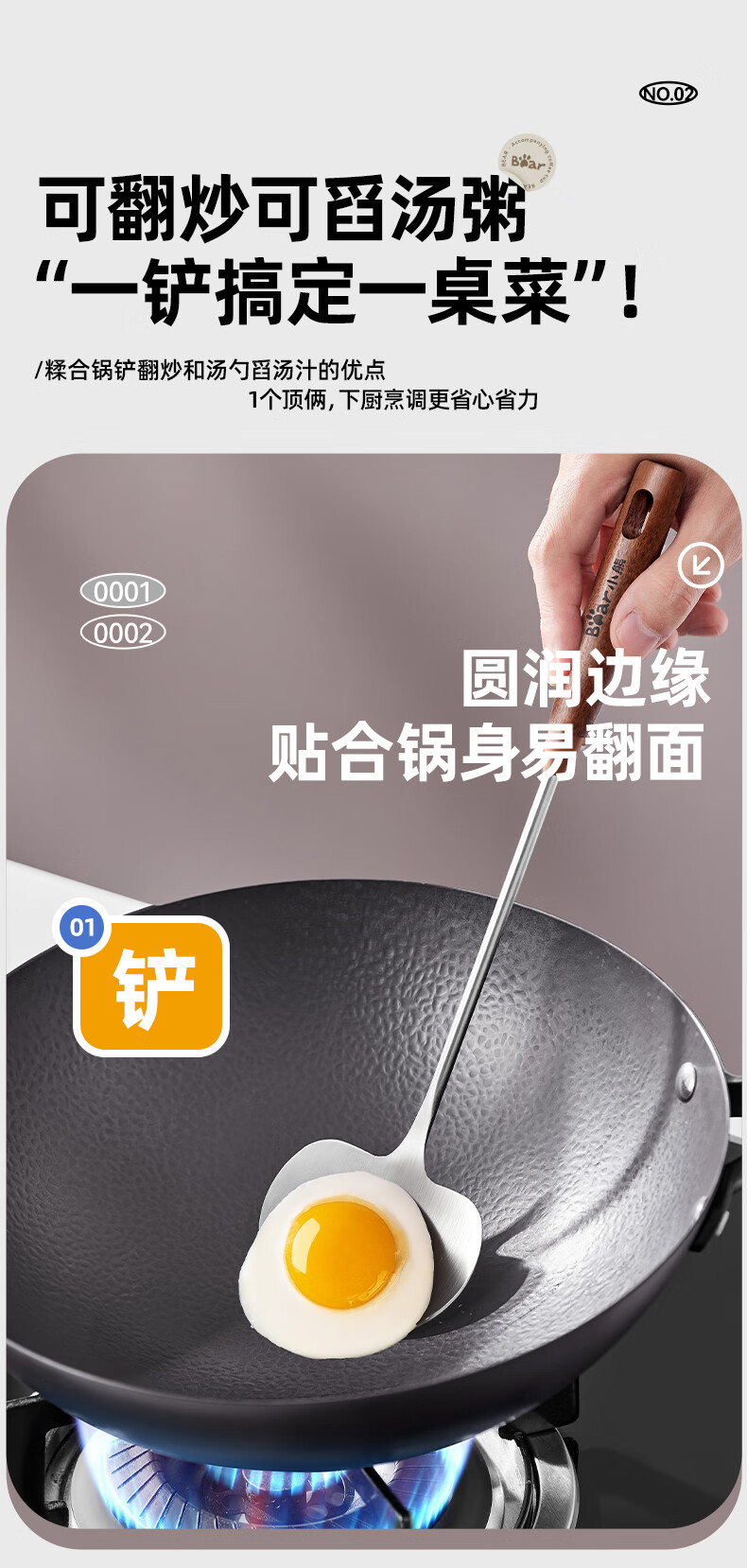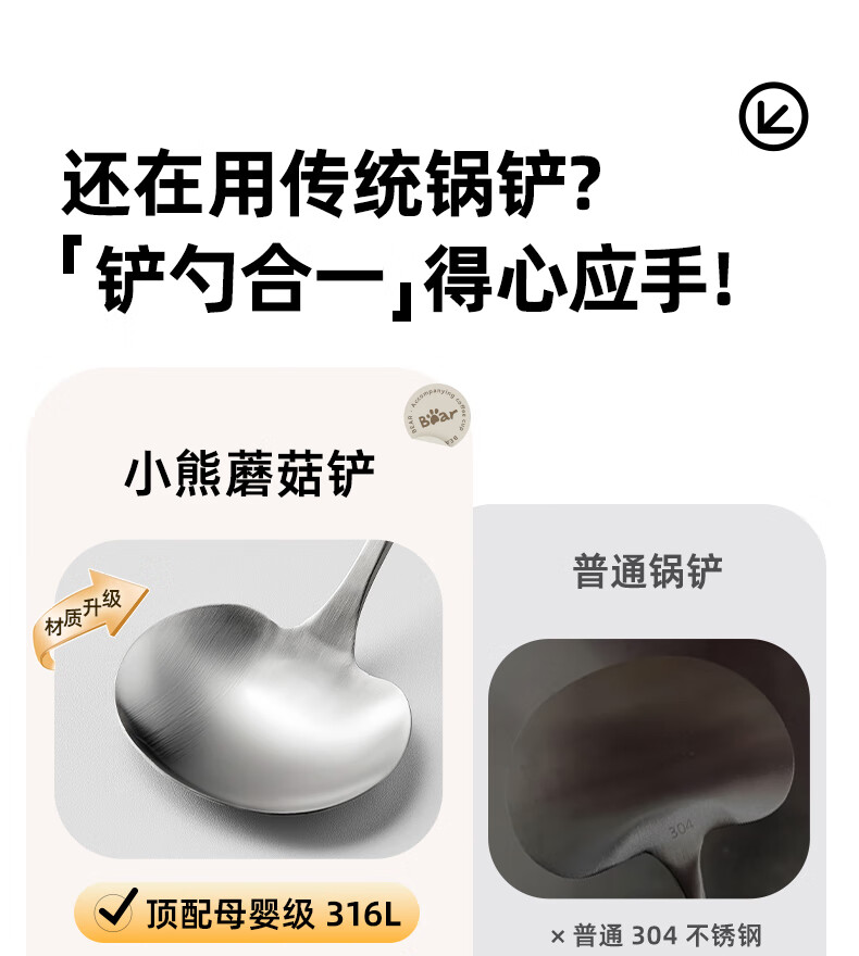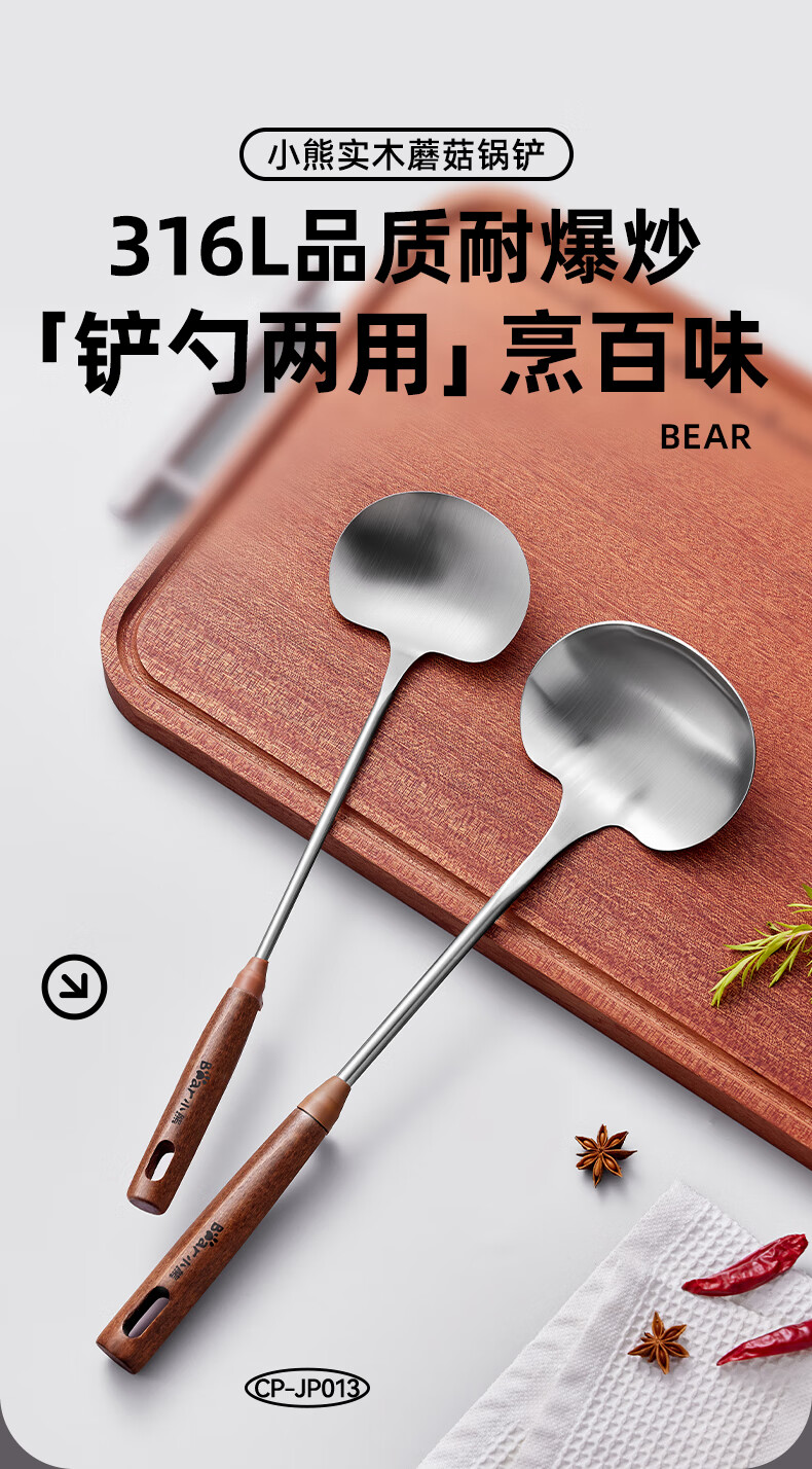 小熊(Bear)蘑菇锅铲不锈钢铲子炒菜勺炒勺家用食品级铁铲中式铁锅铲勺大号