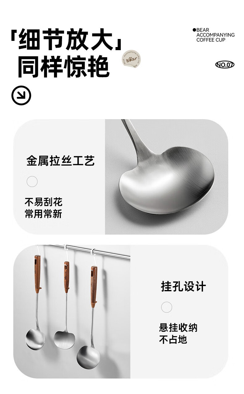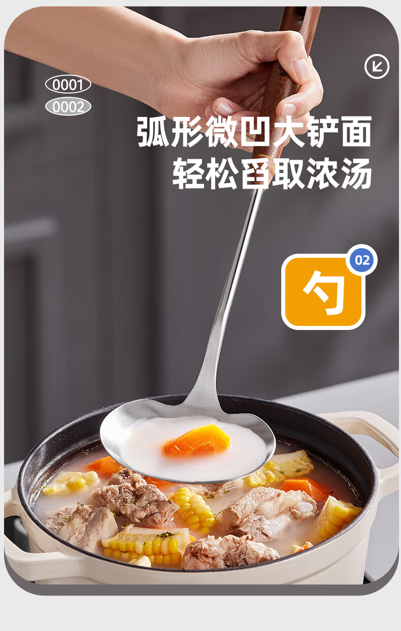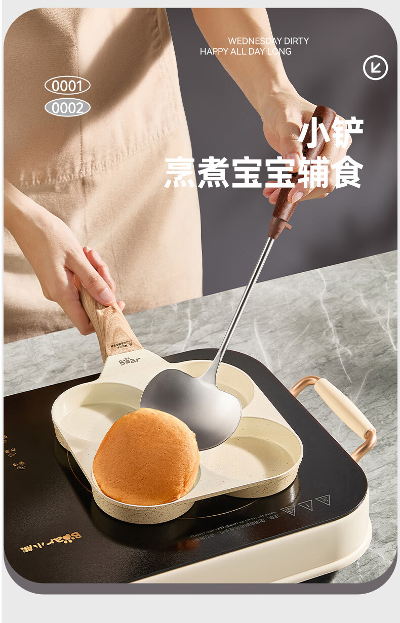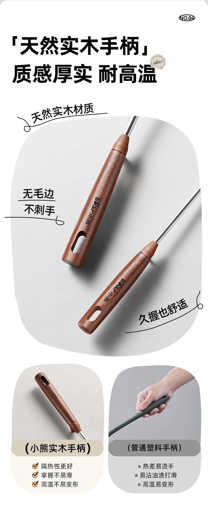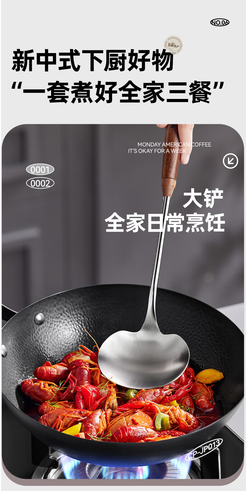 小熊(Bear)蘑菇锅铲不锈钢铲子炒菜勺炒勺家用食品级铁铲中式铁锅铲勺大号