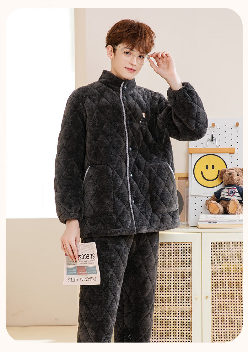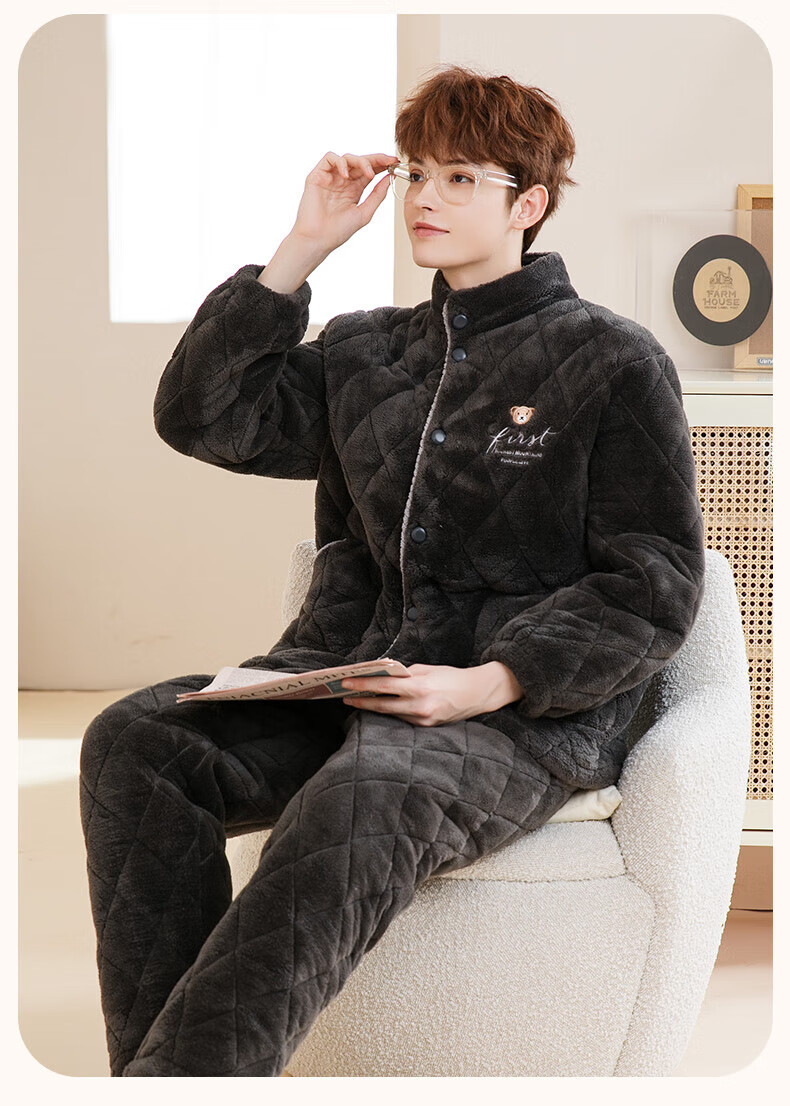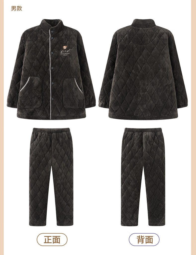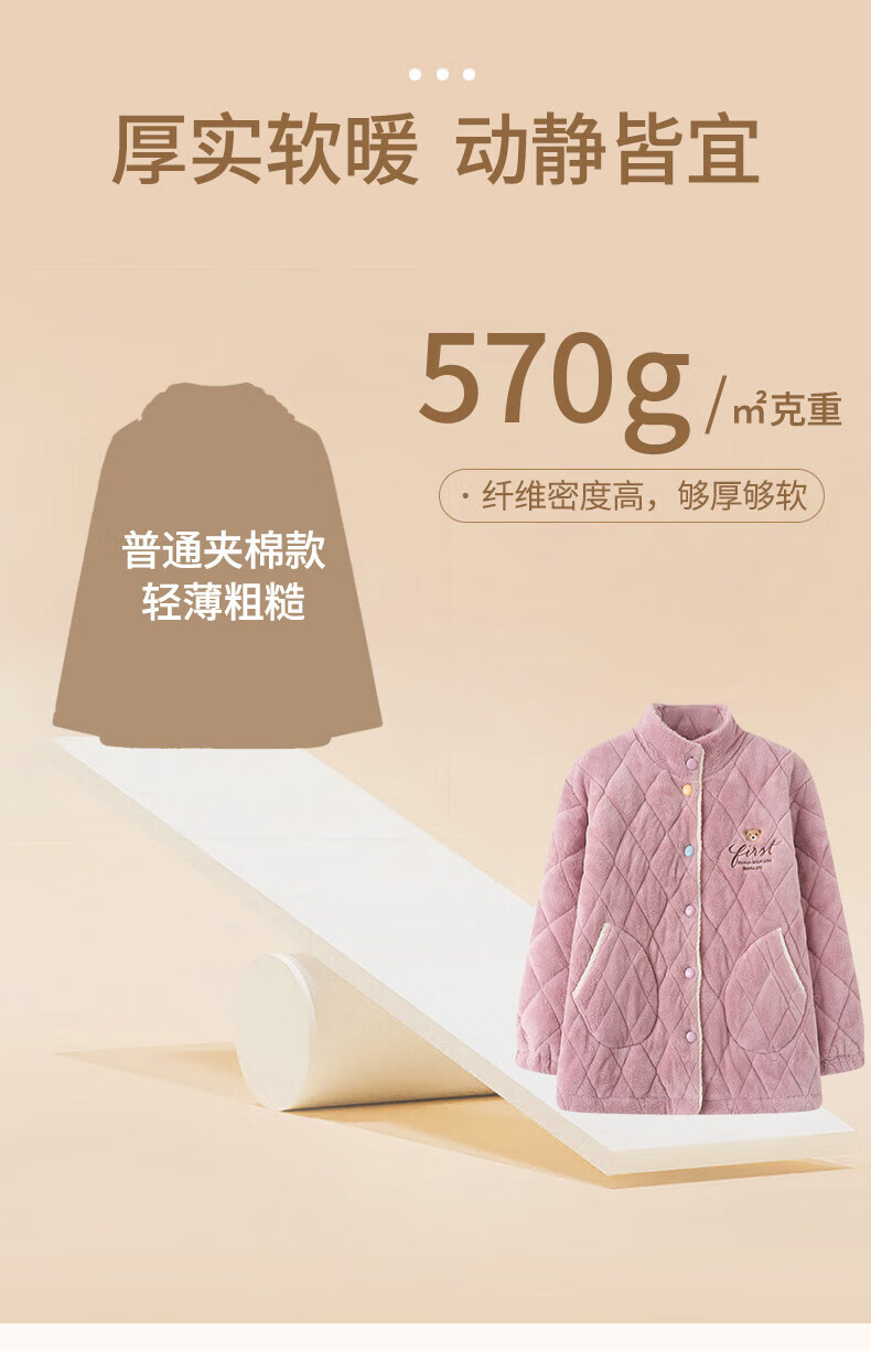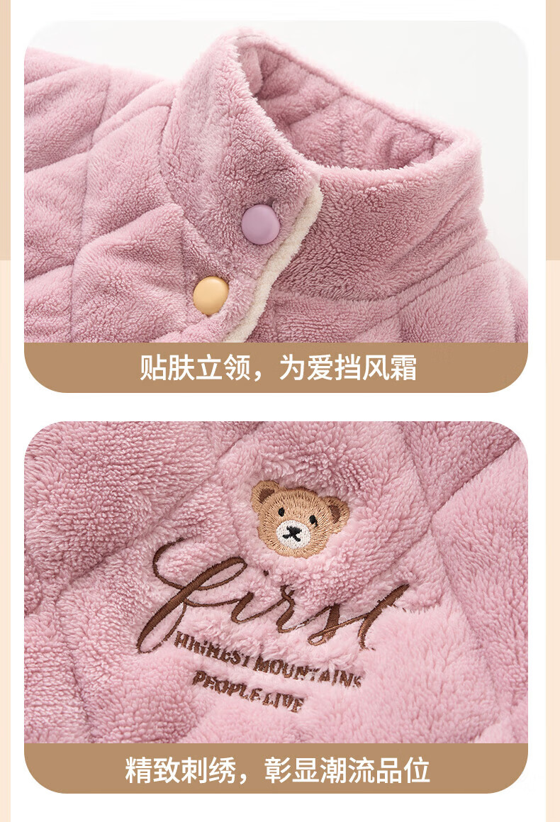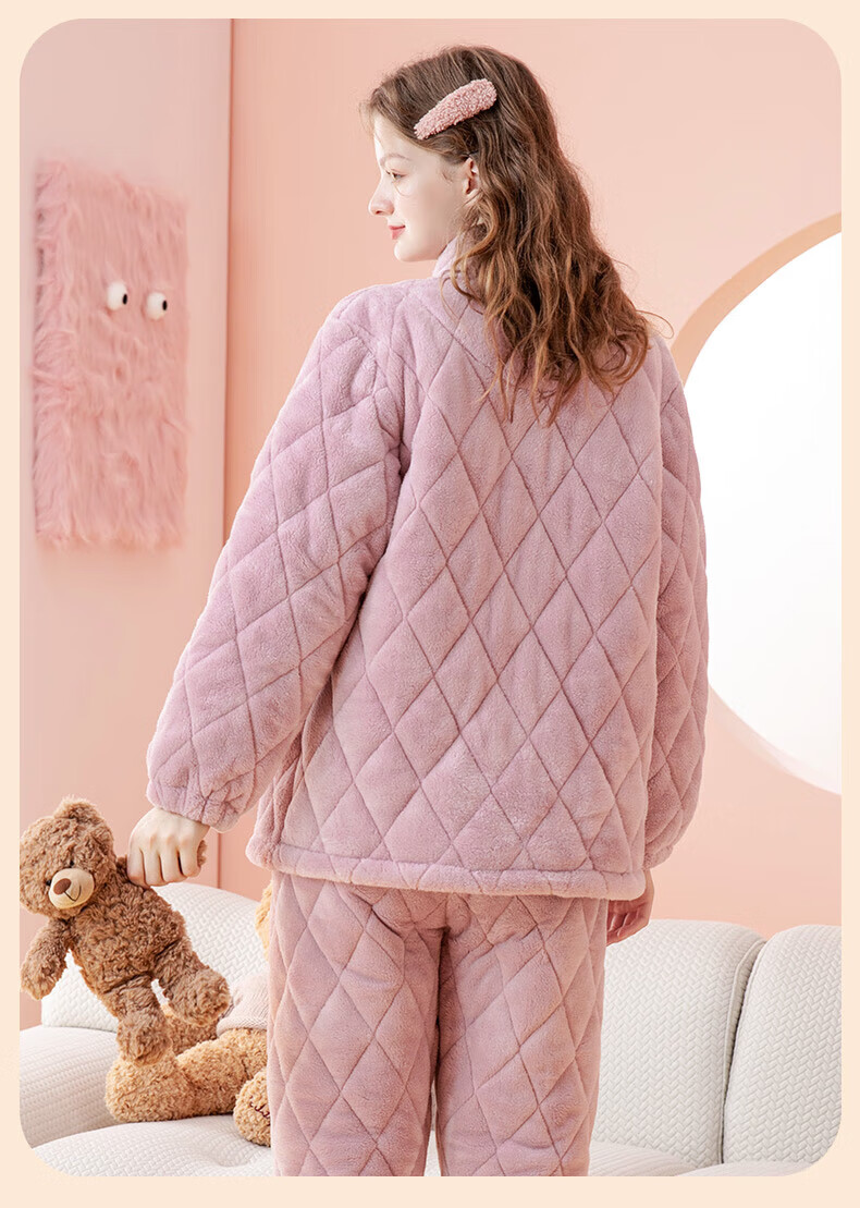 芬腾睡衣女秋冬温暖夹棉立领暖脖防静电绒软家居服睡衣套装 豆绿 M