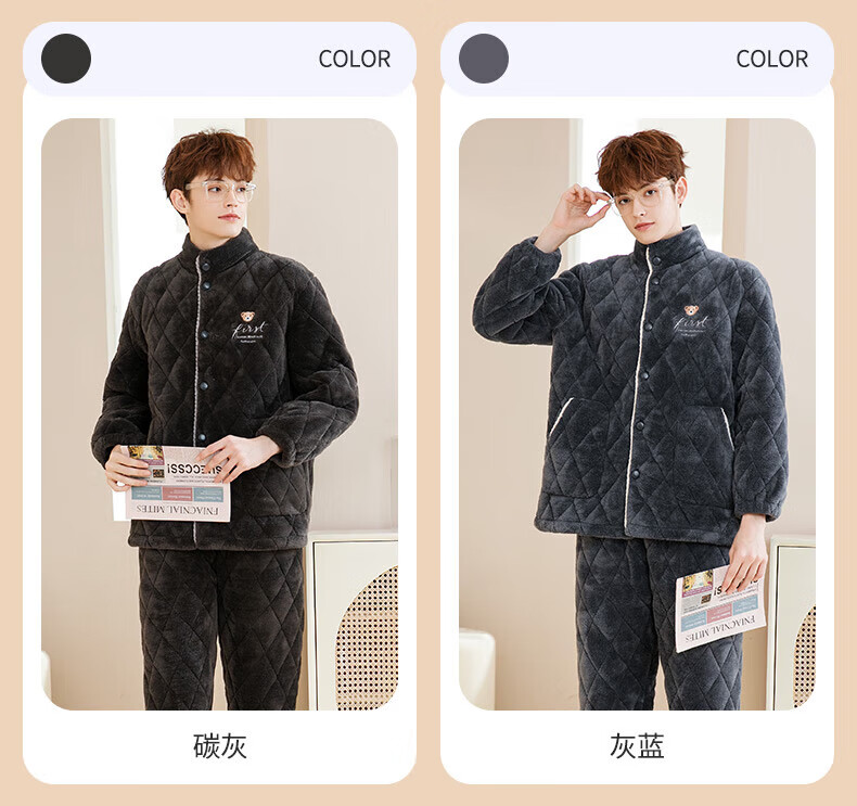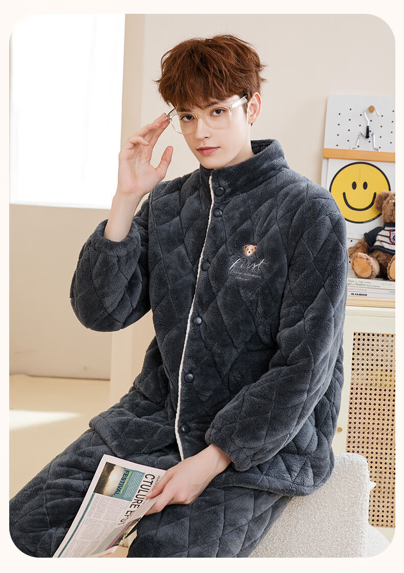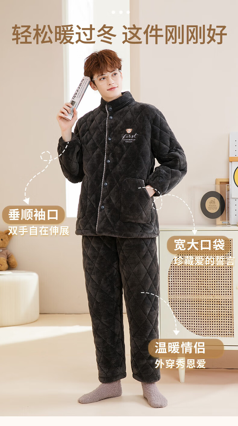 绮瑞女士家居服秋冬女复合绒加厚睡衣休闲时尚高级感珊瑚绒套装大码 灰蓝 2XL (适合140-160斤)