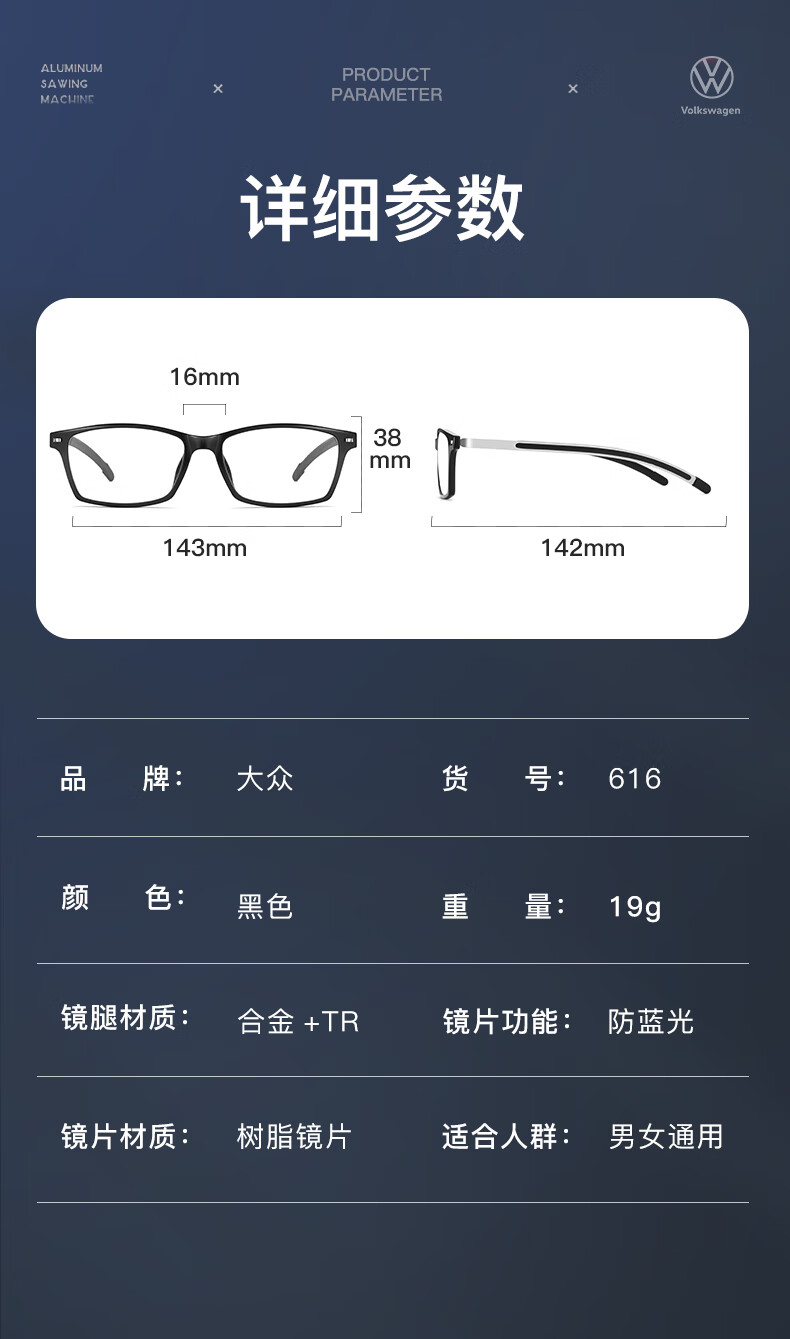 大众德国大众老花镜男士高清晰防蓝光正品进口眼镜W616-150