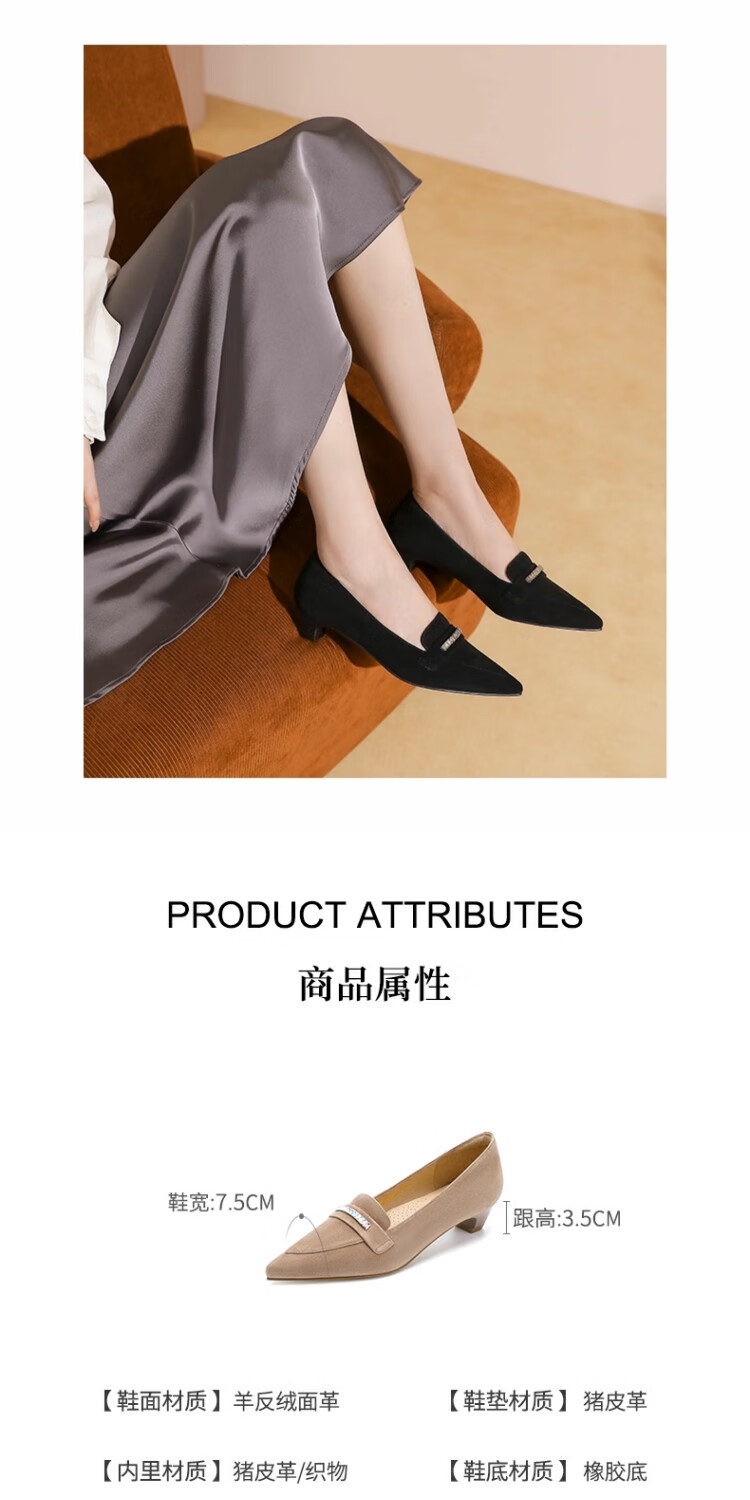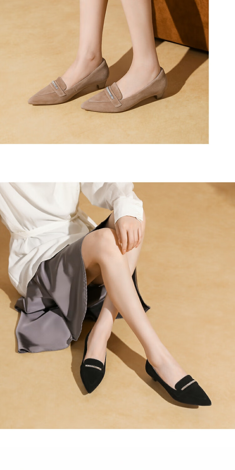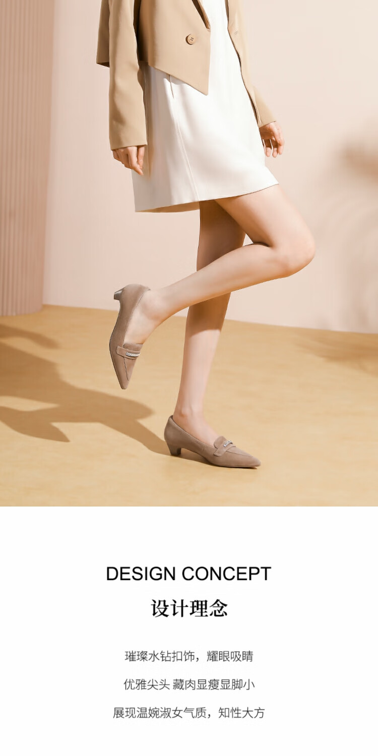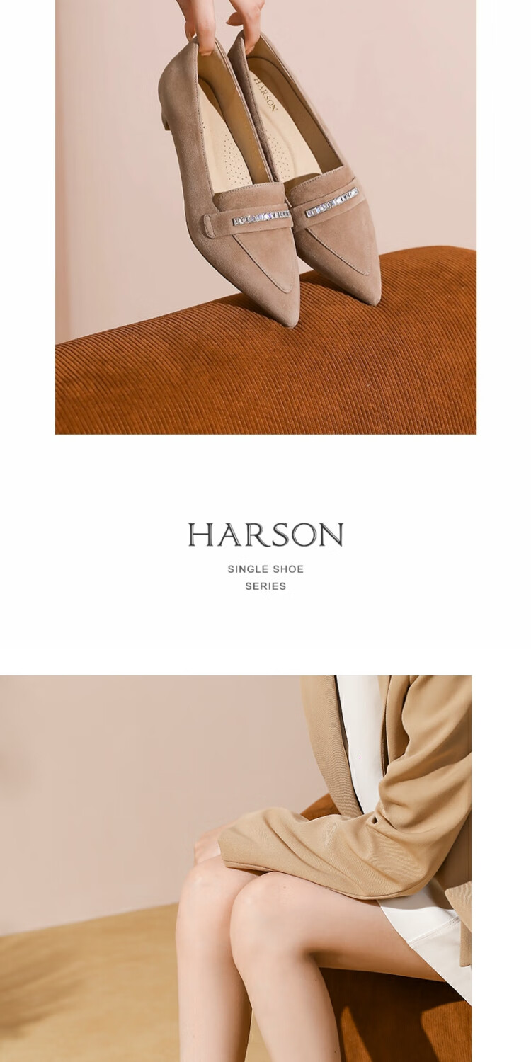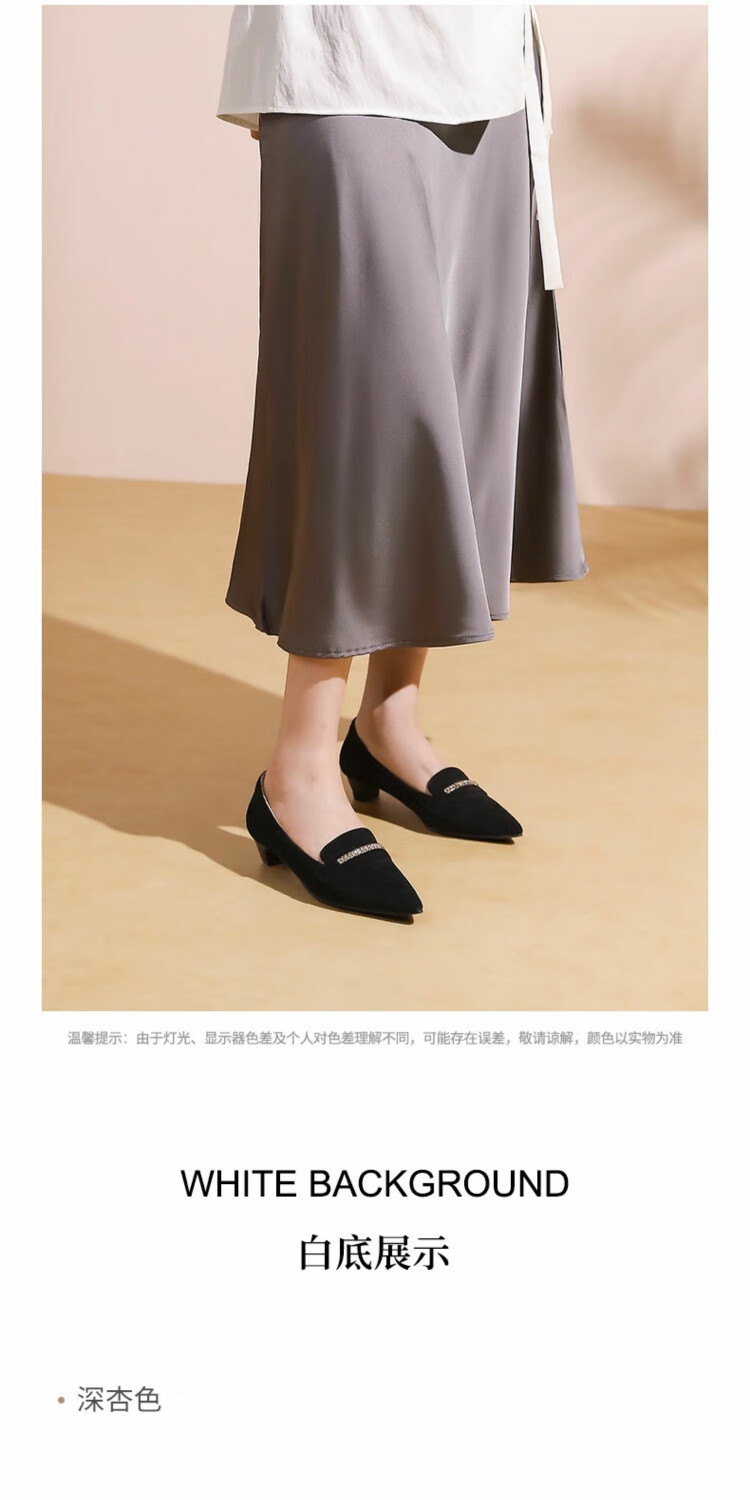 哈森尖头水钻中粗跟浅口单鞋通勤百搭女鞋2025秋季新款HL257905 黑色 羊反绒面革 34