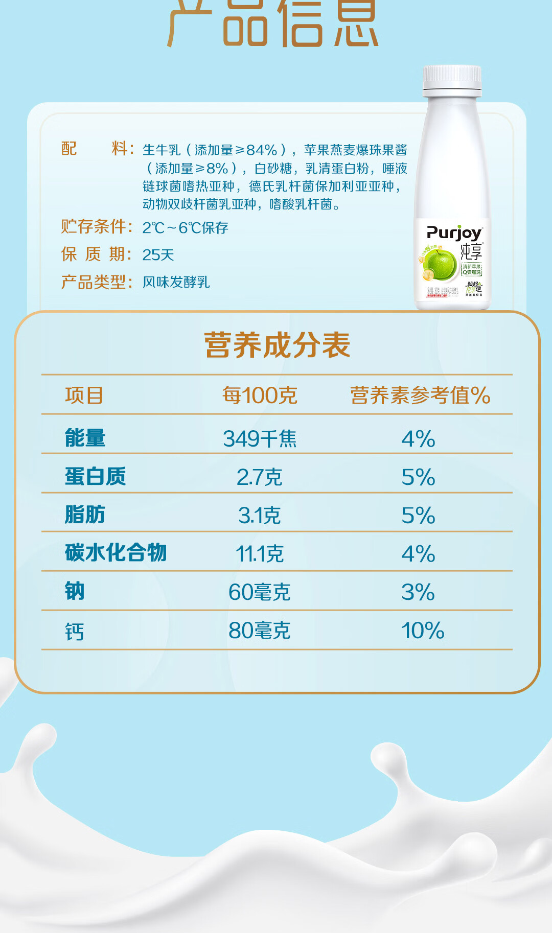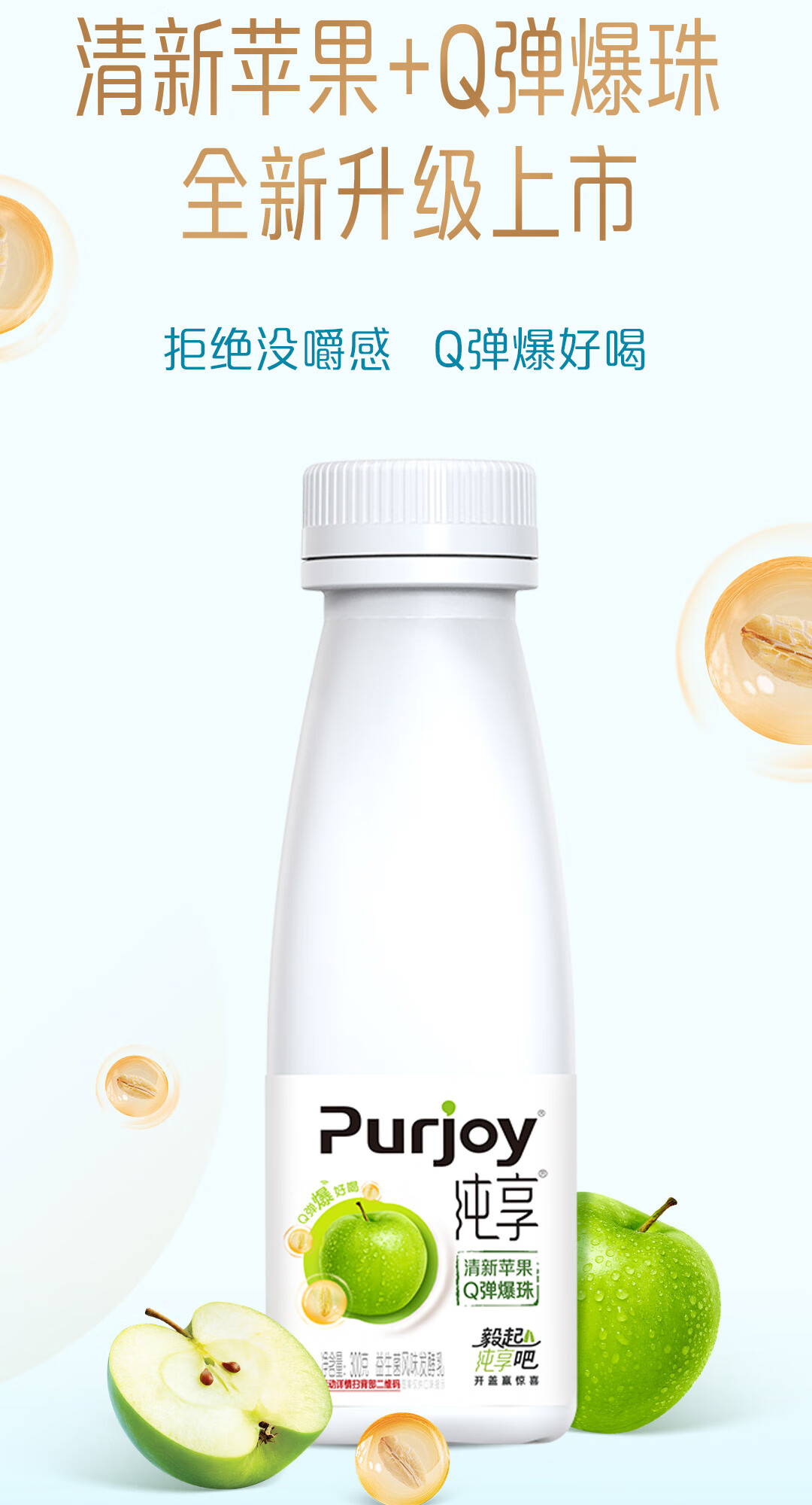 纯享酸奶(清甜苹果+Q弹爆珠)4入量贩 300g/瓶 4瓶装 风味发酵乳