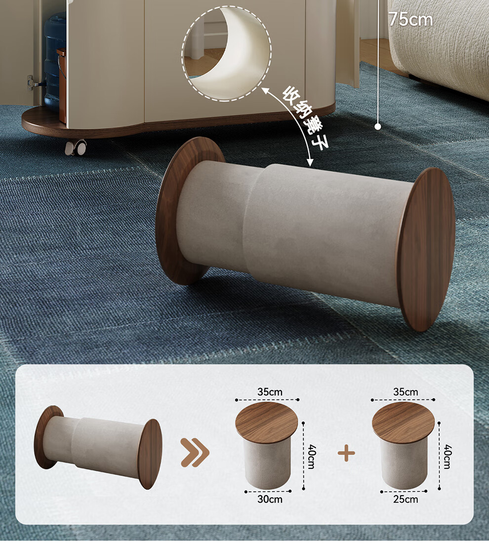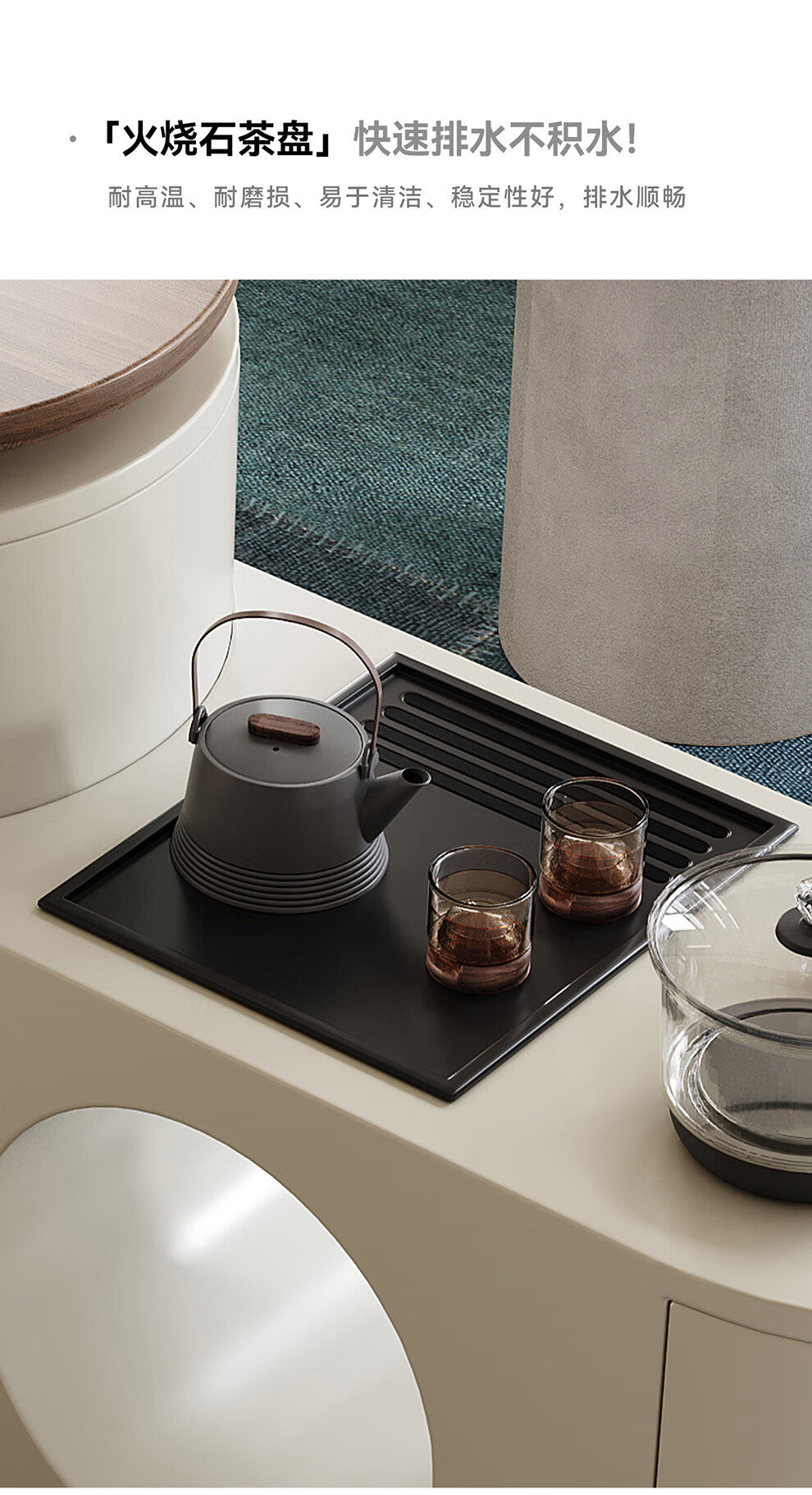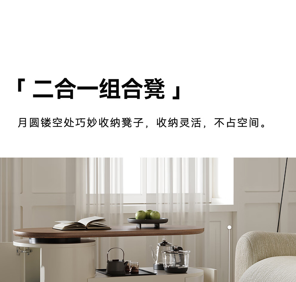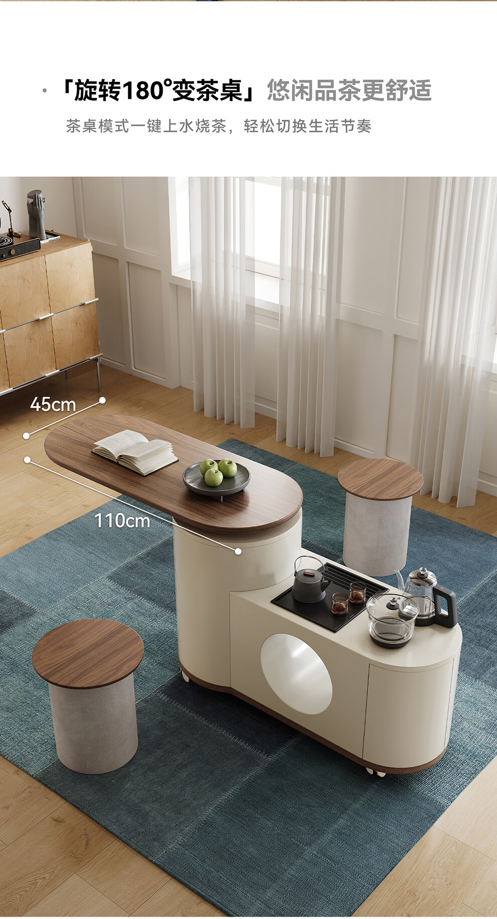 凡创佳品移动茶几茶台客厅小户型沙发边几中古奶油风实木旋转茶桌小推车 1.1m移动茶台-火山岩茶炉【带可收纳凳*2】