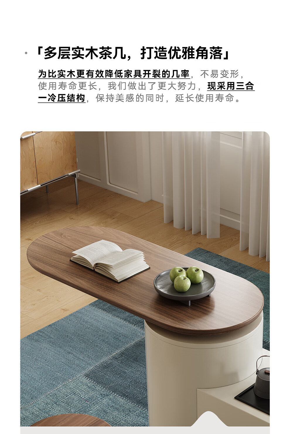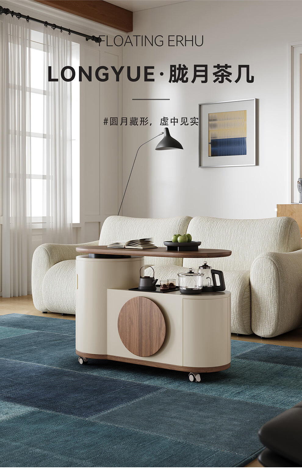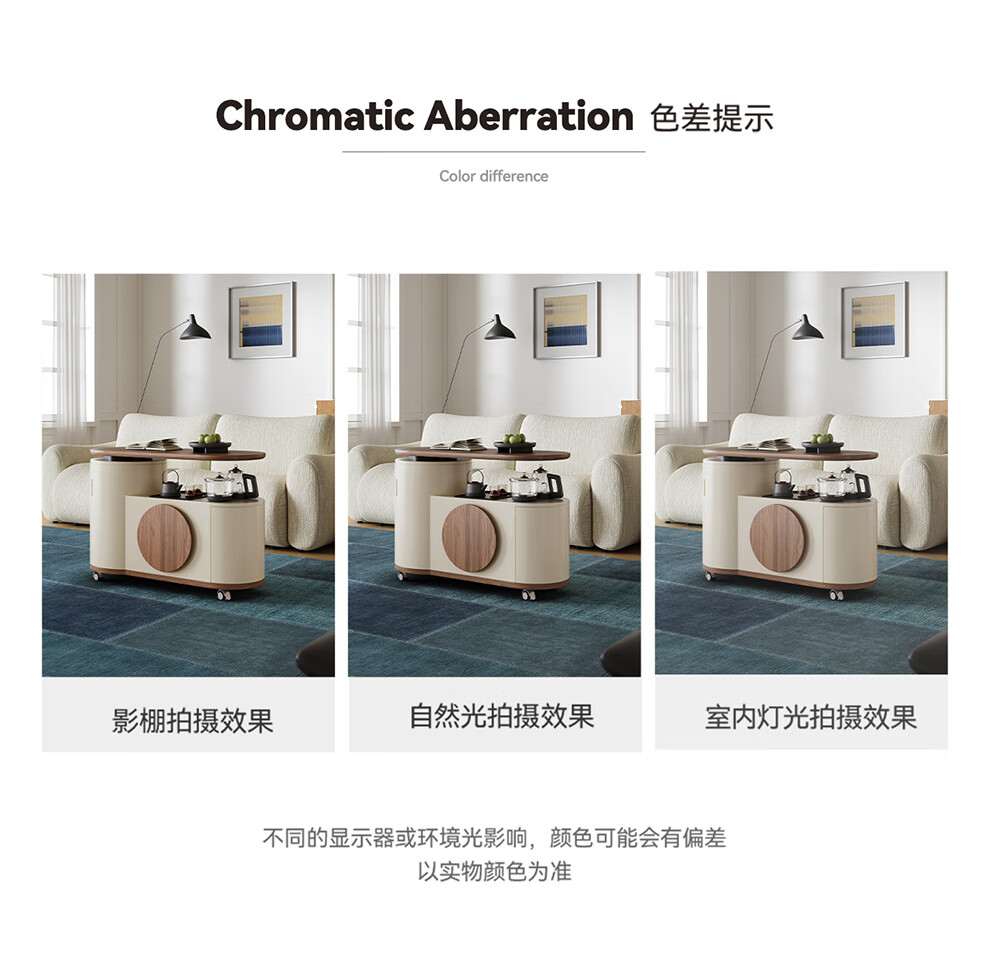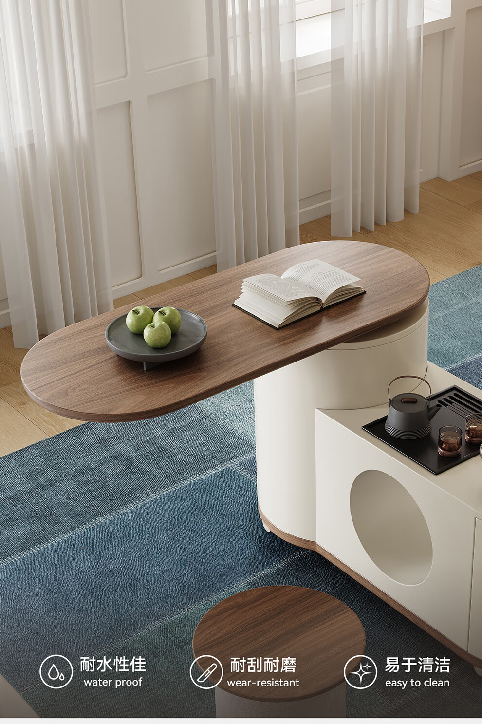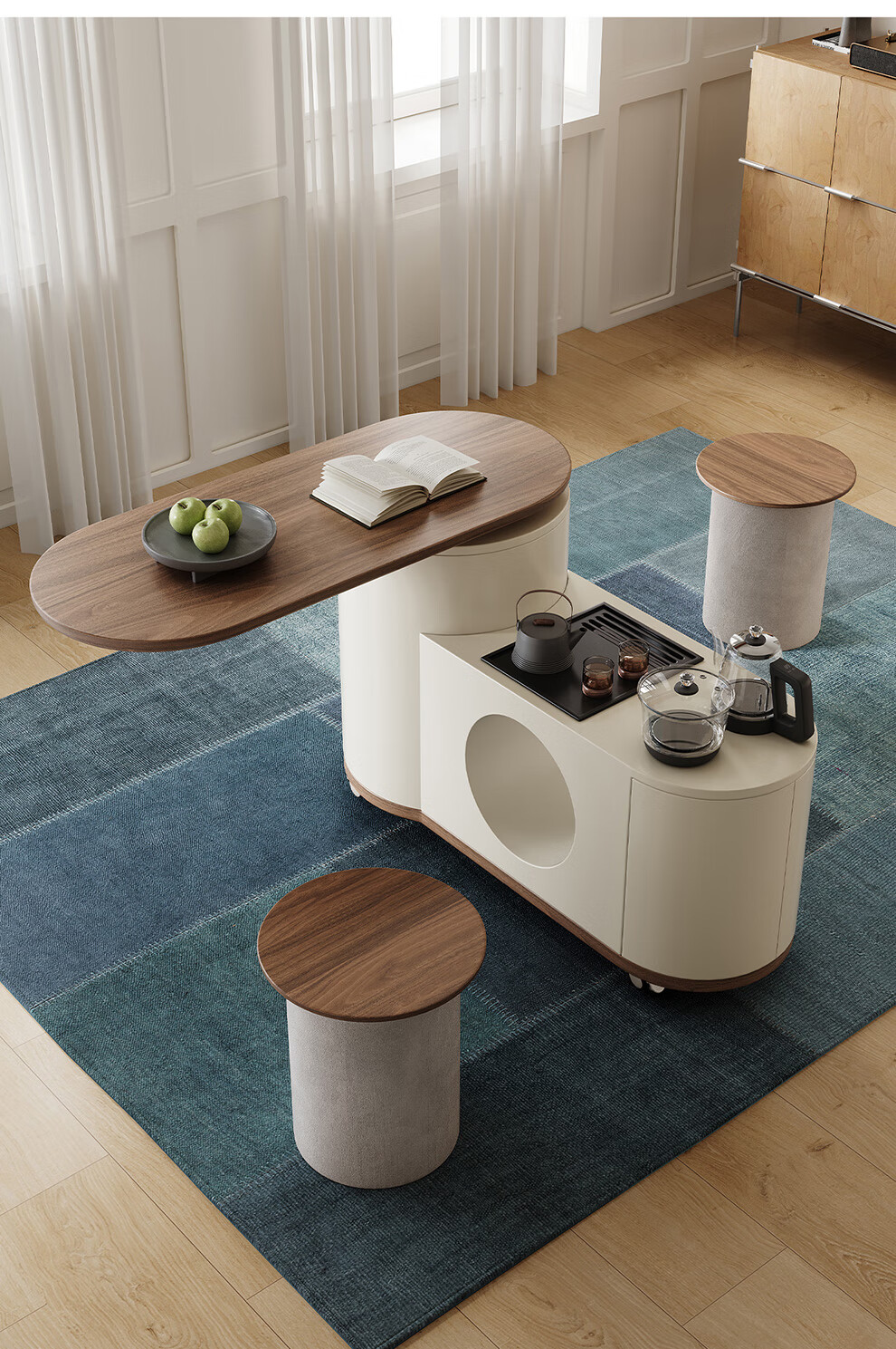 凡创佳品移动茶几茶台客厅小户型沙发边几中古奶油风实木旋转茶桌小推车 1.1m移动茶台-火山岩茶炉【带可收纳凳*2】