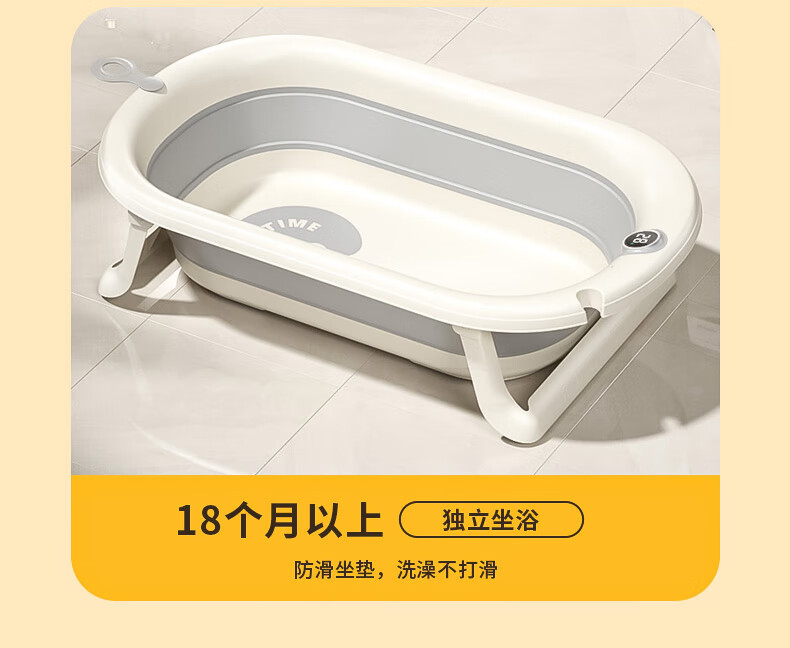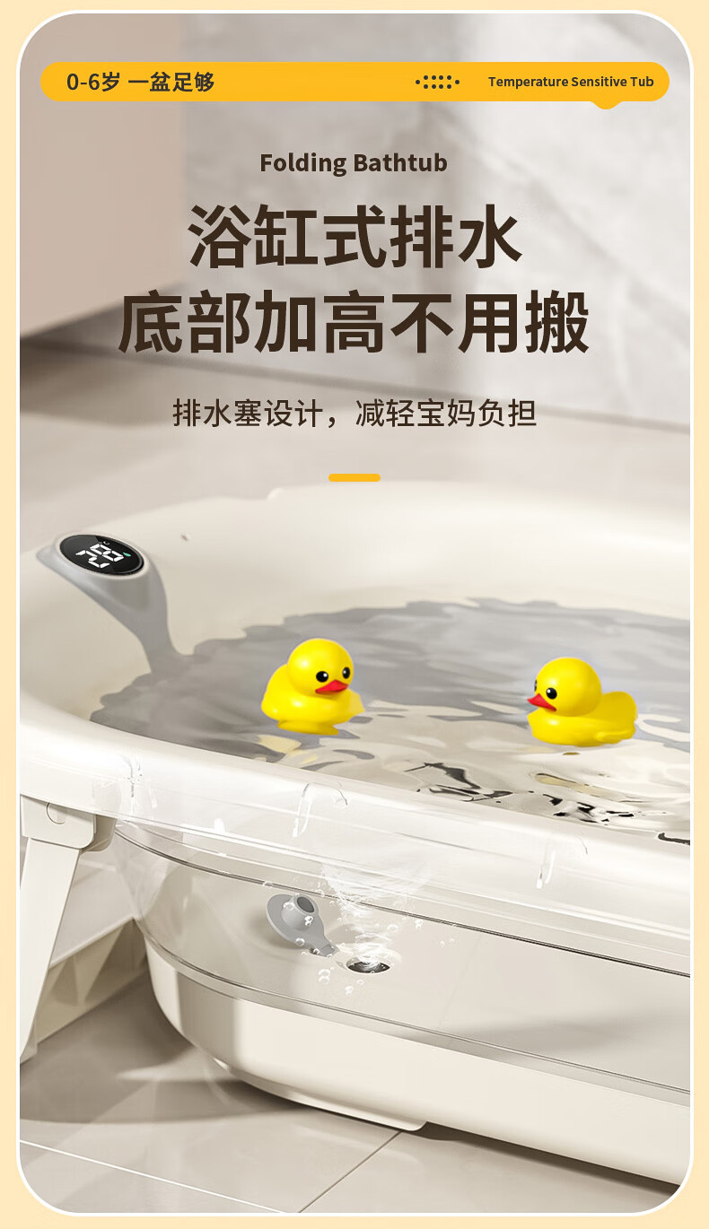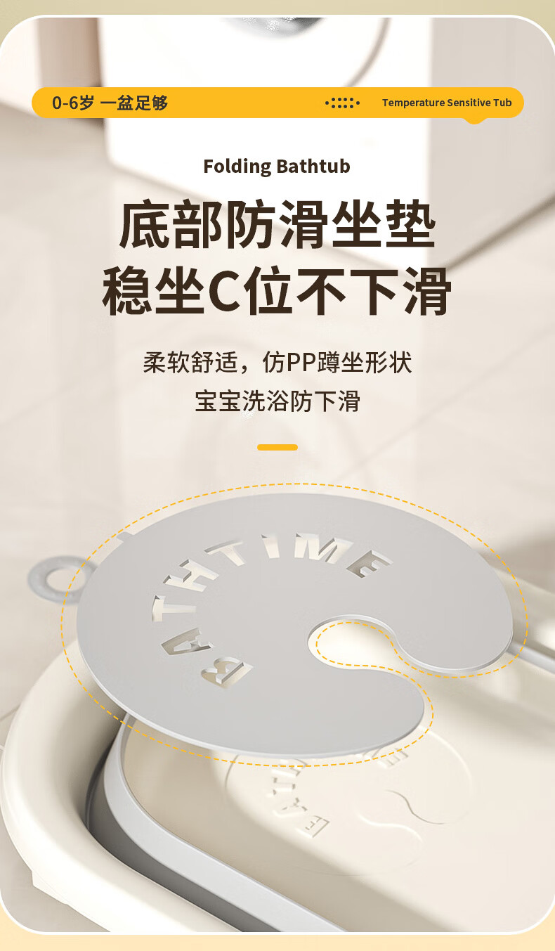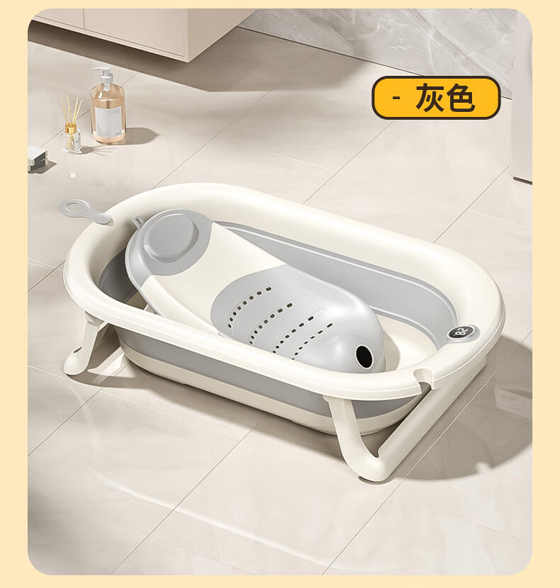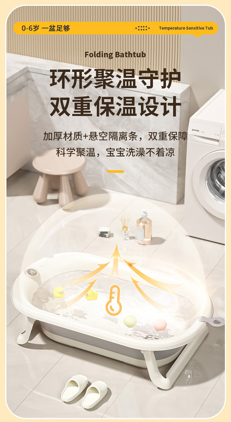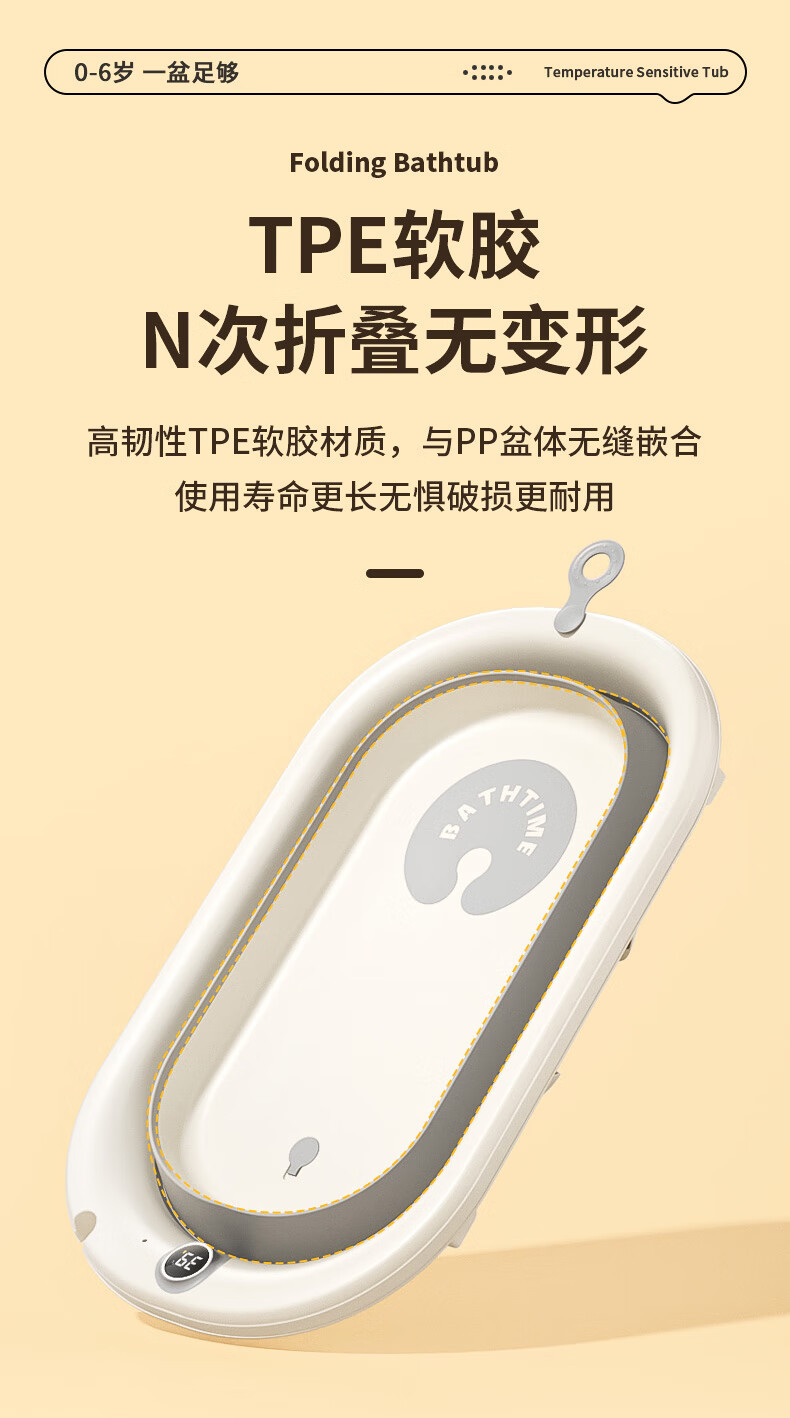 婴儿折叠浴盆新生婴幼儿宝宝大号坐躺托浴架可折叠洗澡盆儿童用品 【触屏感温】棕+3个盆+浴架+垫