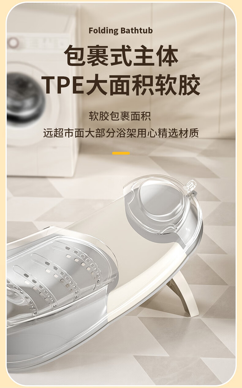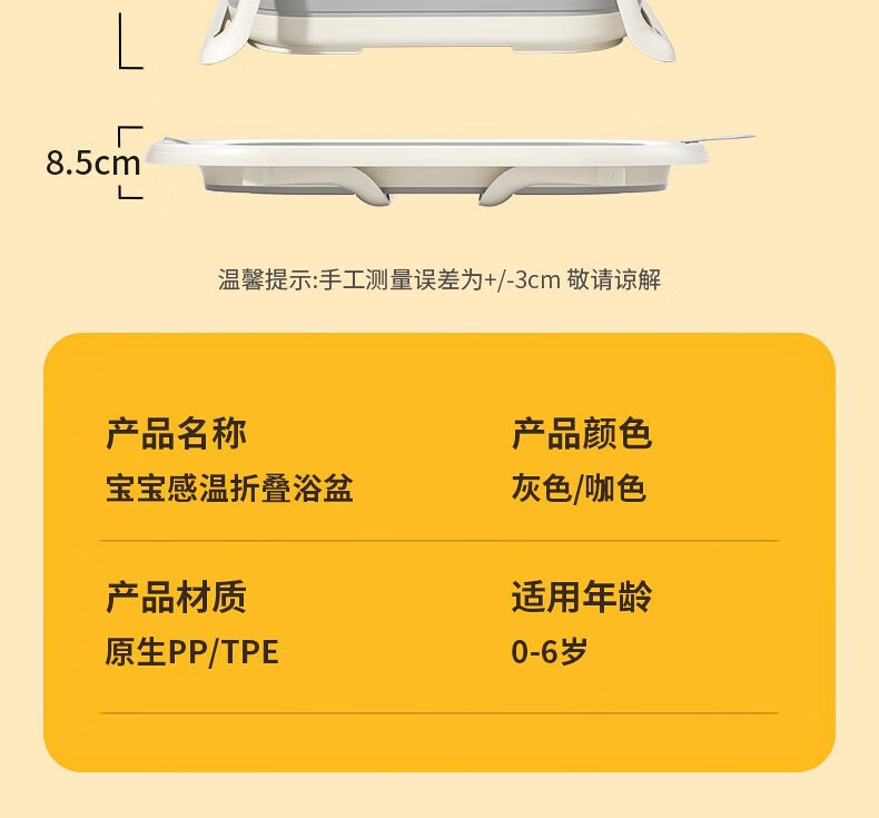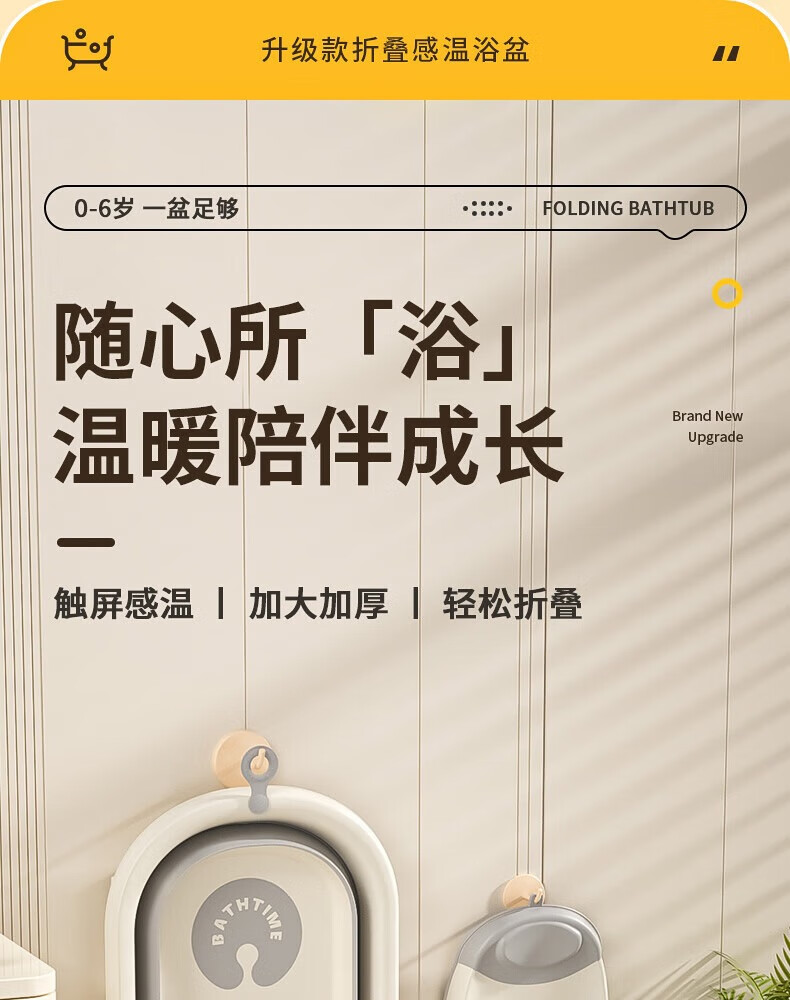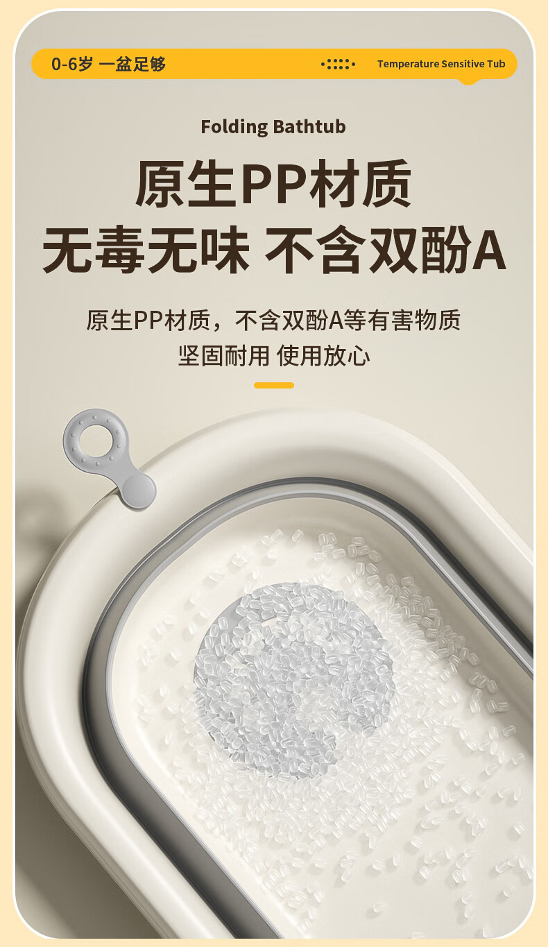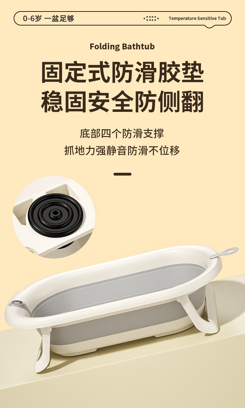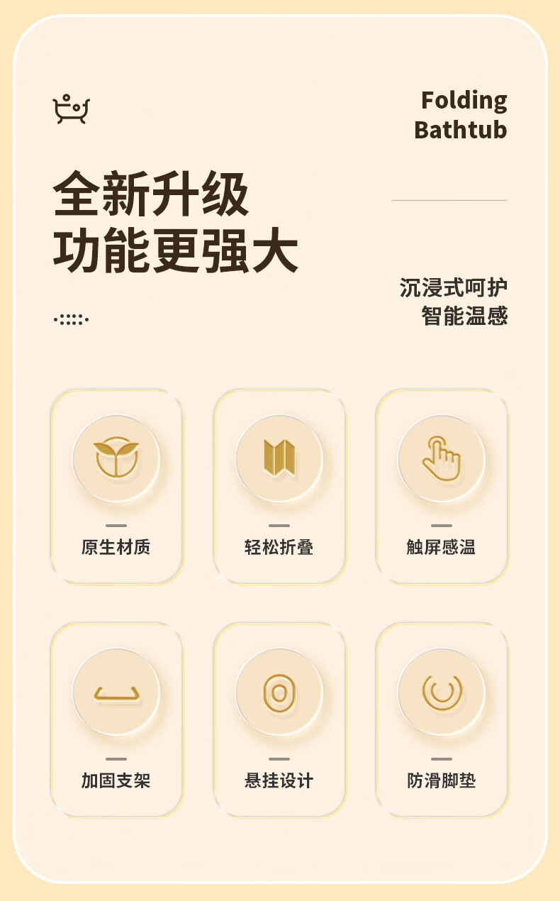 婴儿折叠浴盆新生婴幼儿宝宝大号坐躺托浴架可折叠洗澡盆儿童用品 【触屏感温】棕+3个盆+浴架+垫