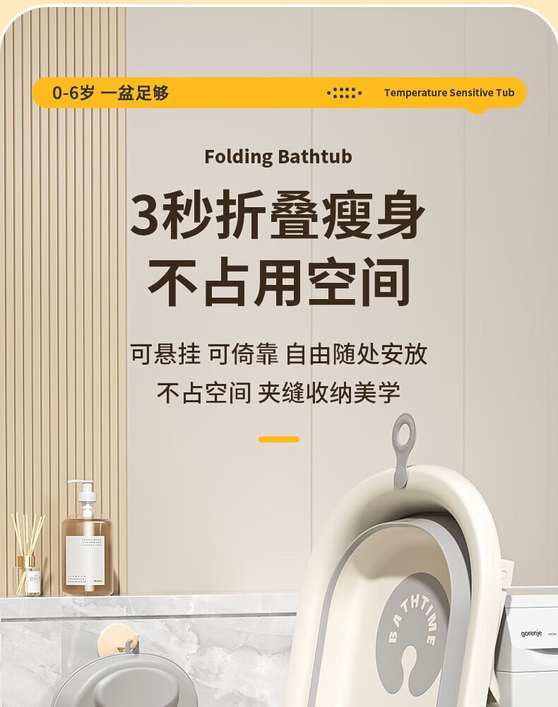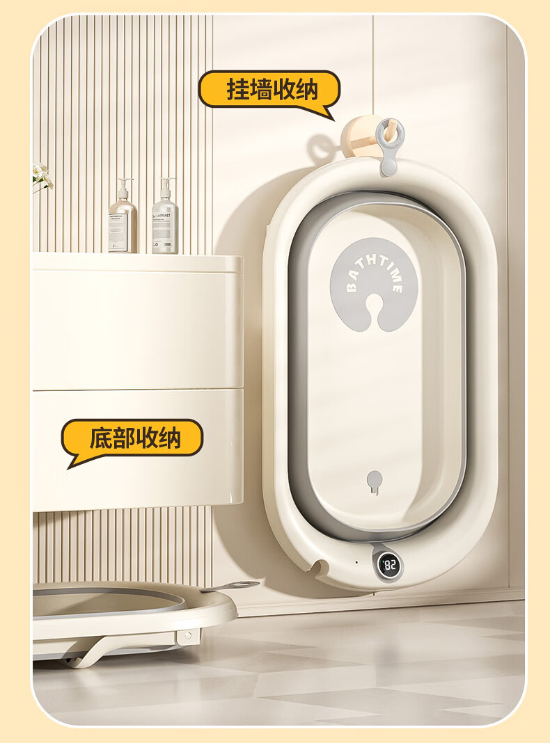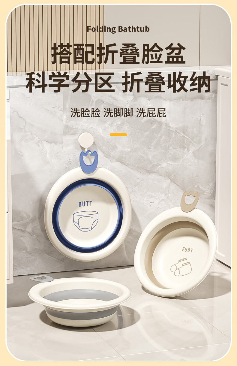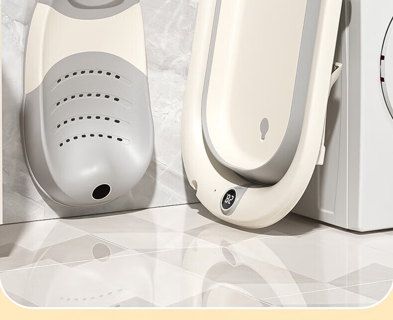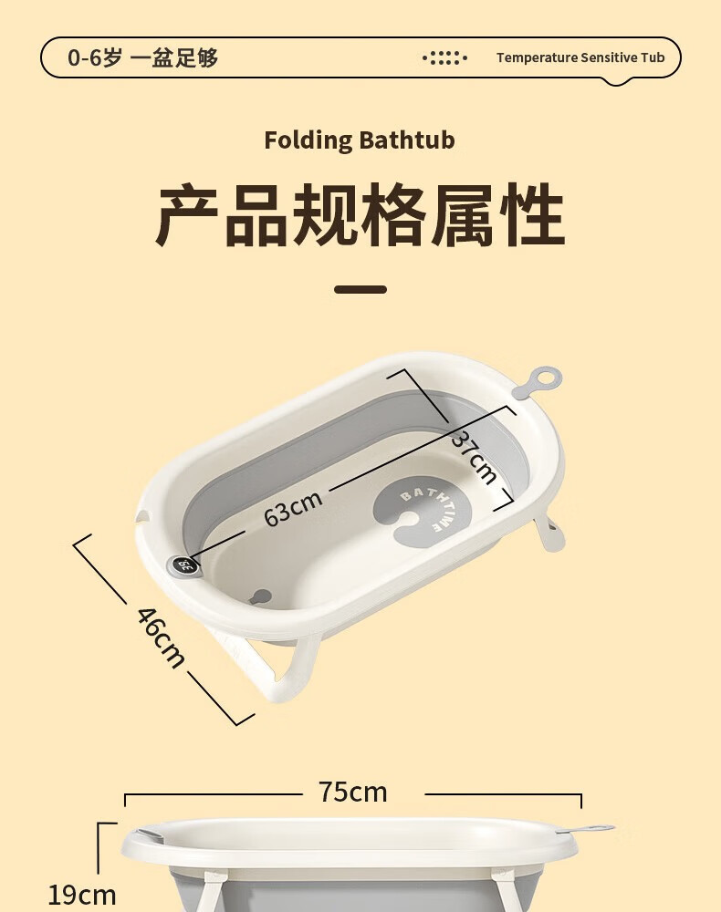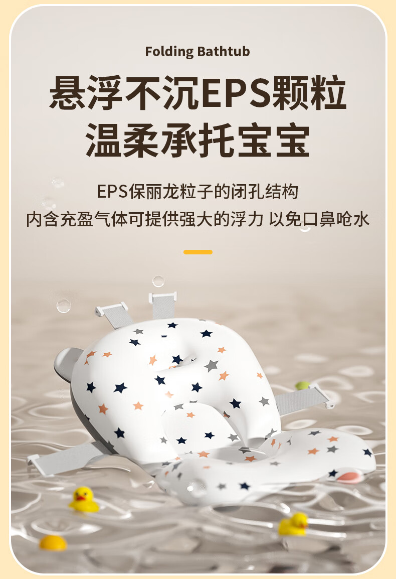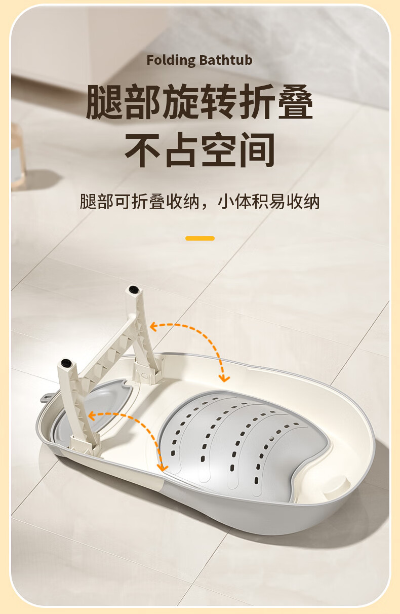 婴儿折叠浴盆新生婴幼儿宝宝大号坐躺托浴架可折叠洗澡盆儿童用品 【触屏感温】棕+3个盆+浴架+垫