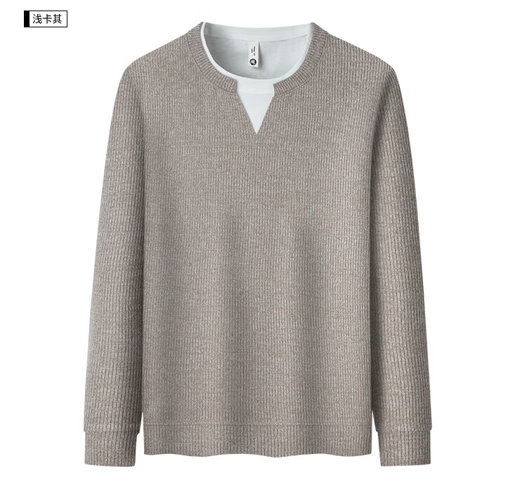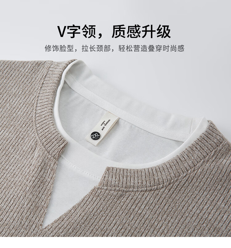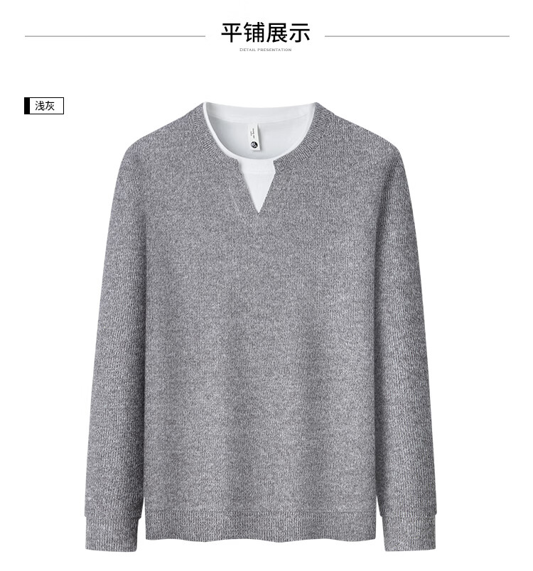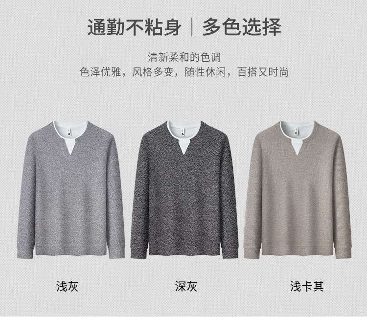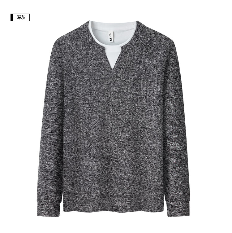 杉杉(FIRS)【假两件】杉杉针织卫衣男春秋高级肌理软糯百搭宽松圆领男士T恤 深灰 XL 170/88A XL