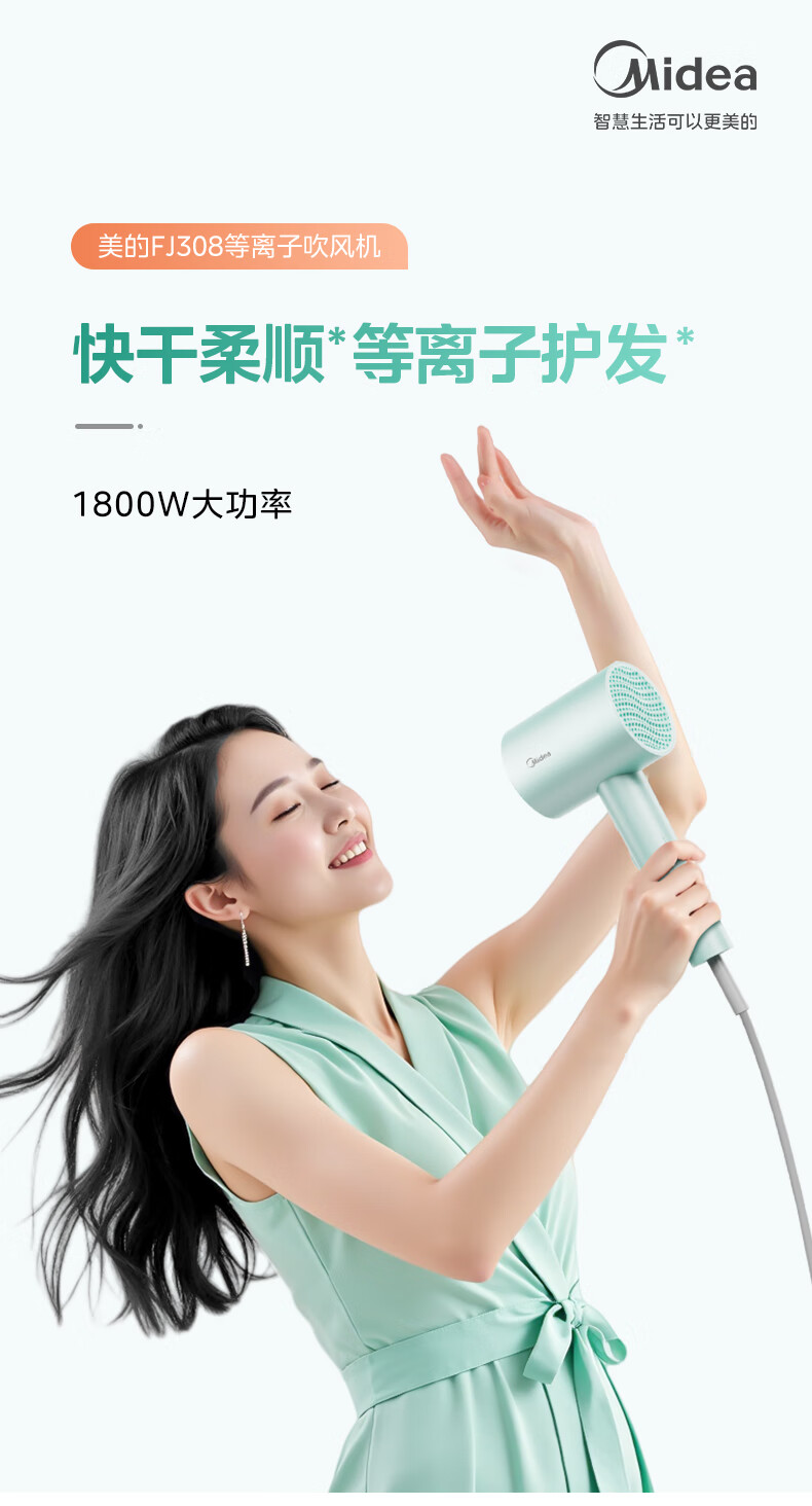 美的(Midea)5亿等离子护发电吹风 家电国家补贴吹风筒 1800W大功率 负离子吹风机 FJ308 节日/生日礼物推荐