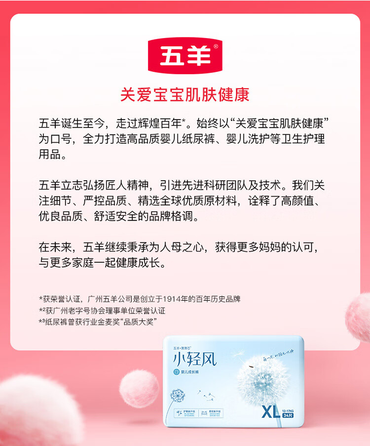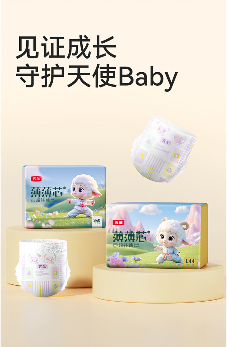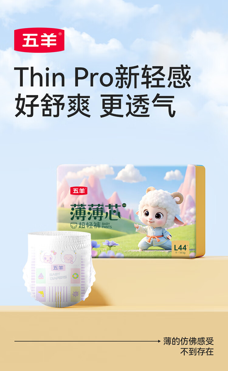 五羊(FIVERAMS)拉拉裤薄薄芯成长裤L88片(9-14kg)婴儿尿不湿超薄透气瞬吸干爽