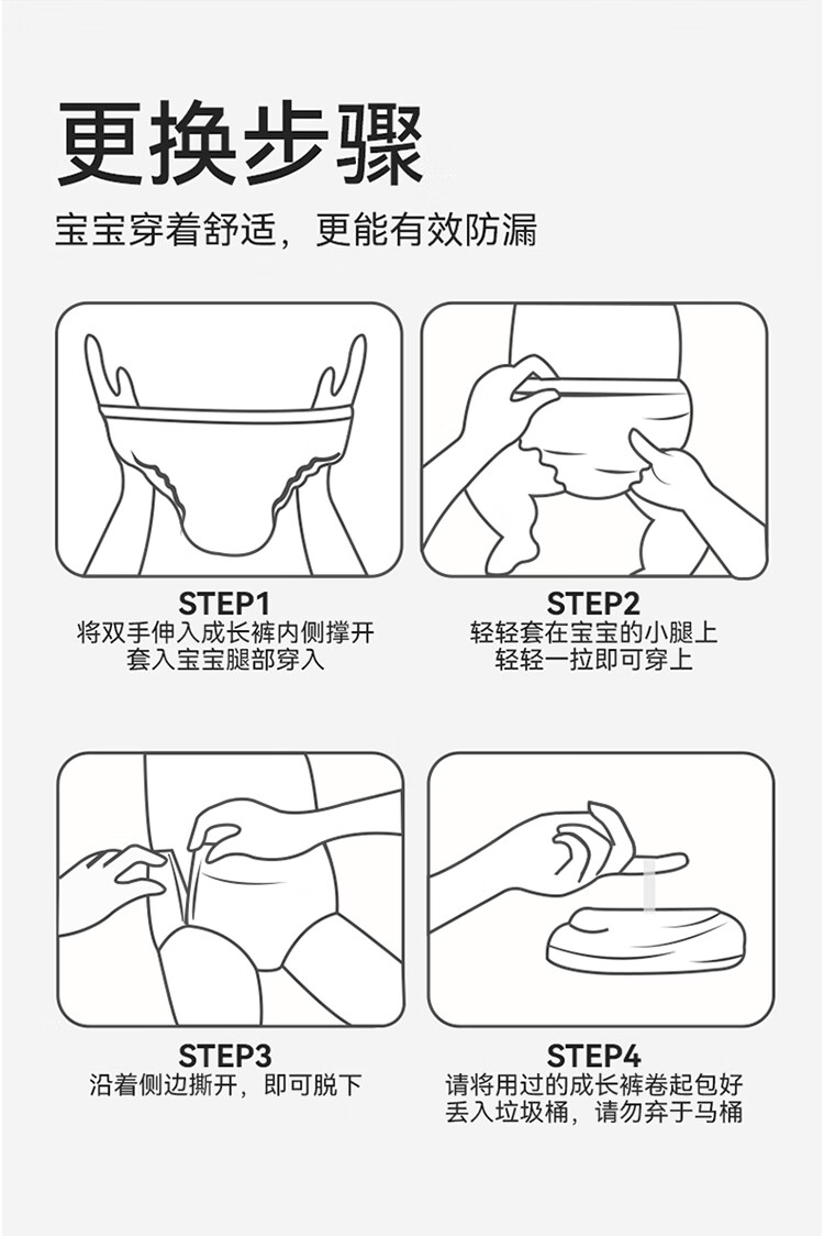 祺安1芯艺术大包婴儿拉拉裤泡泡腰围超柔亲肤男宝女宝尿不湿成长裤 拉拉裤XXXL码64片