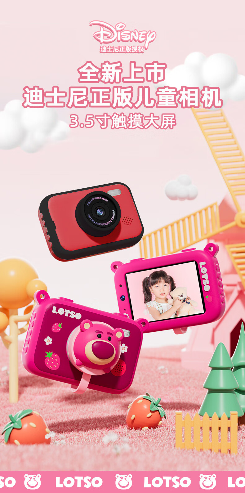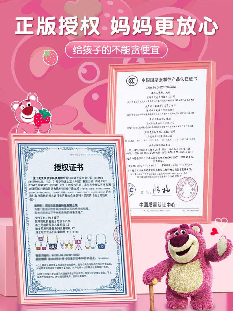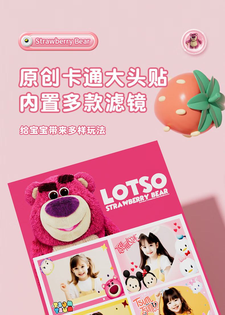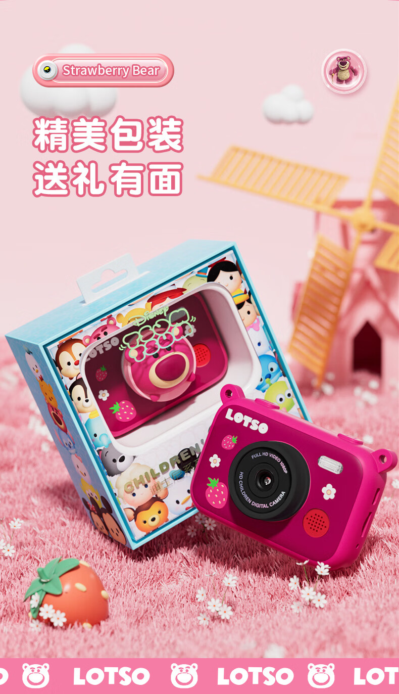 迪士尼儿童相机数码相机拍照旅游专用手持触控屏男女孩玩具双摄闪光灯生日礼盒礼物 CX5触屏版草莓熊