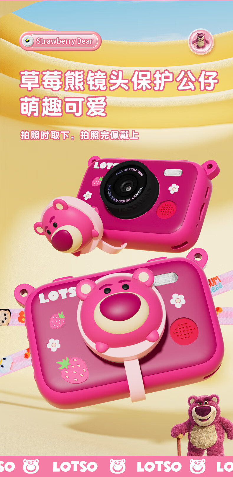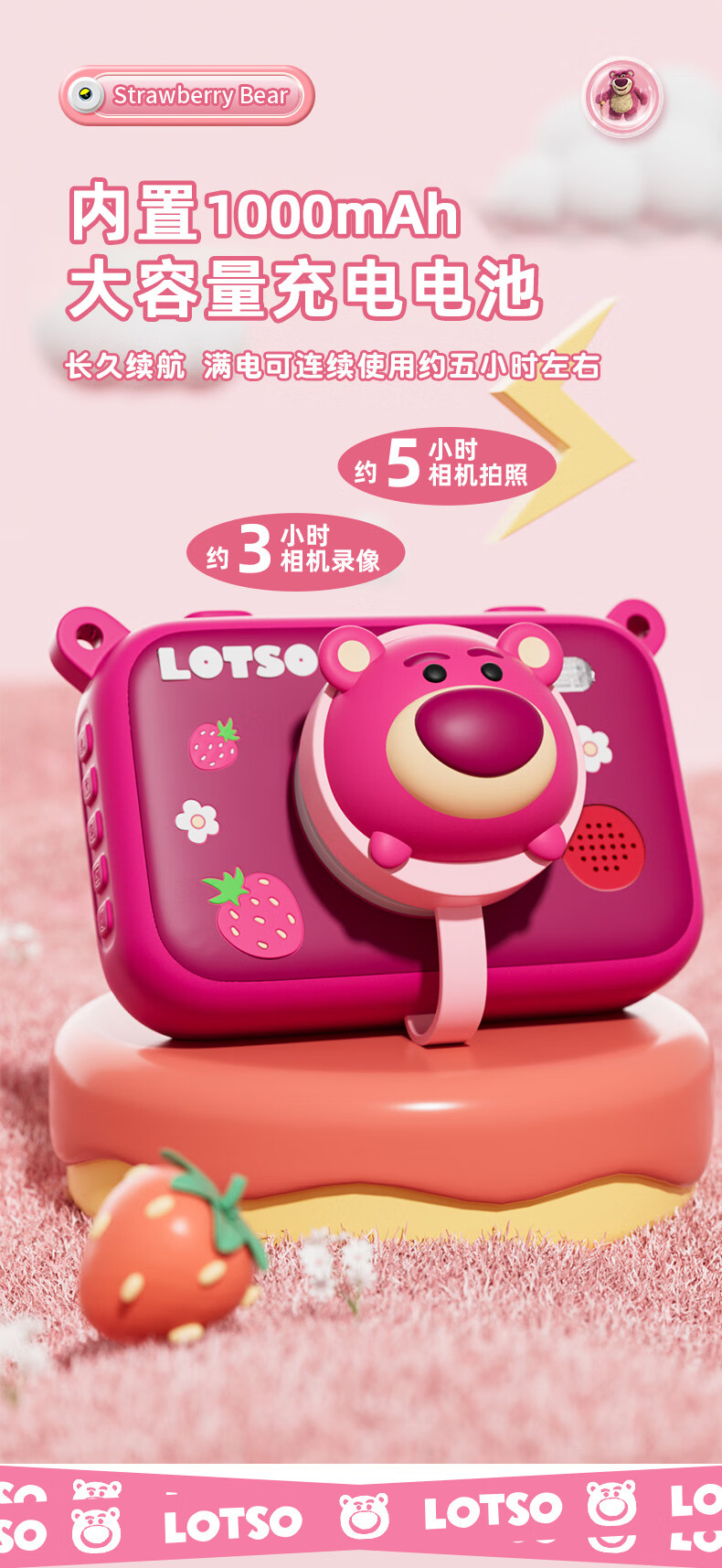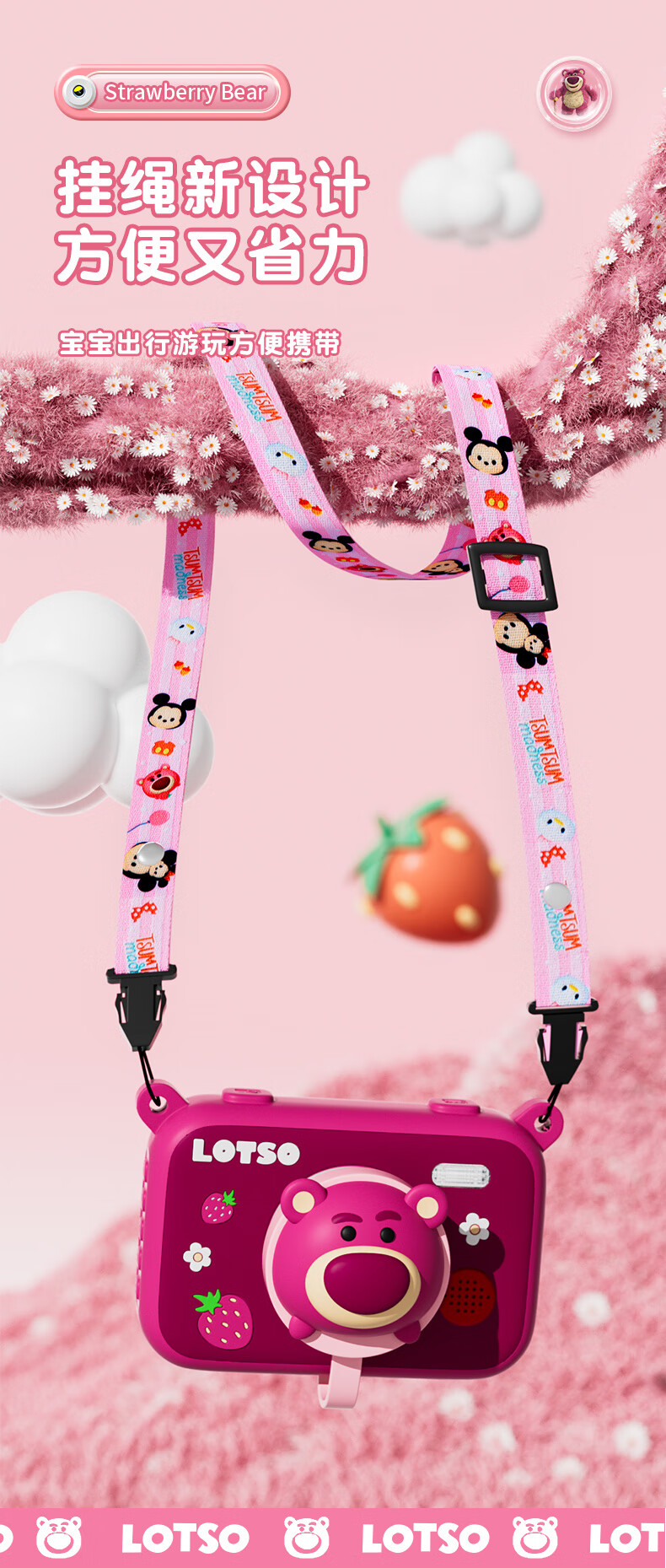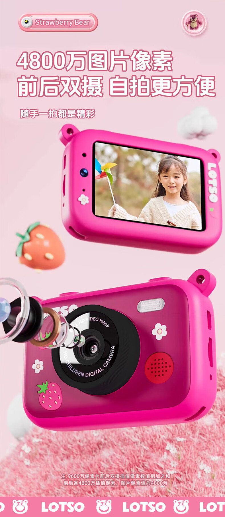 迪士尼儿童相机数码相机拍照旅游专用手持触控屏男女孩玩具双摄闪光灯生日礼盒礼物 CX5触屏版草莓熊