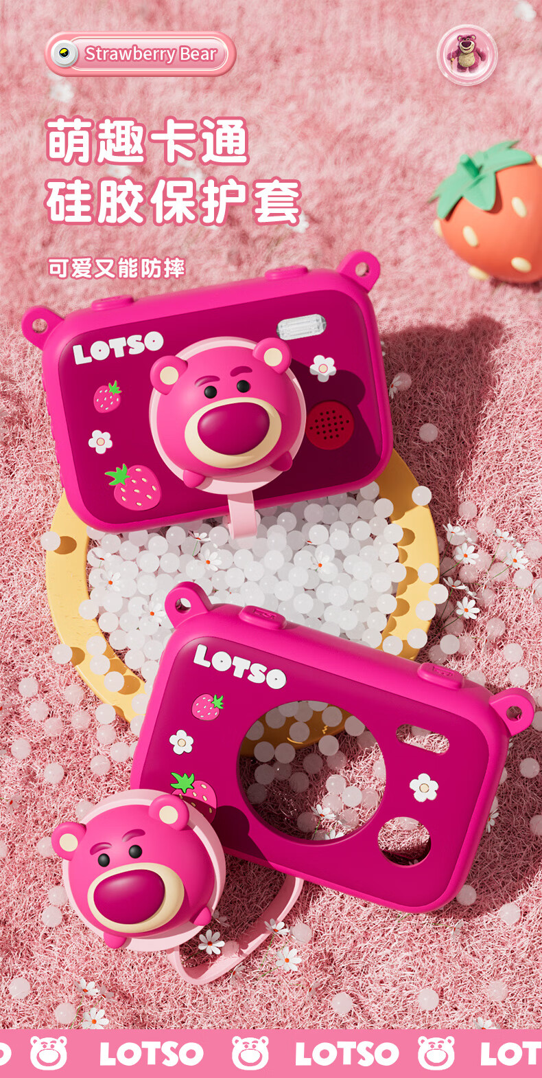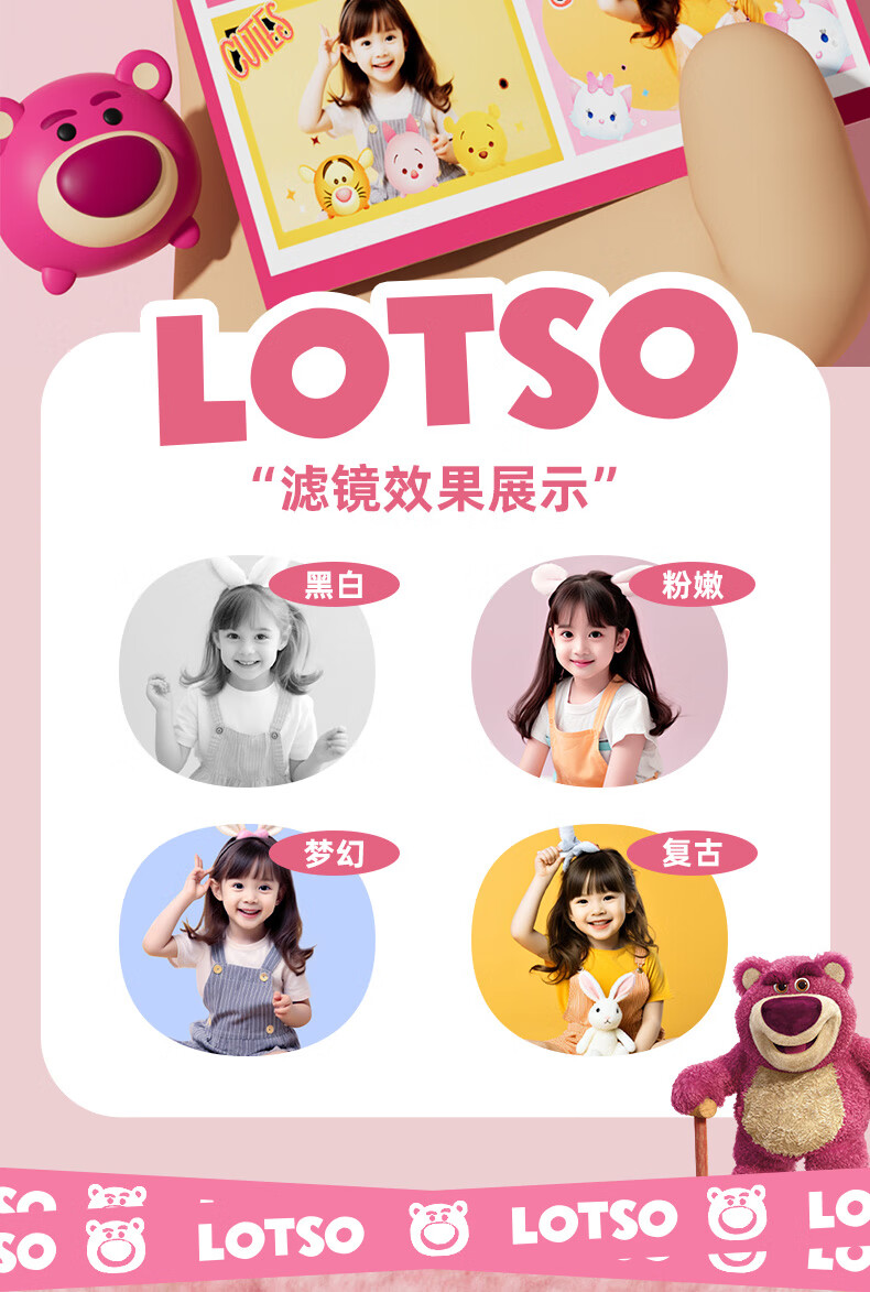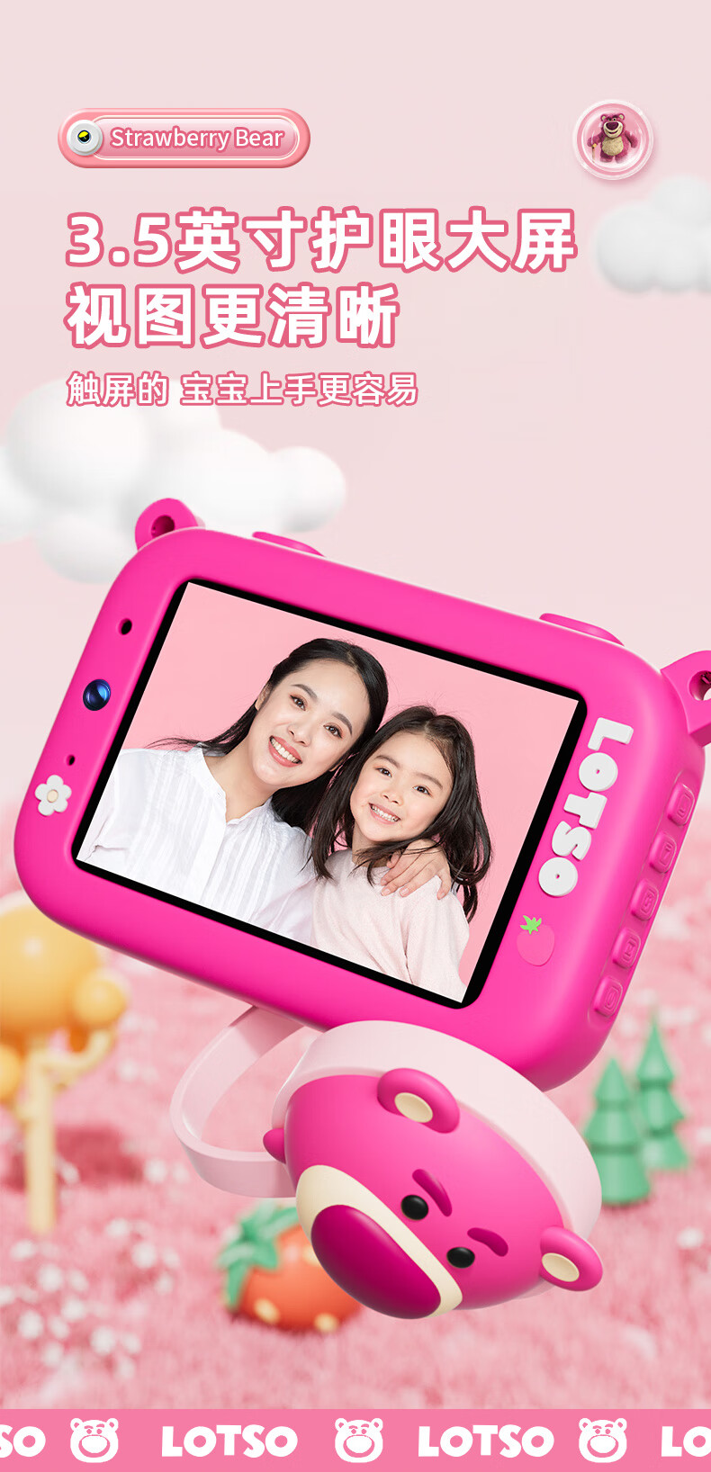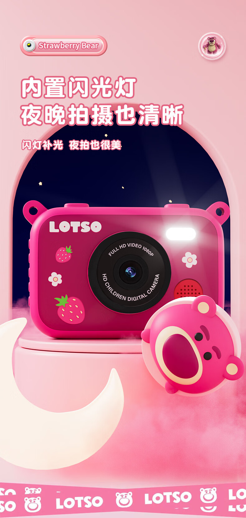 迪士尼儿童相机数码相机拍照旅游专用手持触控屏男女孩玩具双摄闪光灯生日礼盒礼物 CX5触屏版草莓熊