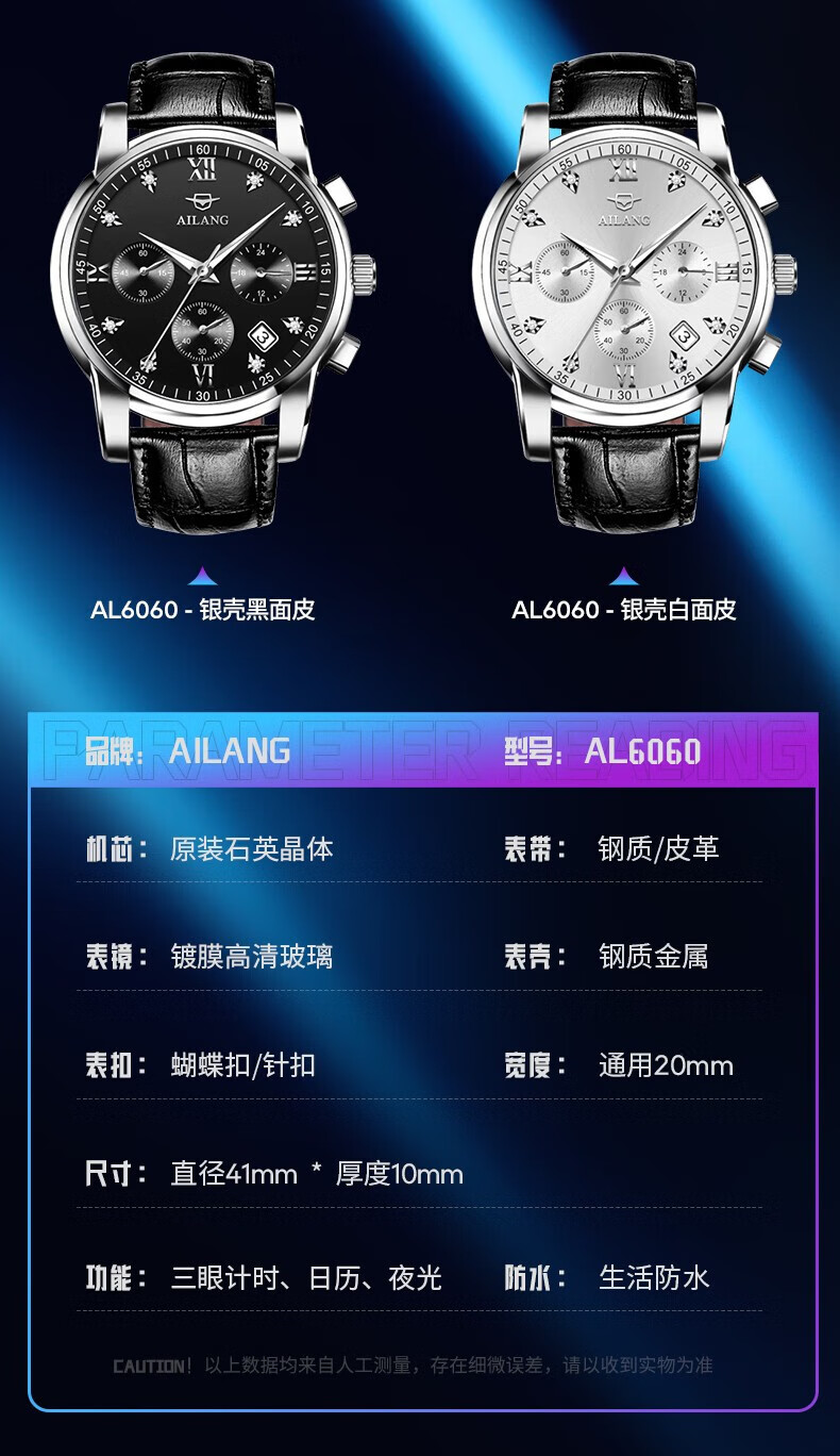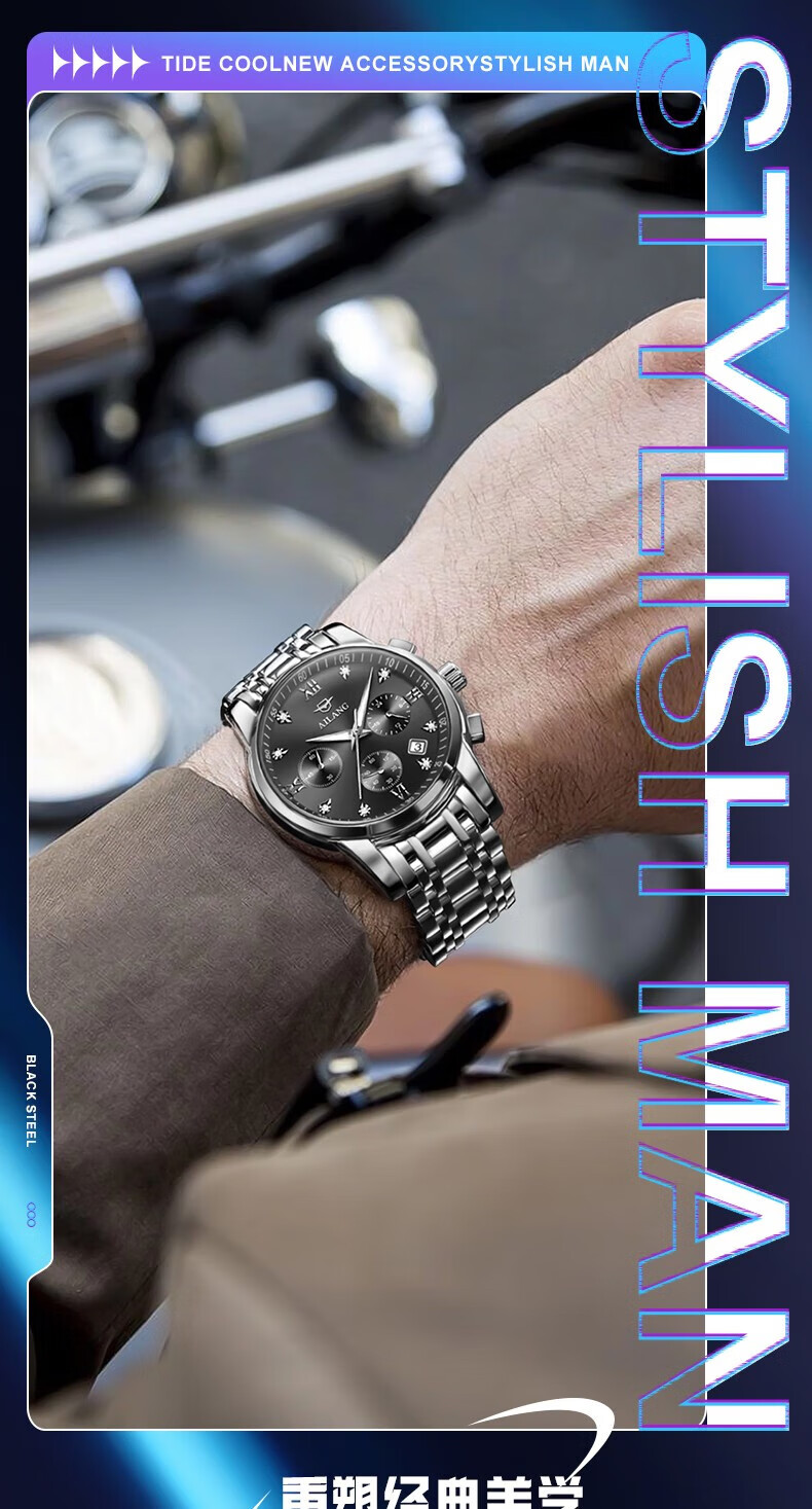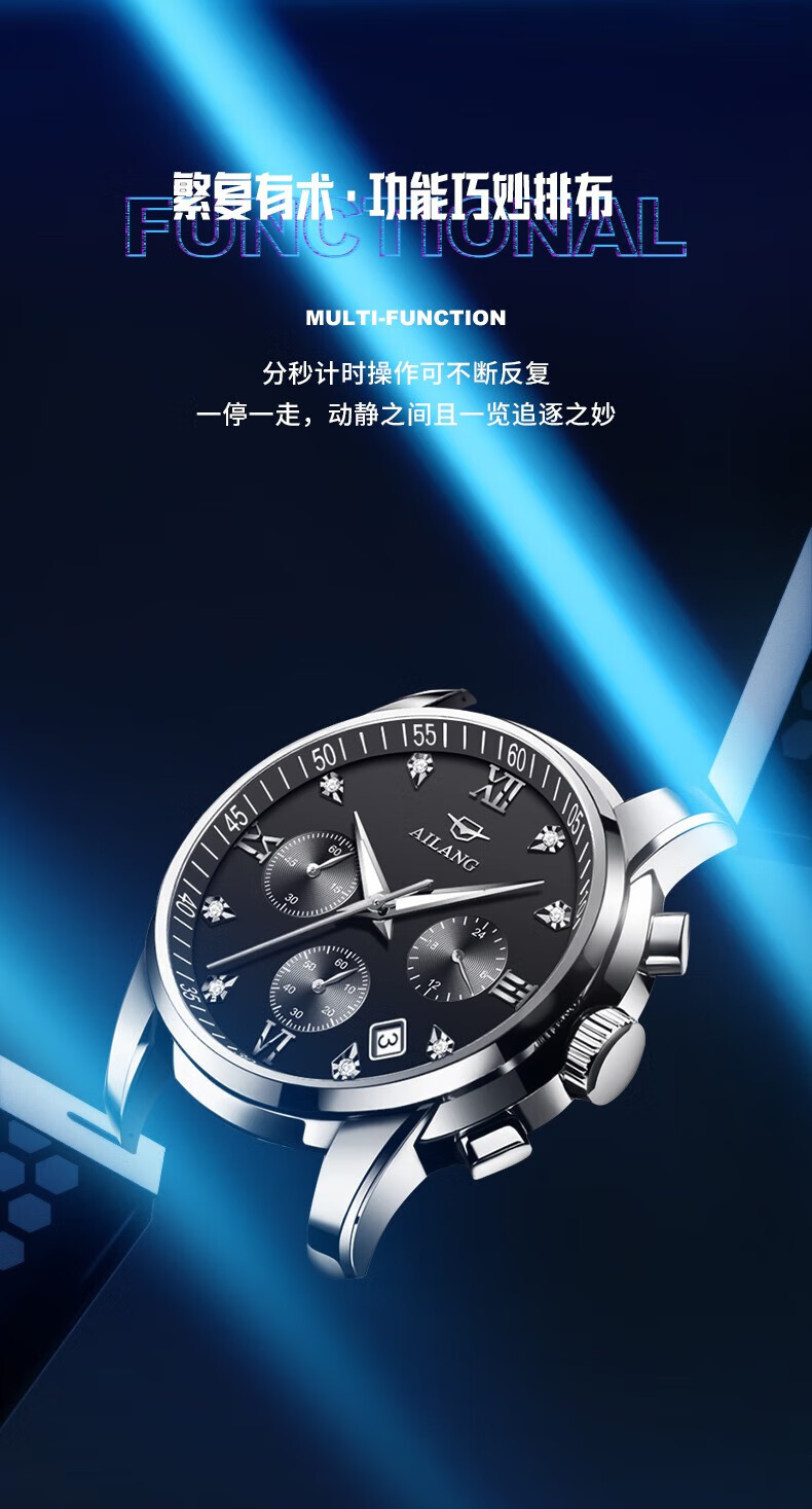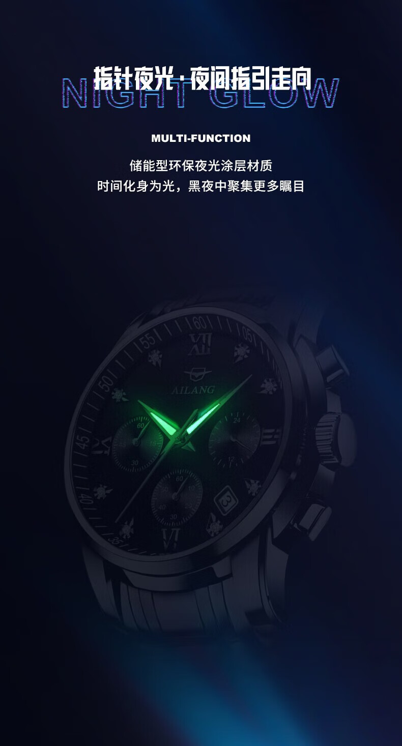 艾浪瑞士品质男士手表多功能商务简约夜光防水石英机芯气质腕表 41mm