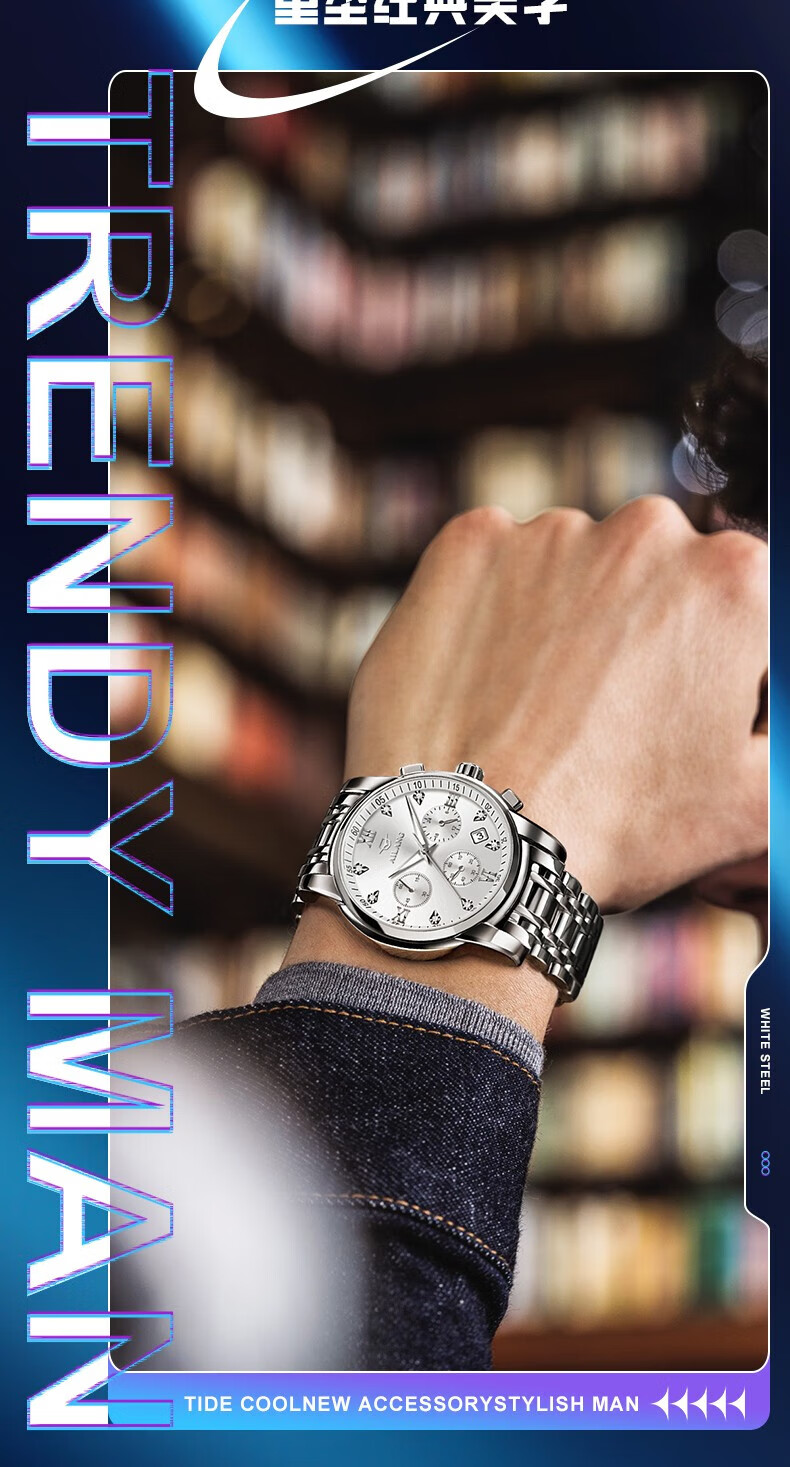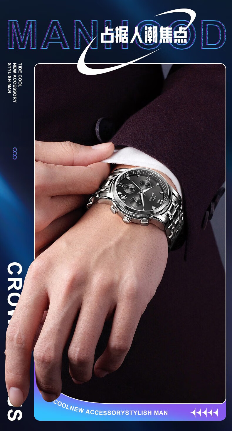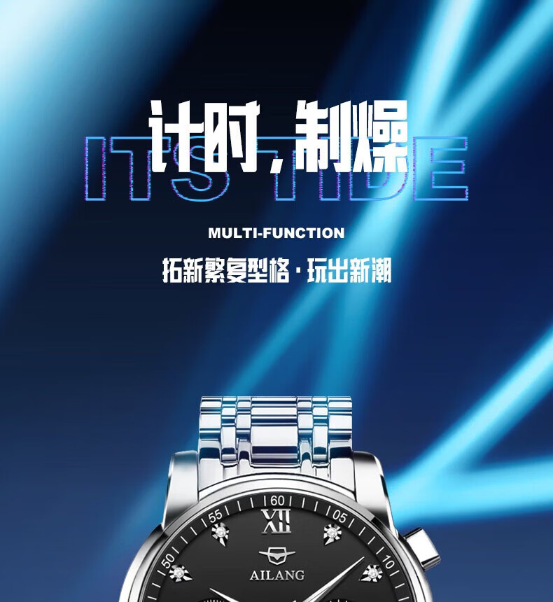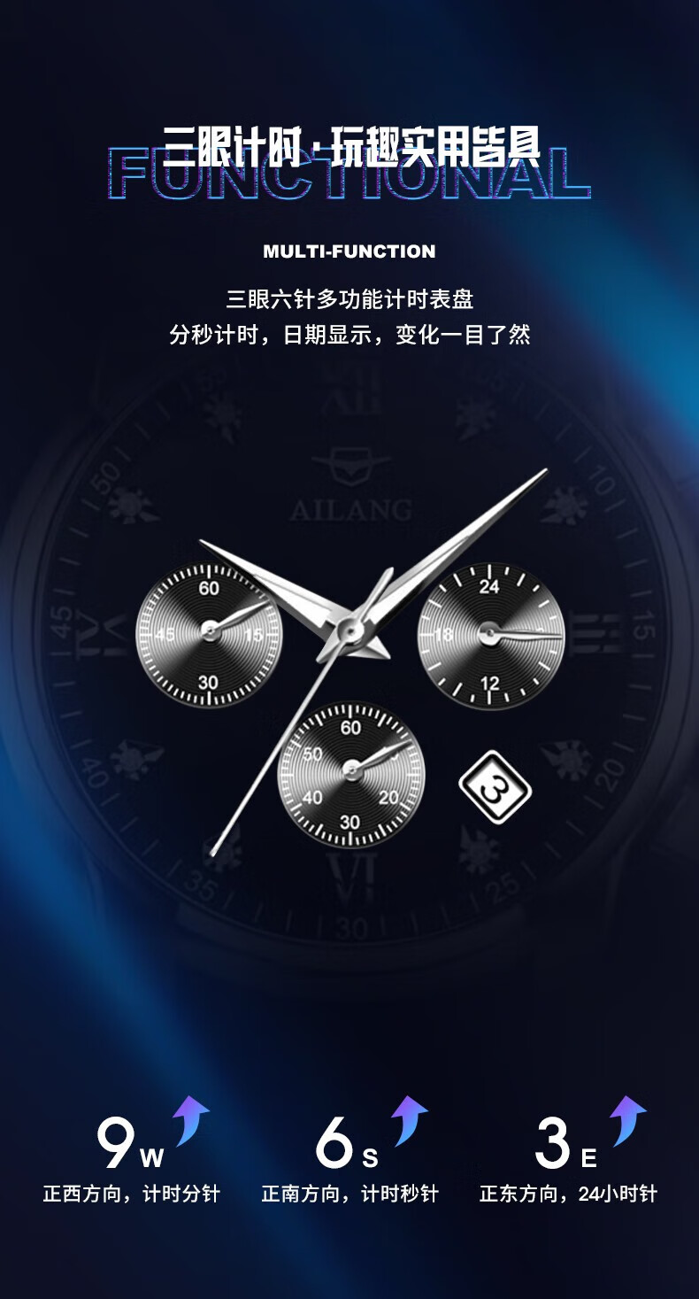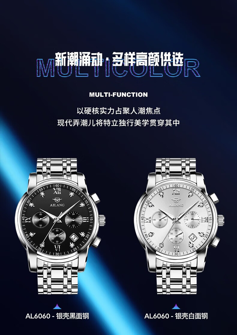艾浪瑞士品质男士手表多功能商务简约夜光防水石英机芯气质腕表 41mm