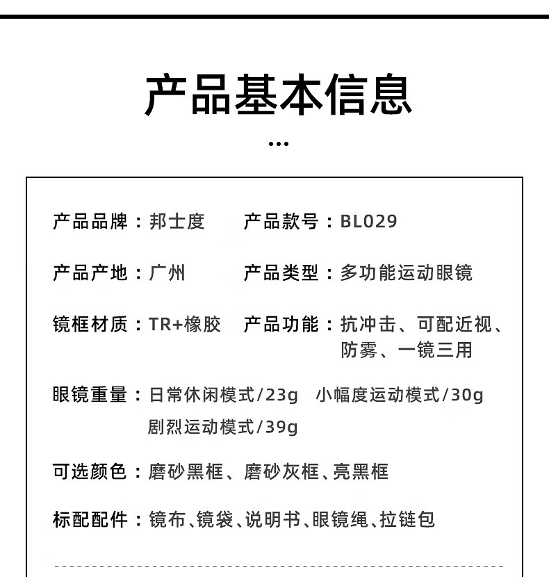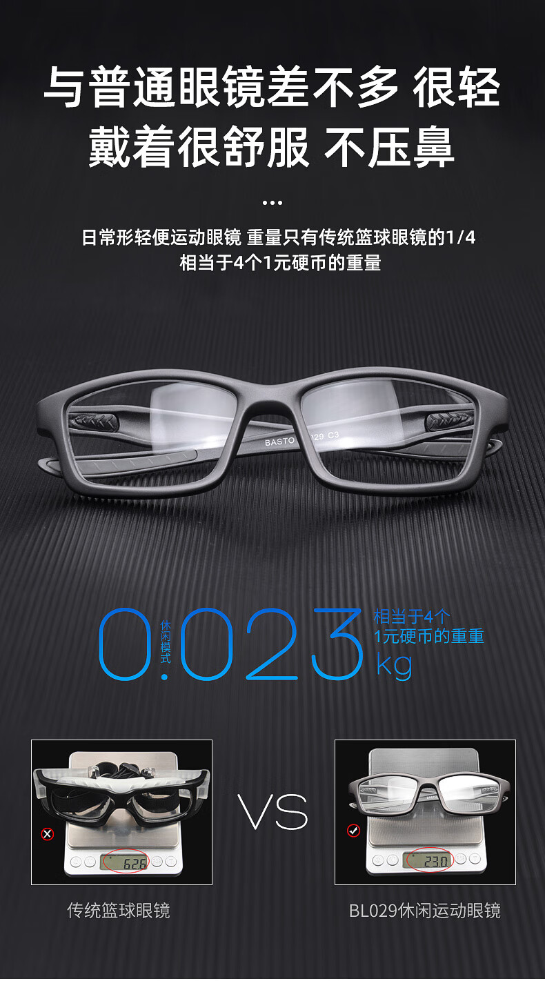 邦士度tr90篮球眼镜运动休闲商务防滑防雾防撞近视眼镜BL029开学七夕