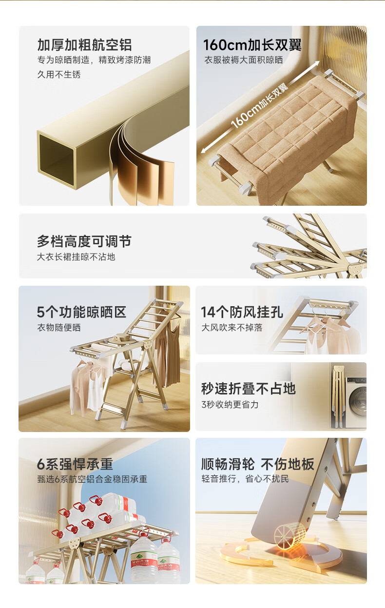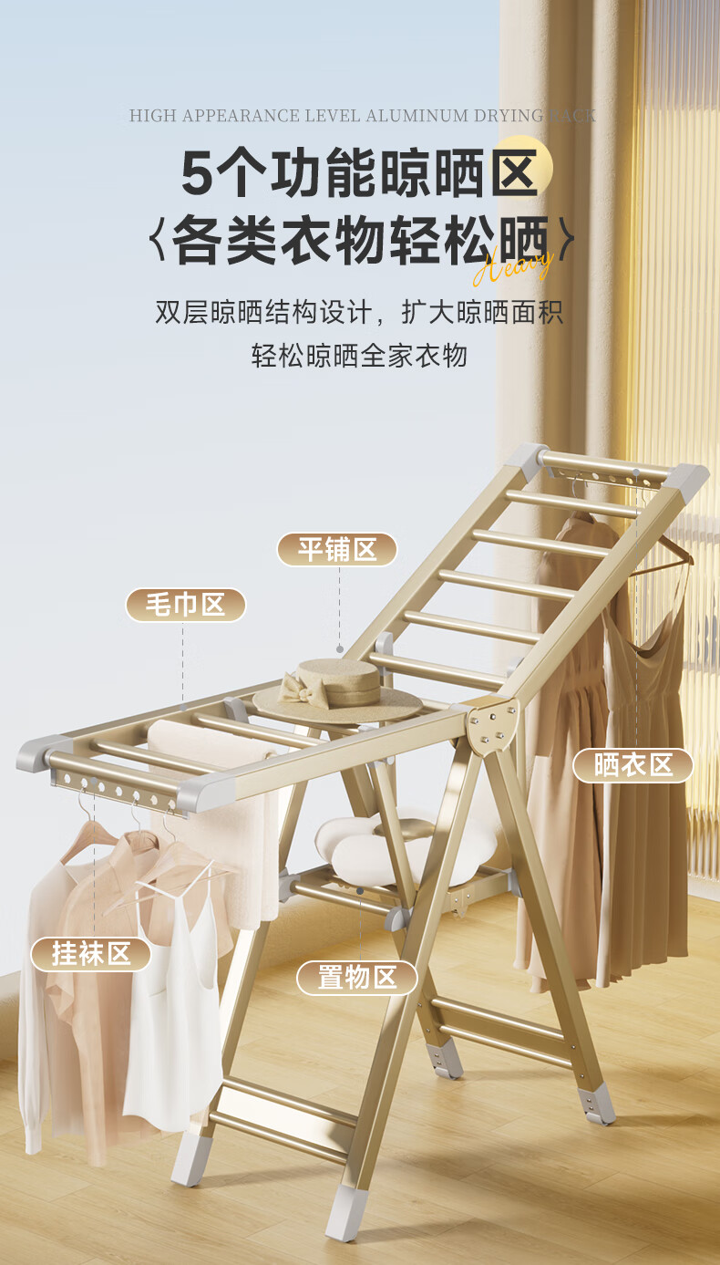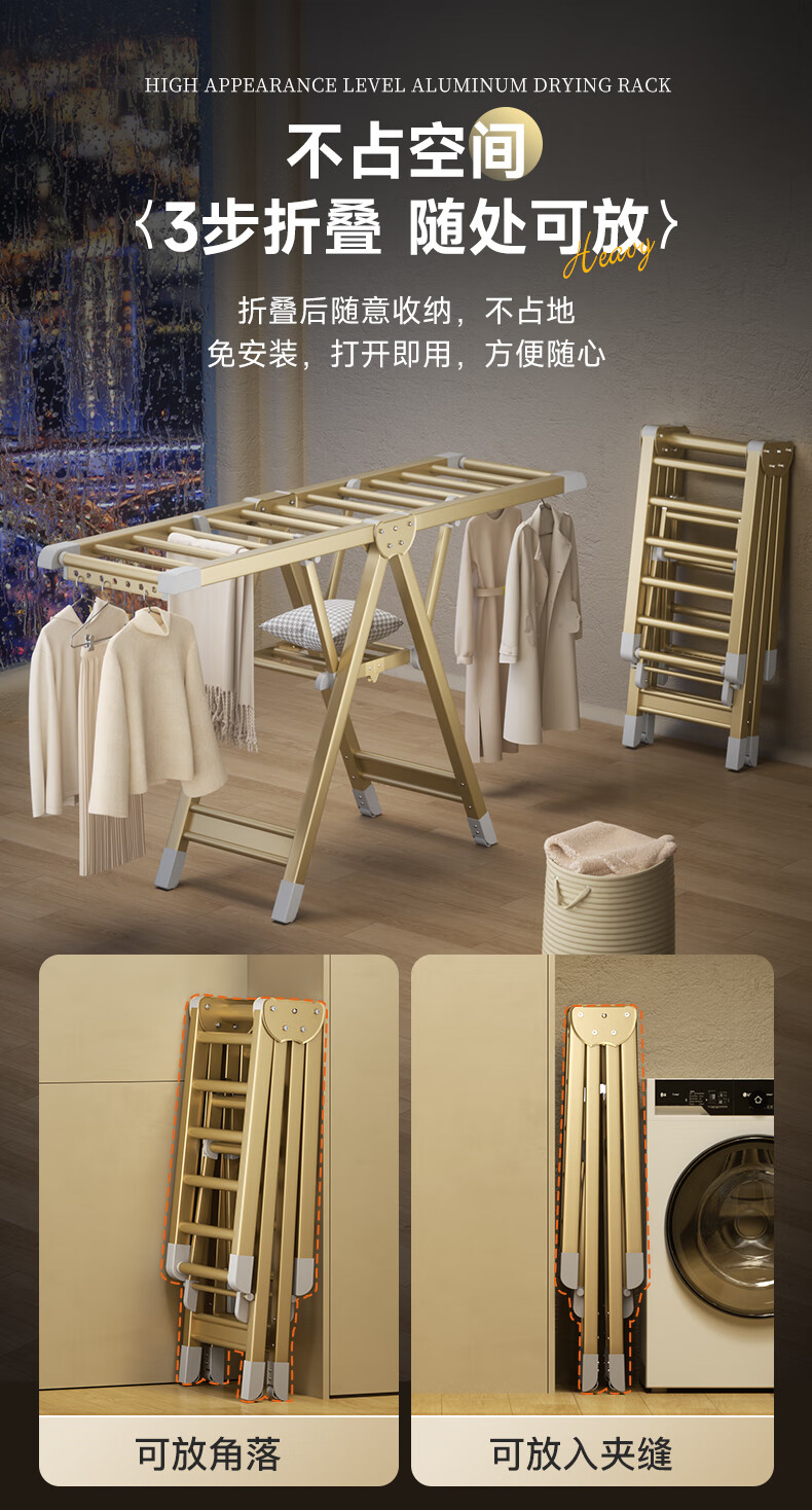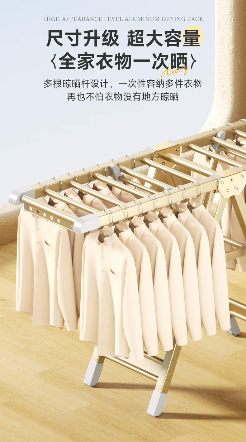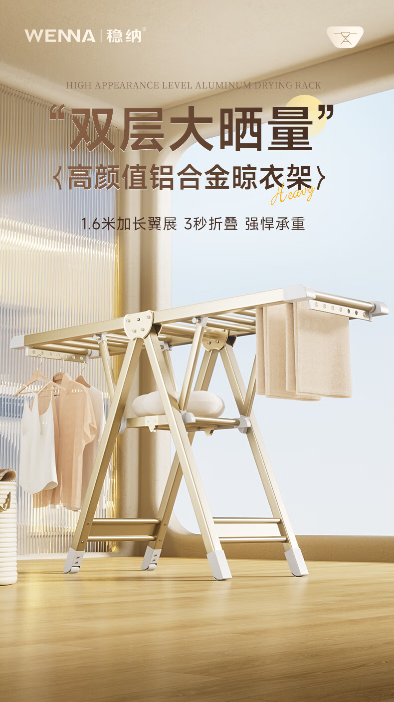 稳纳晾衣架落地折叠衣架翼型晒衣架晾衣杆晒被子折叠晾衣架