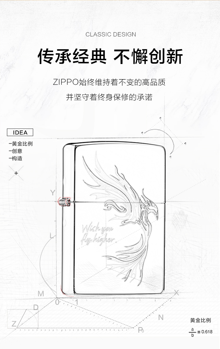 ZIPPO打火机之宝防风煤油 飞鸿 新国潮风 生日礼物送老公送男友 单机