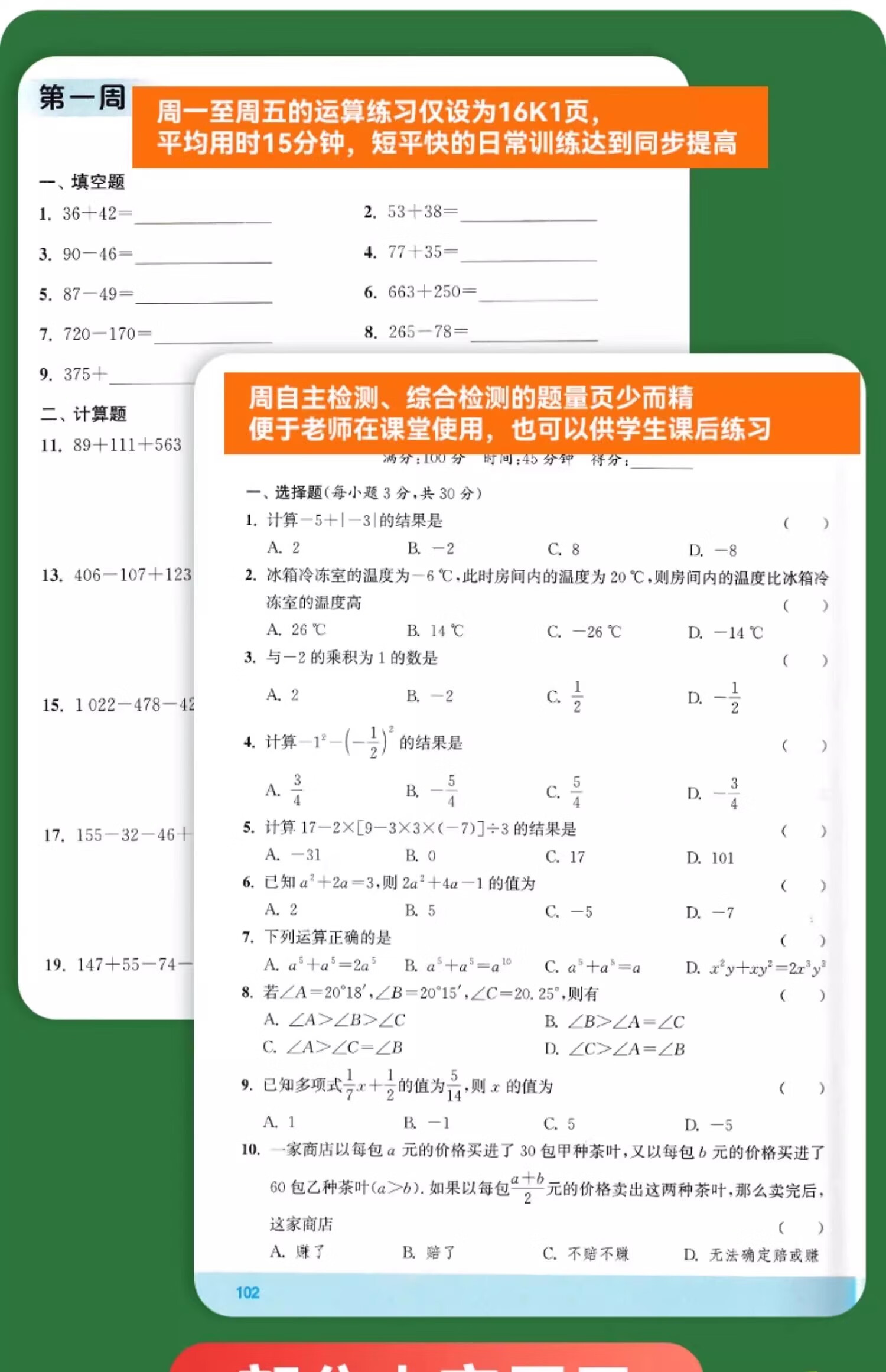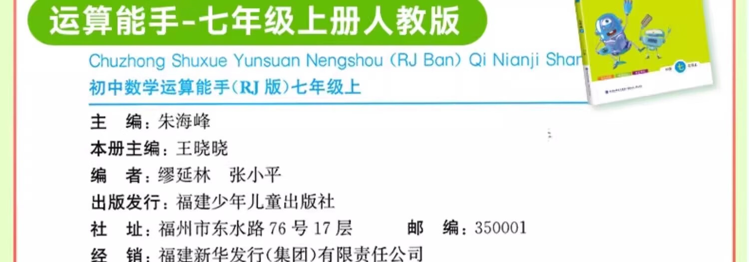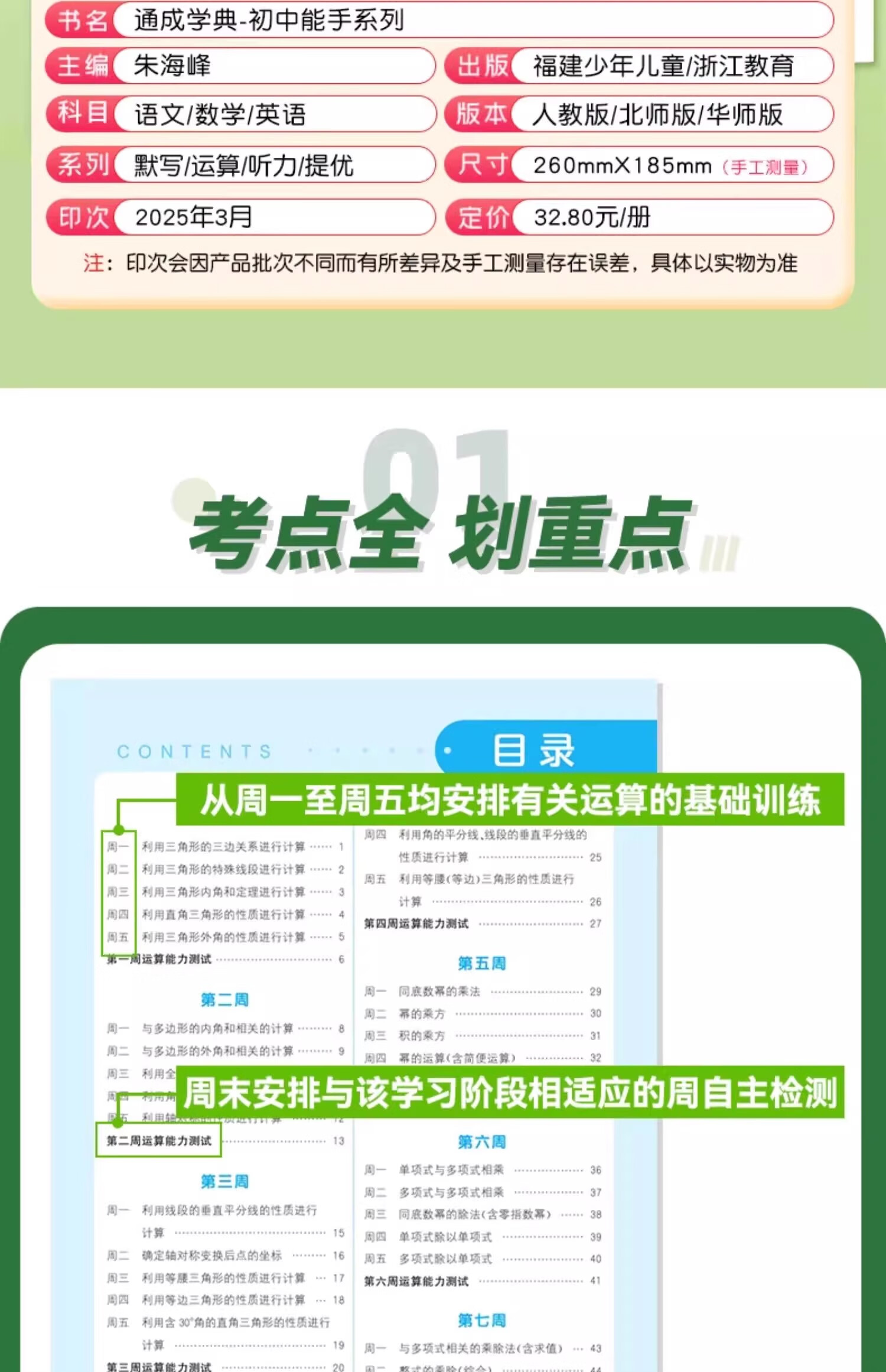 当当网2025秋新版初中运算能手默写能手听力提优七年级八中考九上册下语文数学英语苏教人教北师译林初一同步练习册口算天天练计算 数学运算能手【人教版】 25秋 七年级上册