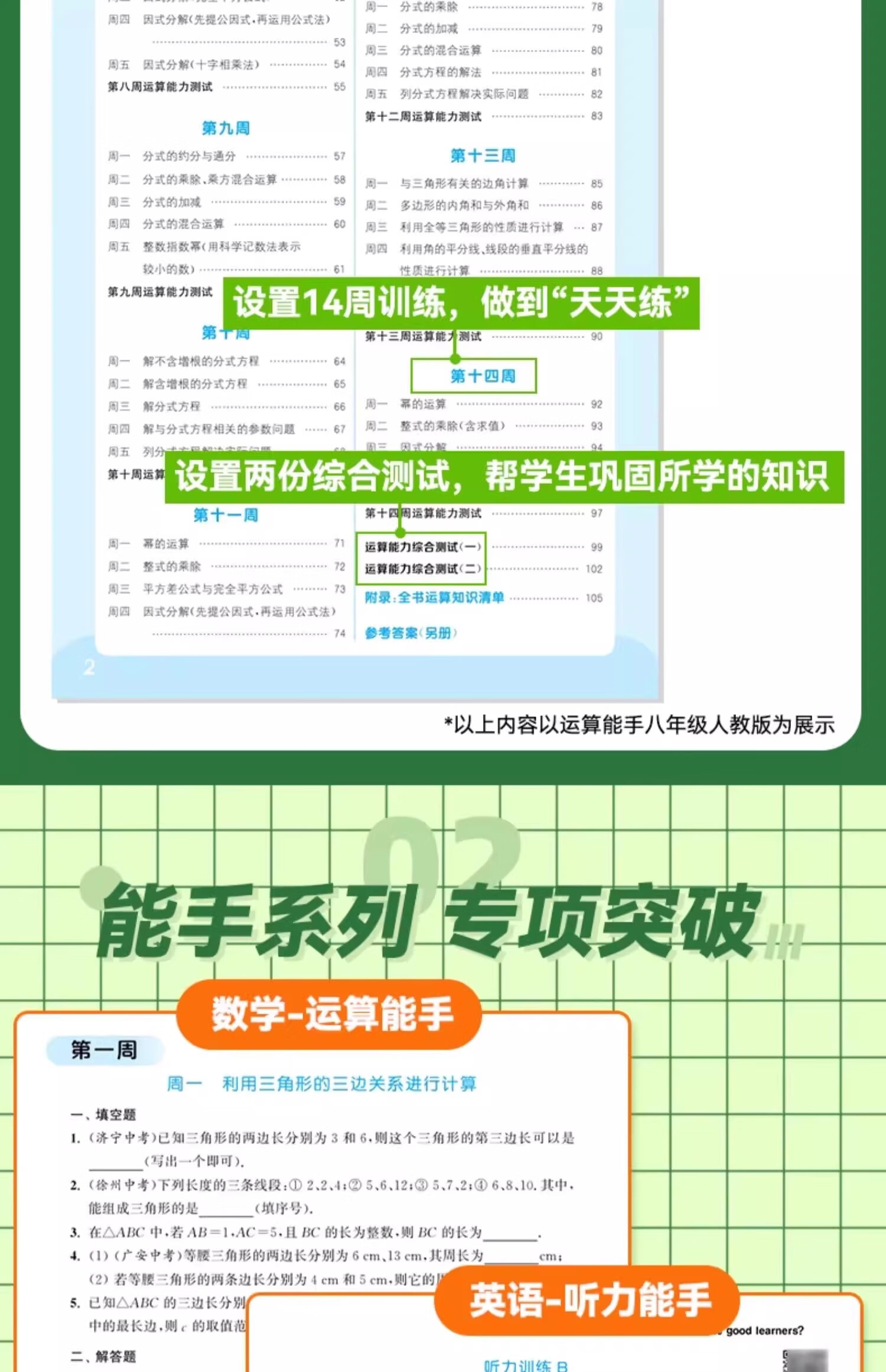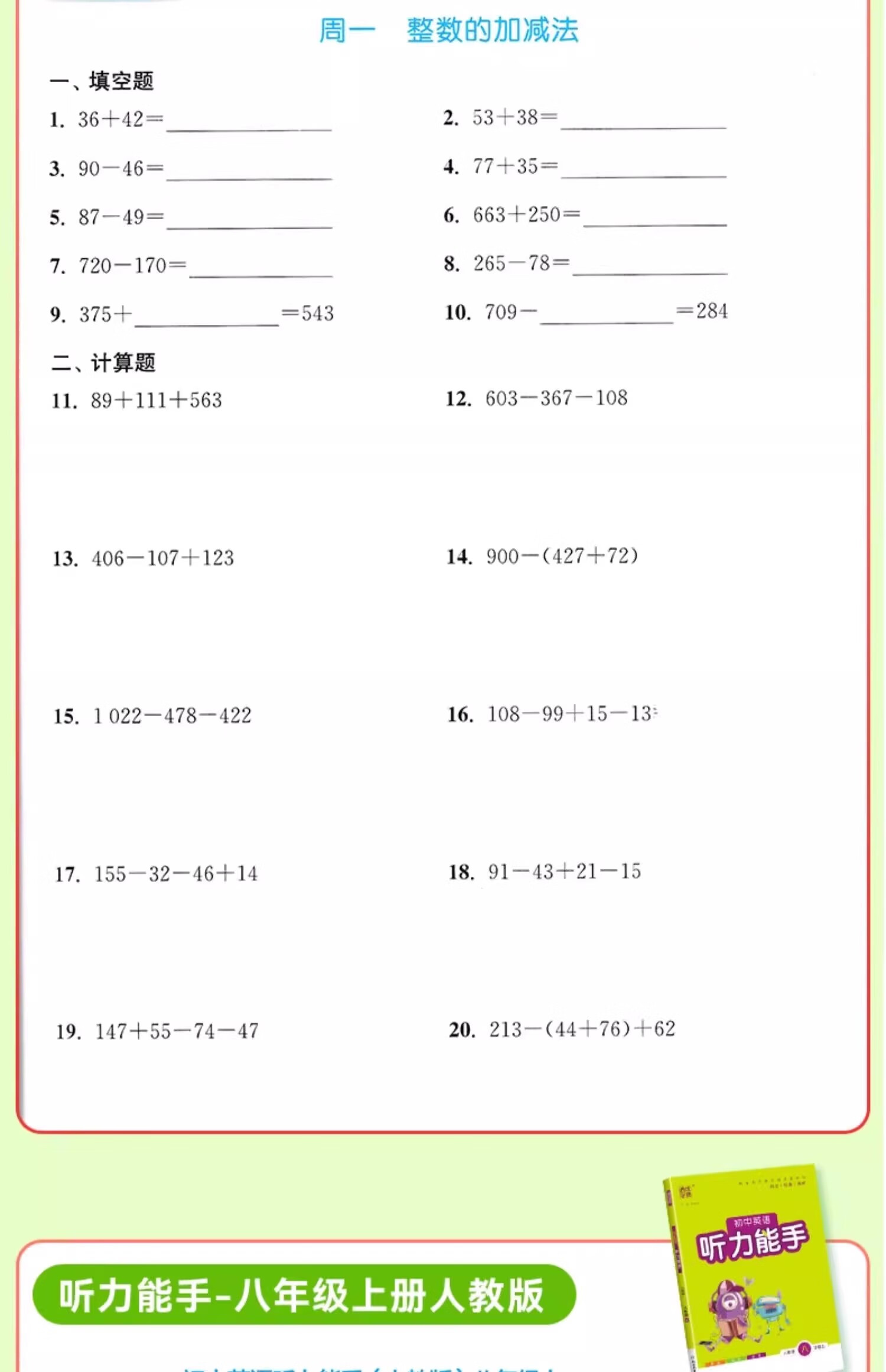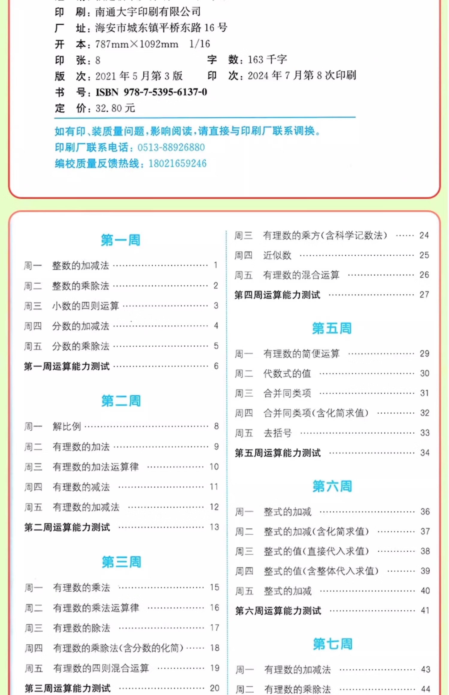 当当网2025秋新版初中运算能手默写能手听力提优七年级八中考九上册下语文数学英语苏教人教北师译林初一同步练习册口算天天练计算 数学运算能手【人教版】 25秋 七年级上册