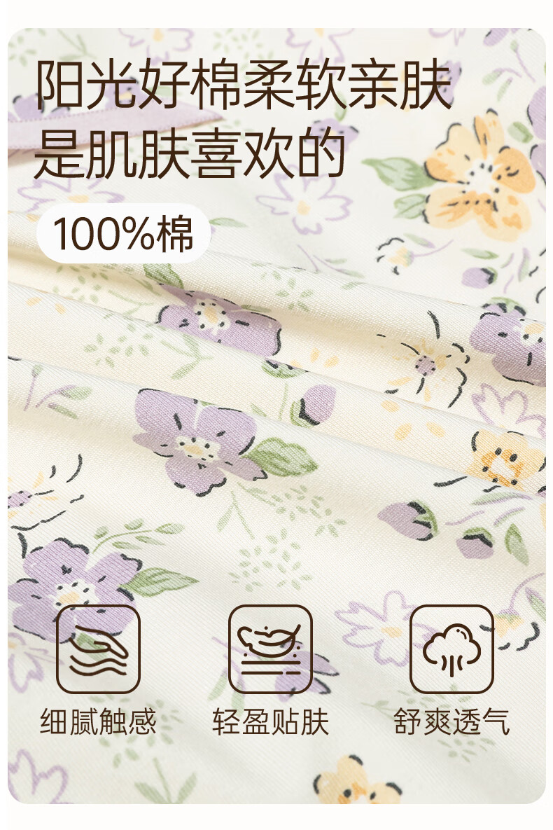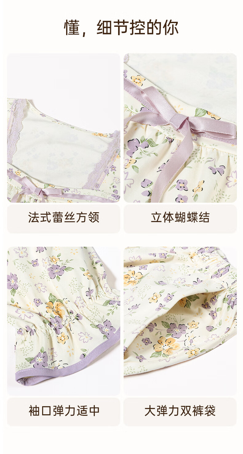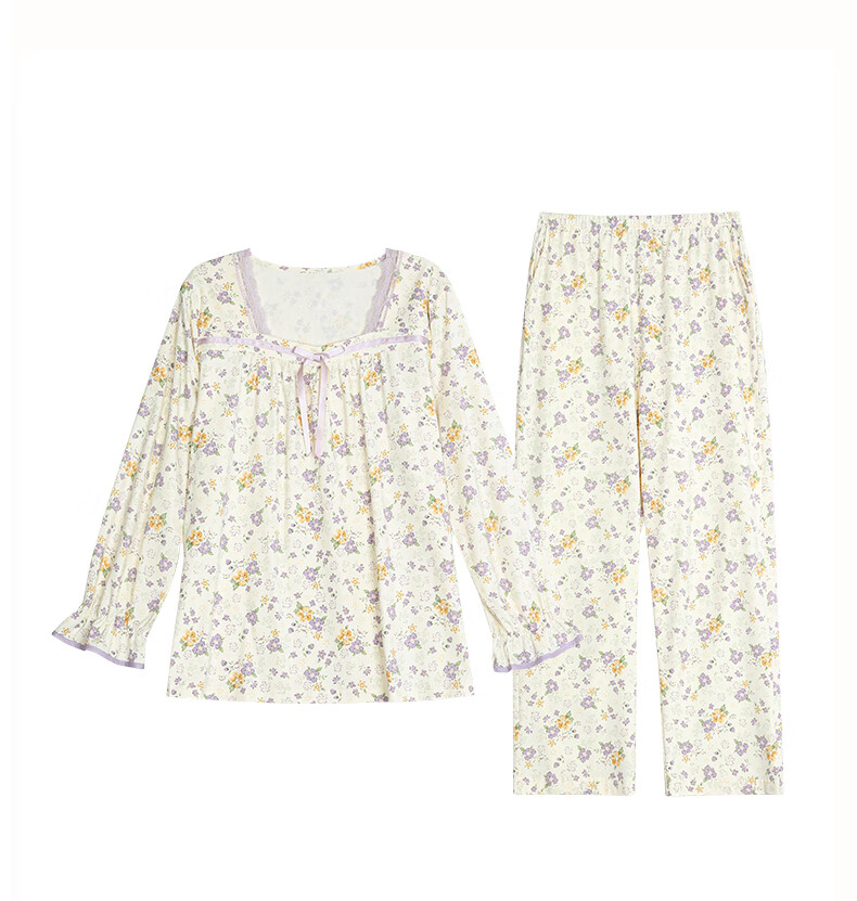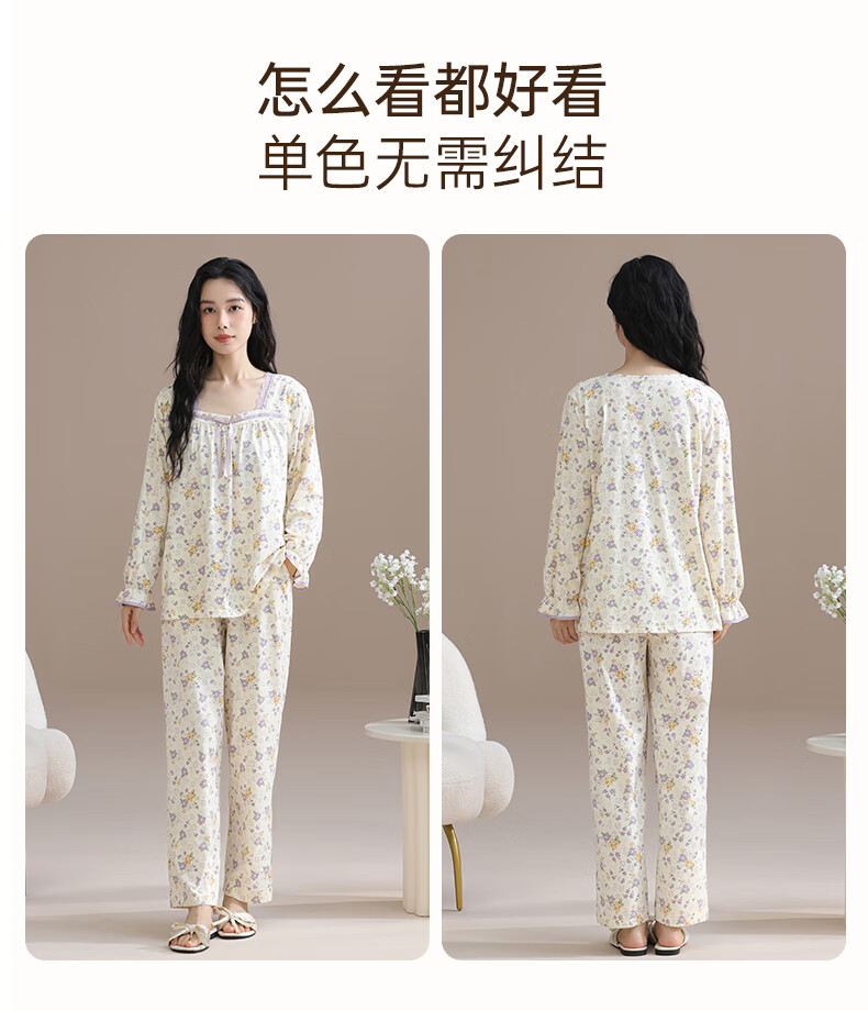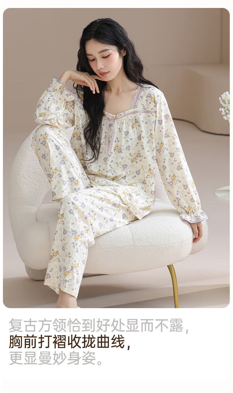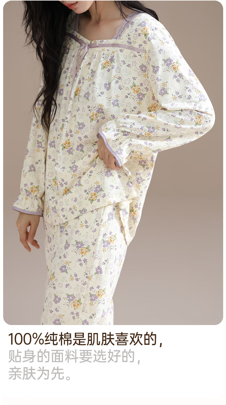 玛伦萨纯棉睡衣女春秋季2025新款可外穿长袖长裤小碎花女士家居服套装 米白底花 XL