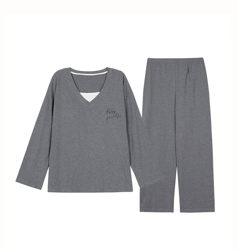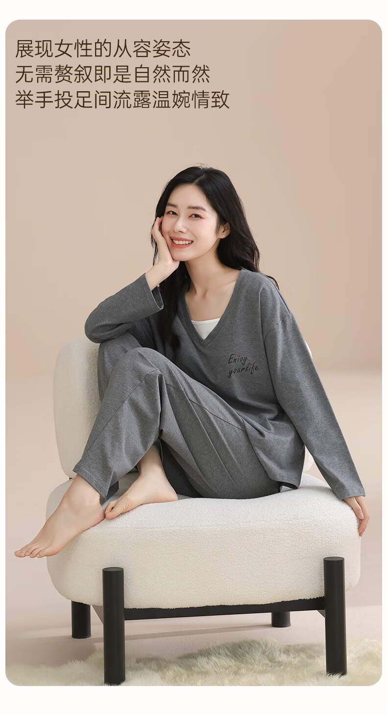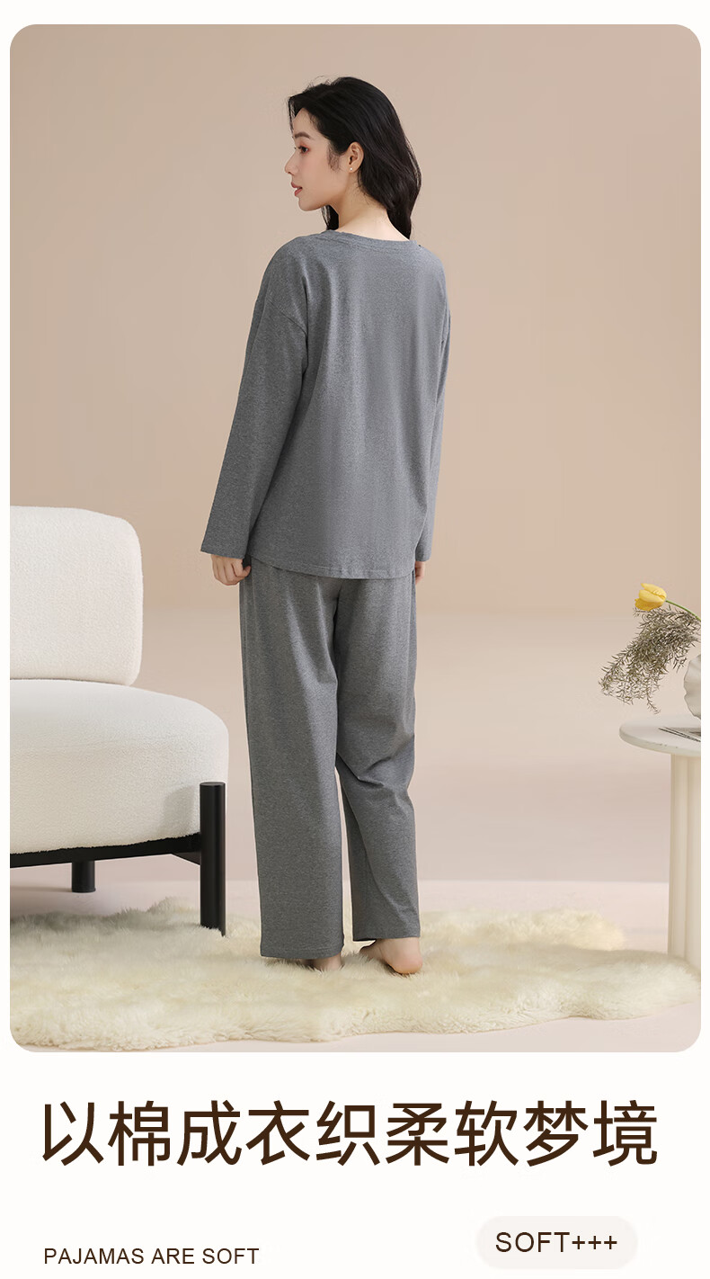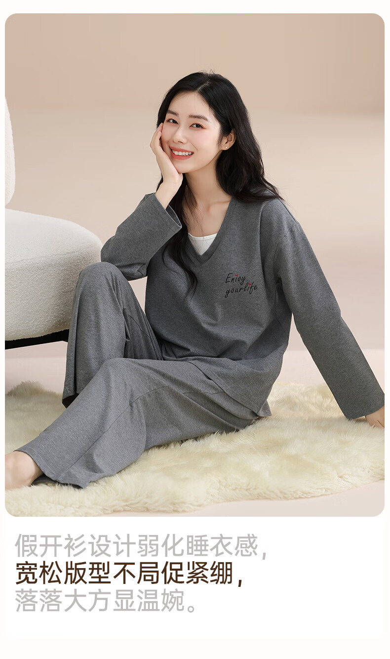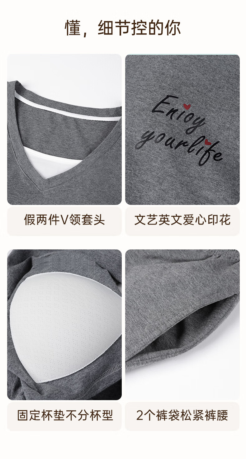 玛伦萨带胸垫睡衣女100%纯棉春秋季可外穿2025新款长袖长裤女士家居服 花灰 M