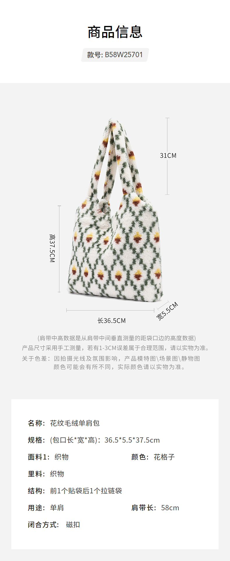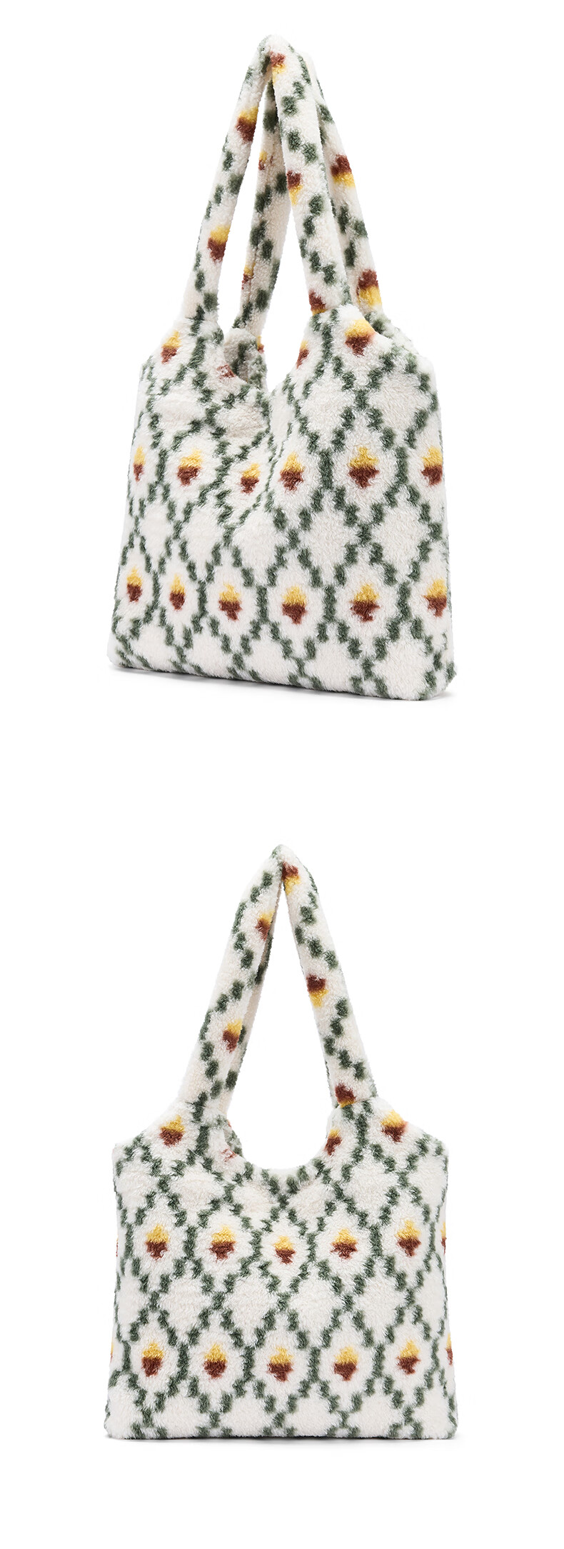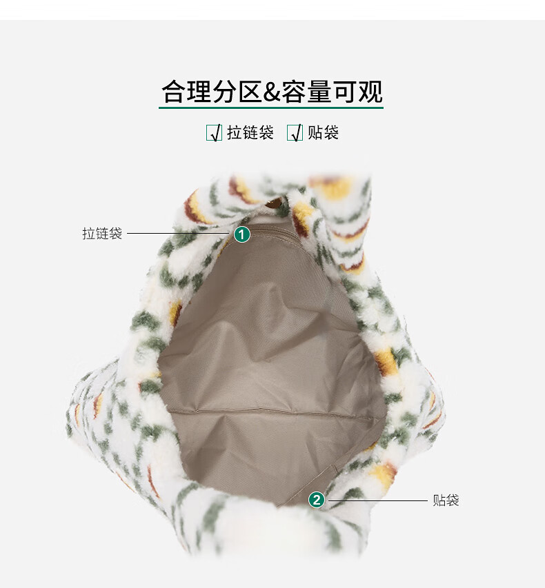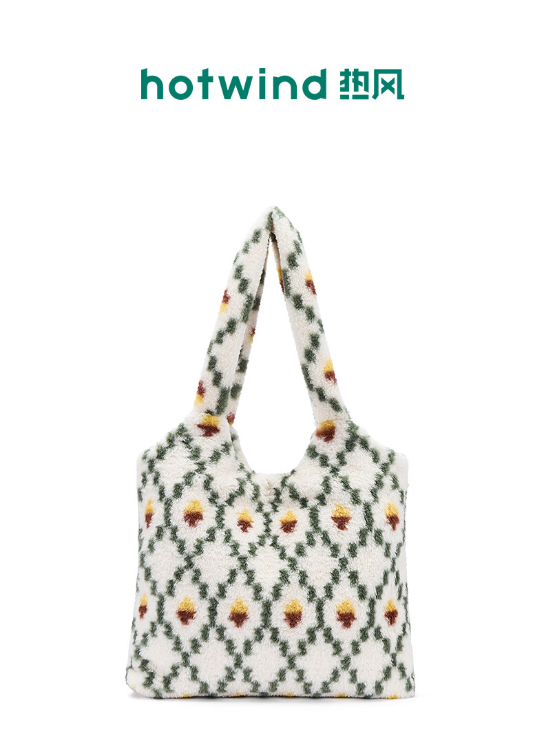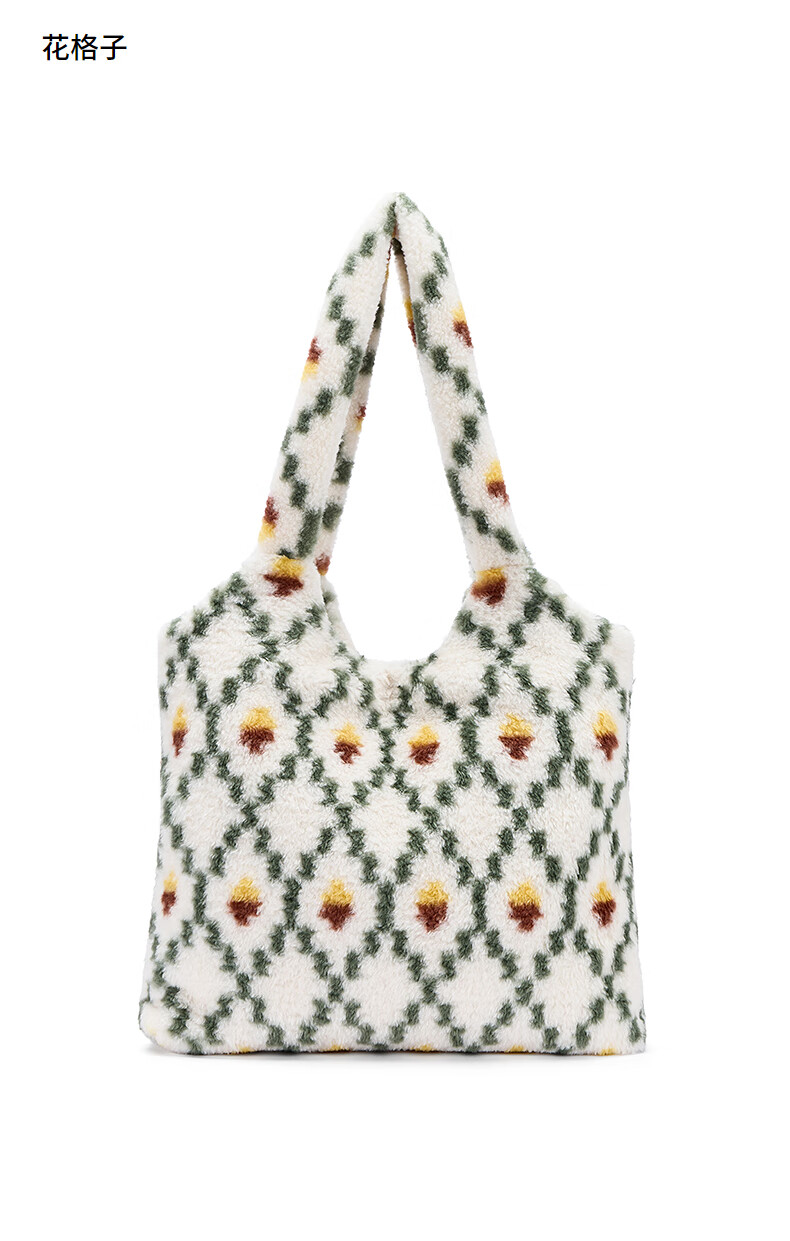热风(Hotwind)女士包包2025年秋季新款花纹毛绒单肩包复古大容量通勤手提包 37花格子 F