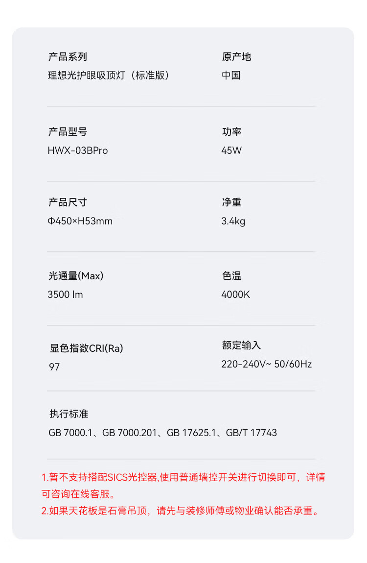 霍尼韦尔(Honeywell)卧室吸顶灯护眼灯卧室灯儿童房学习LED全光谱灯03BPro【包安装】