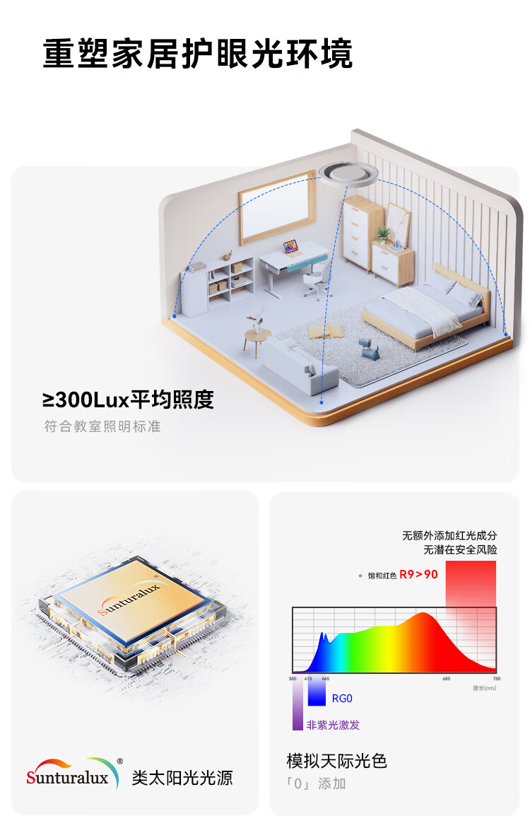 霍尼韦尔(Honeywell)卧室护眼吸顶灯儿童房学习灯智能版LED全光谱灯02BPro【包安装】