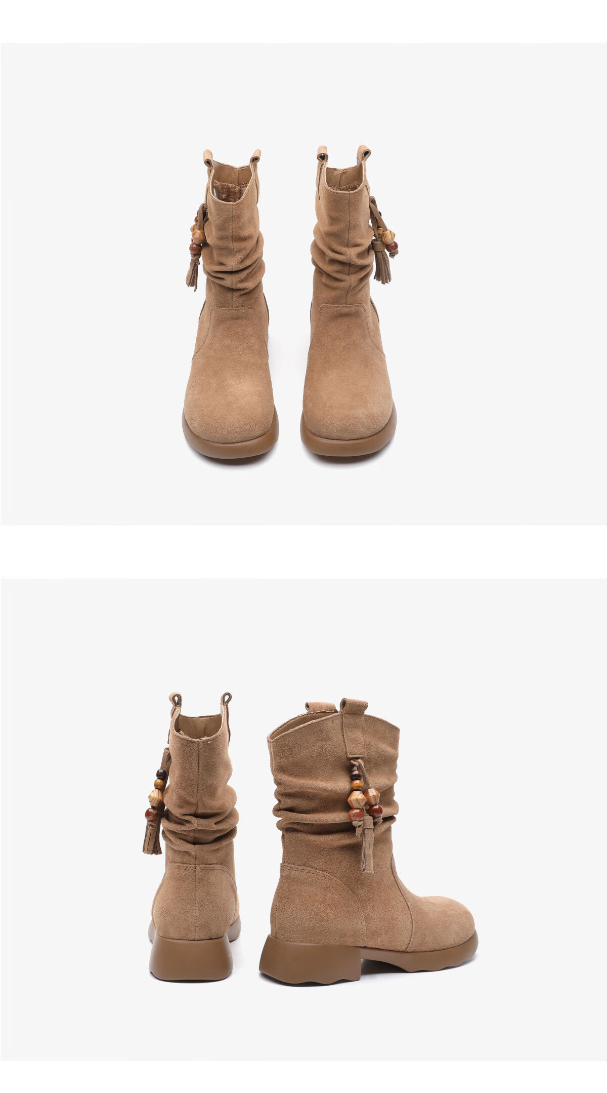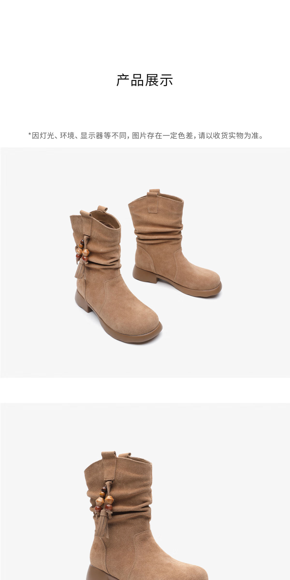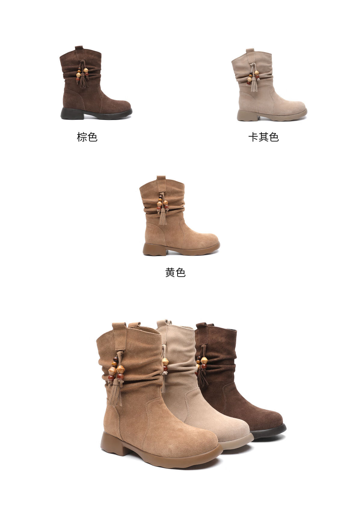 月芽儿中筒靴2025新款短靴废土风流苏不过膝显瘦西部堆堆靴女 绒里棕色03T 34