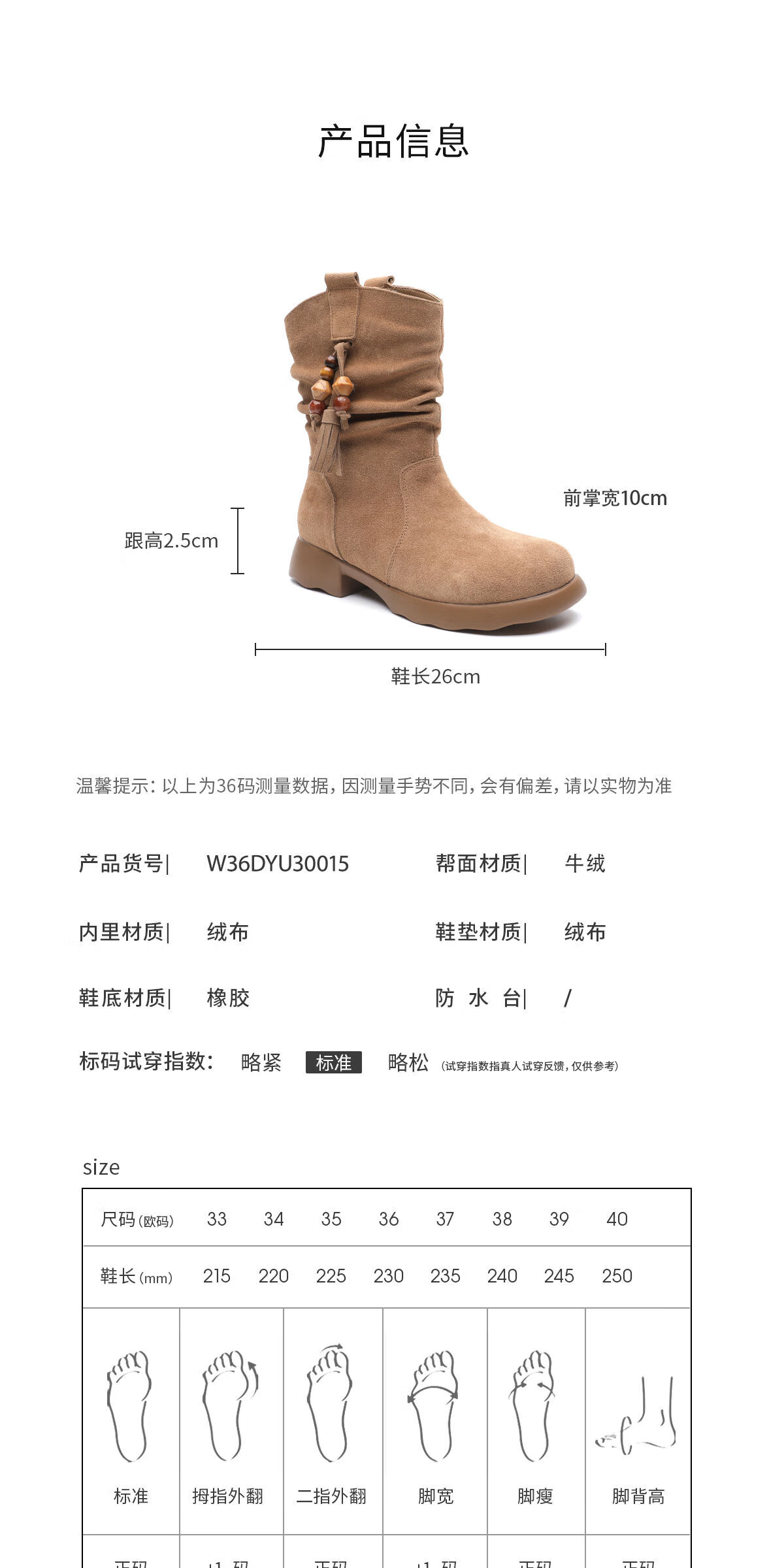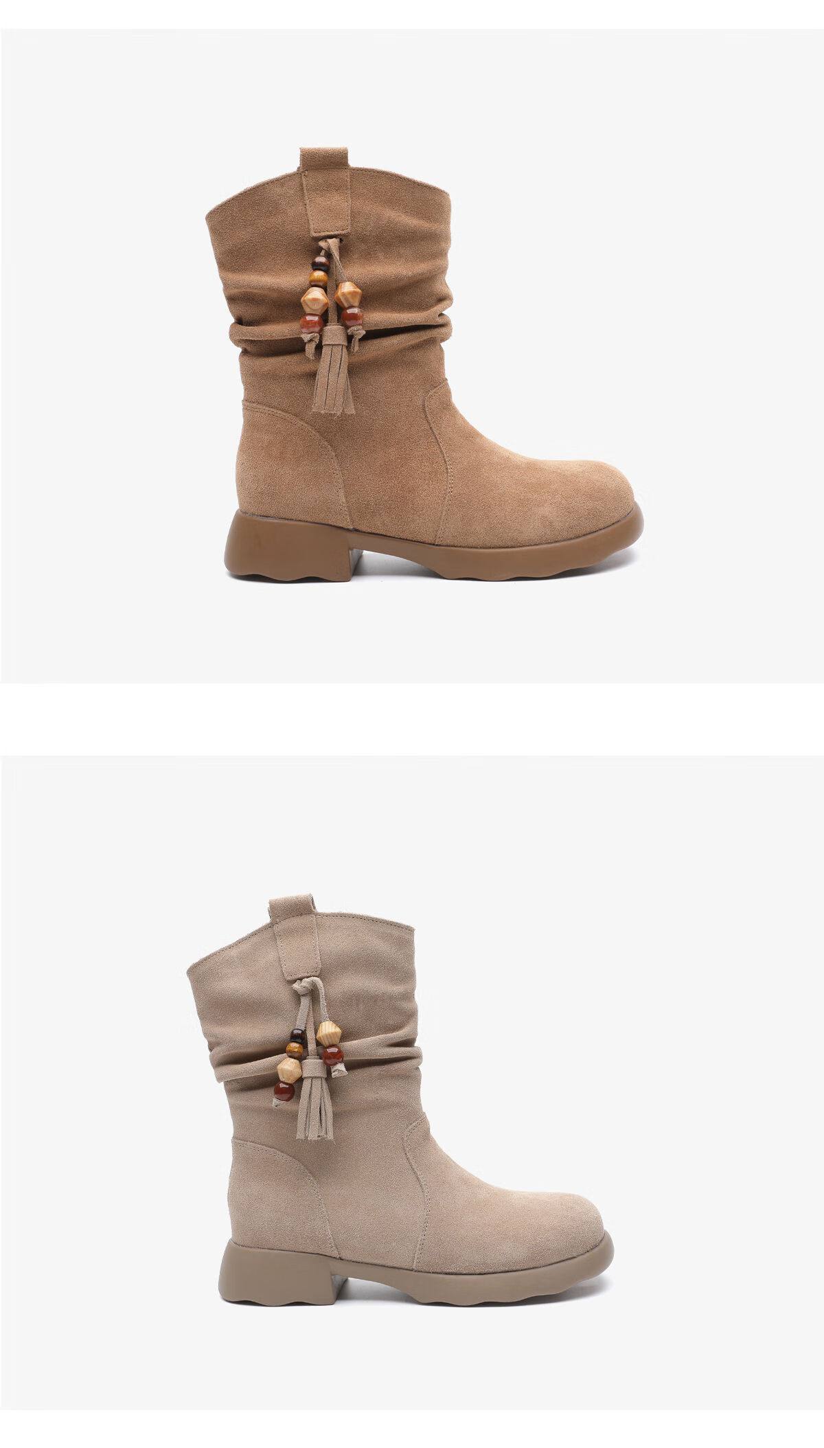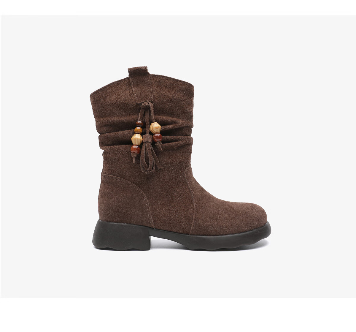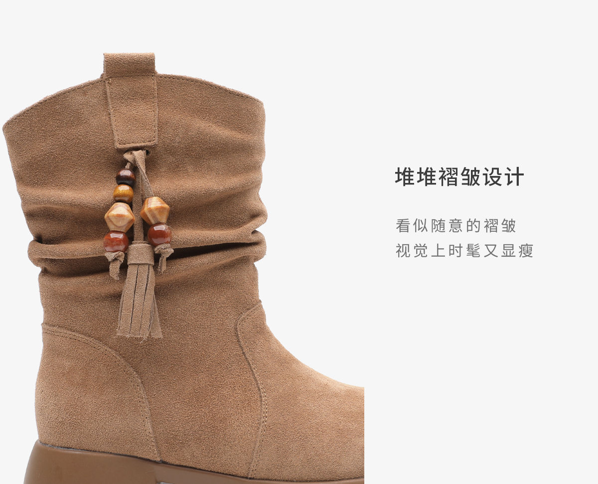 月芽儿中筒靴2025新款短靴废土风流苏不过膝显瘦西部堆堆靴女 绒里棕色03T 34