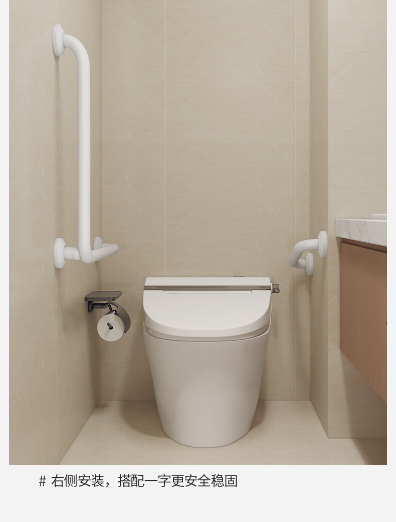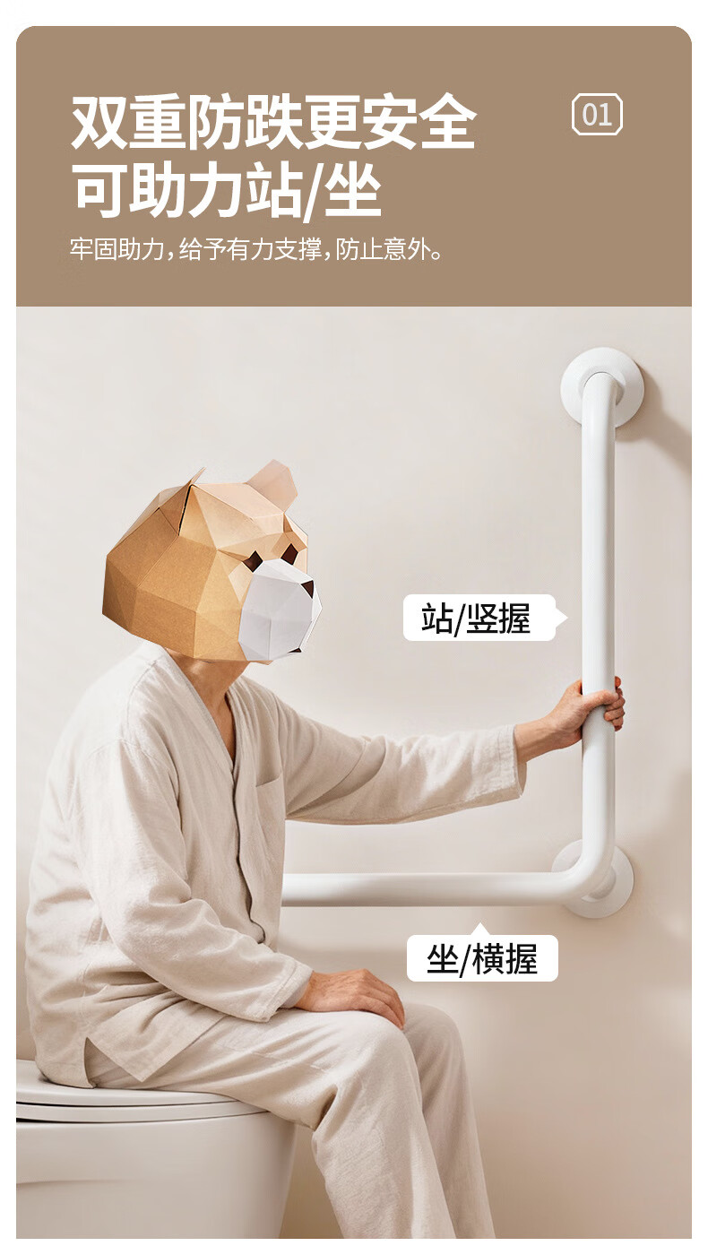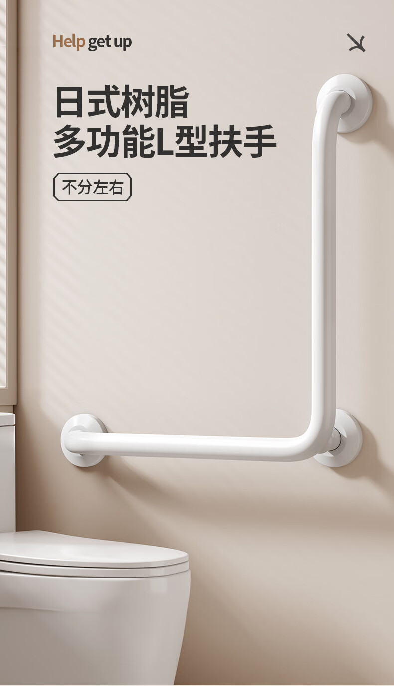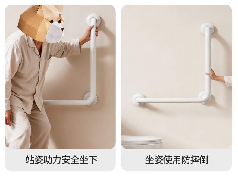 家文化(JIAWENHUA)卫生间马桶扶手防滑无障碍老人残疾人厕所浴室安全折叠栏杆树脂铝 白树脂铝合金50*50CM中心尺