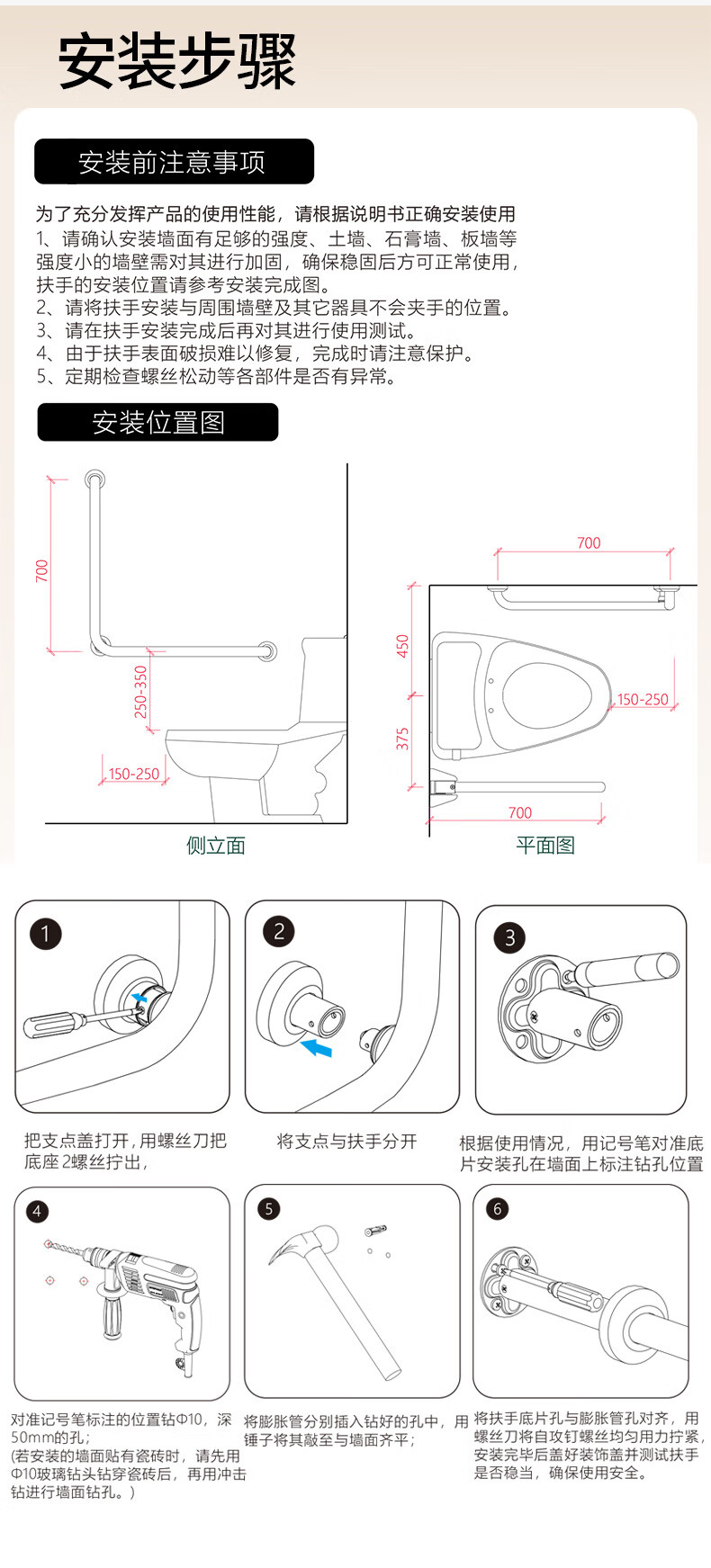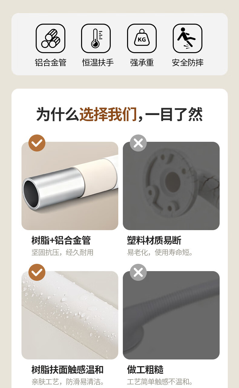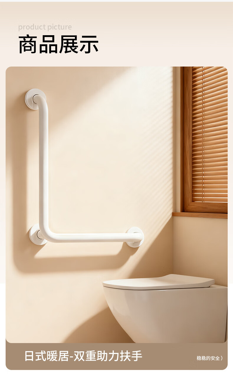 家文化(JIAWENHUA)卫生间马桶扶手防滑无障碍老人残疾人厕所浴室安全折叠栏杆树脂铝 白树脂铝合金50*50CM中心尺