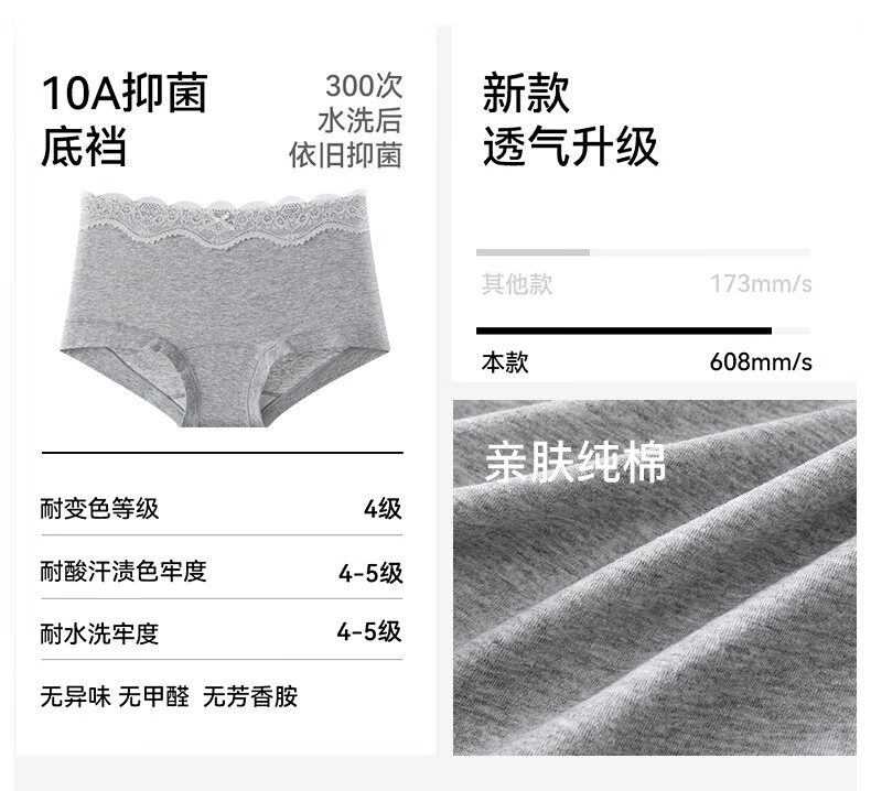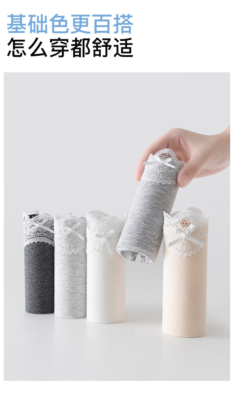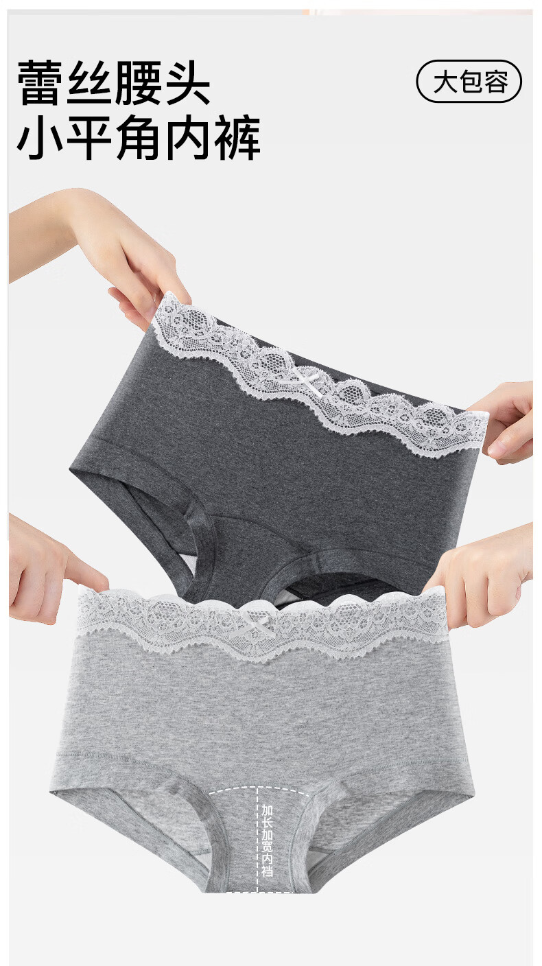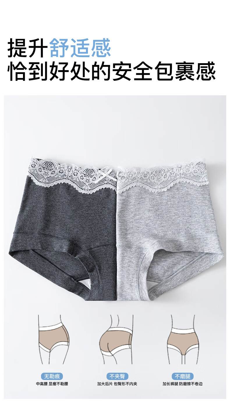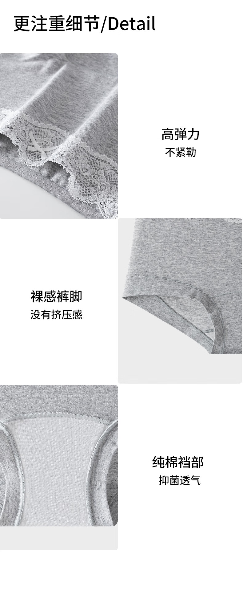 真维斯(Jeanswest)真维斯女士内裤女生纯棉亲肤宽松中腰抗菌裆少女蕾丝小平角短裤头 【4条】中灰+白色+杏色+深灰 M 80-100斤