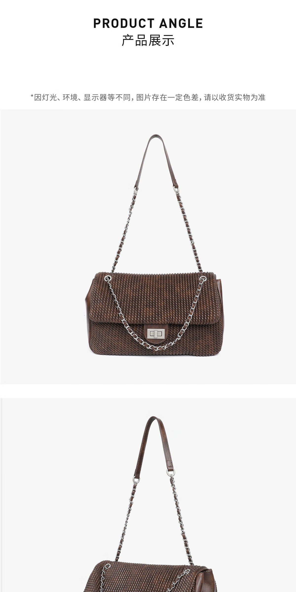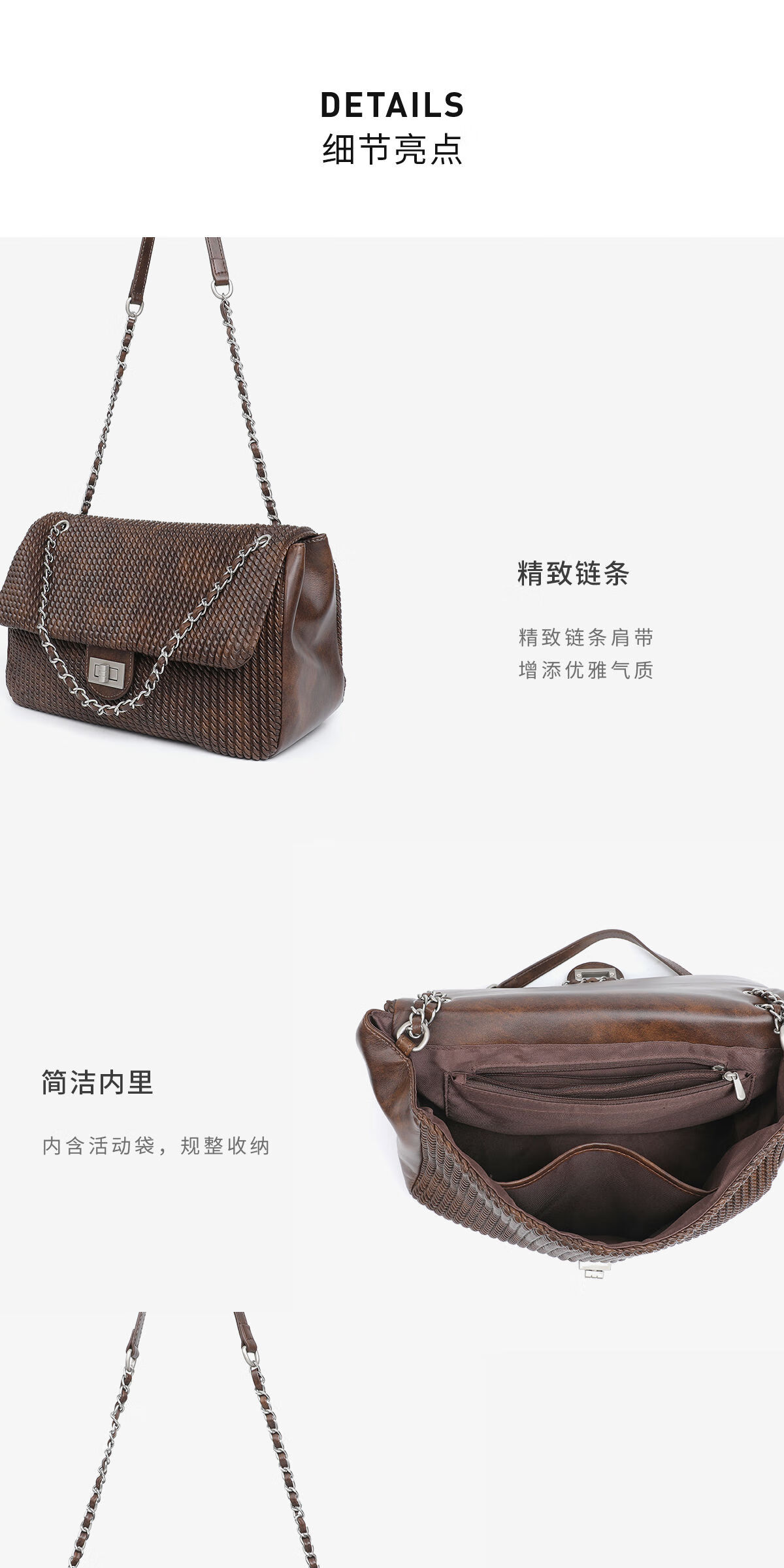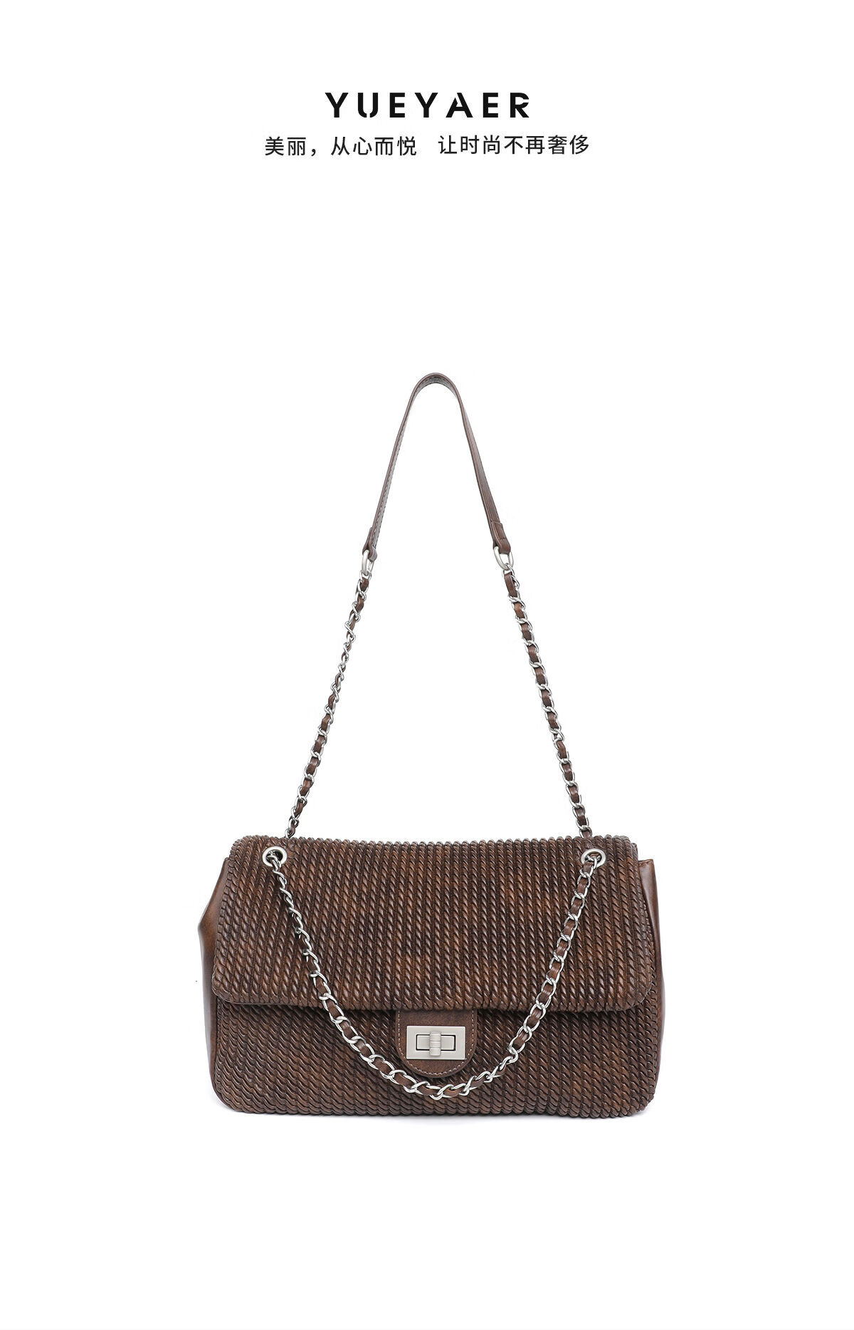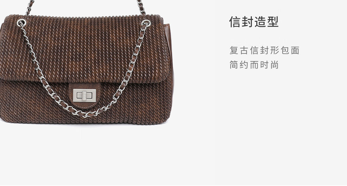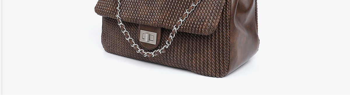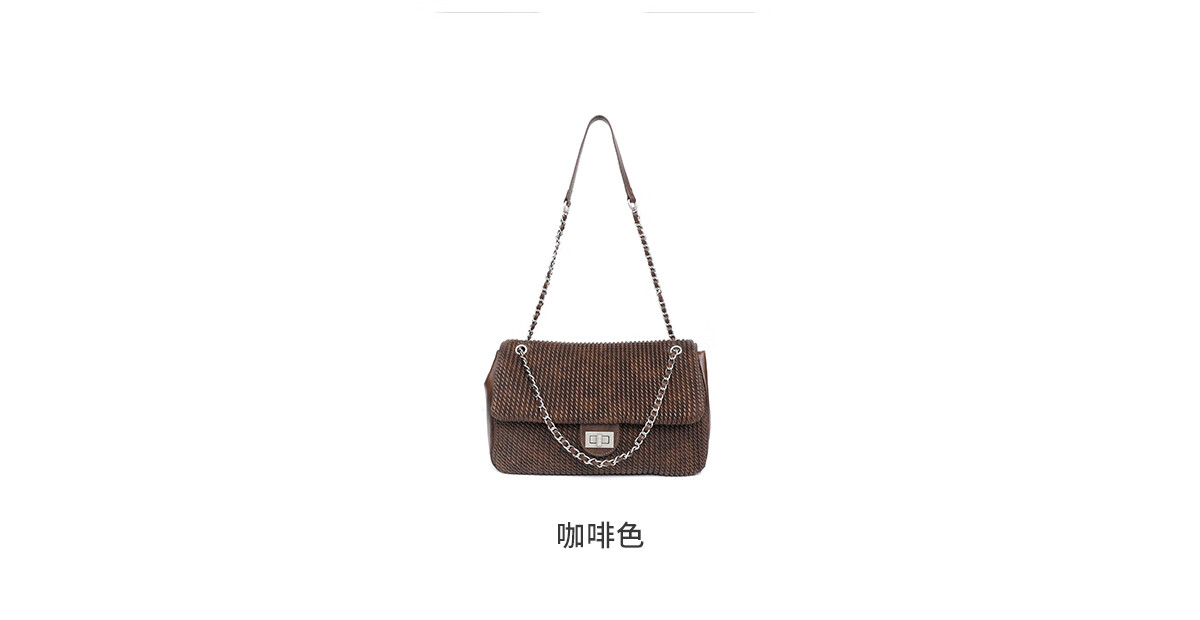 月芽儿链条手提包编织小方包女单肩斜挎包复古包包百搭时尚腋下包 咖啡色20