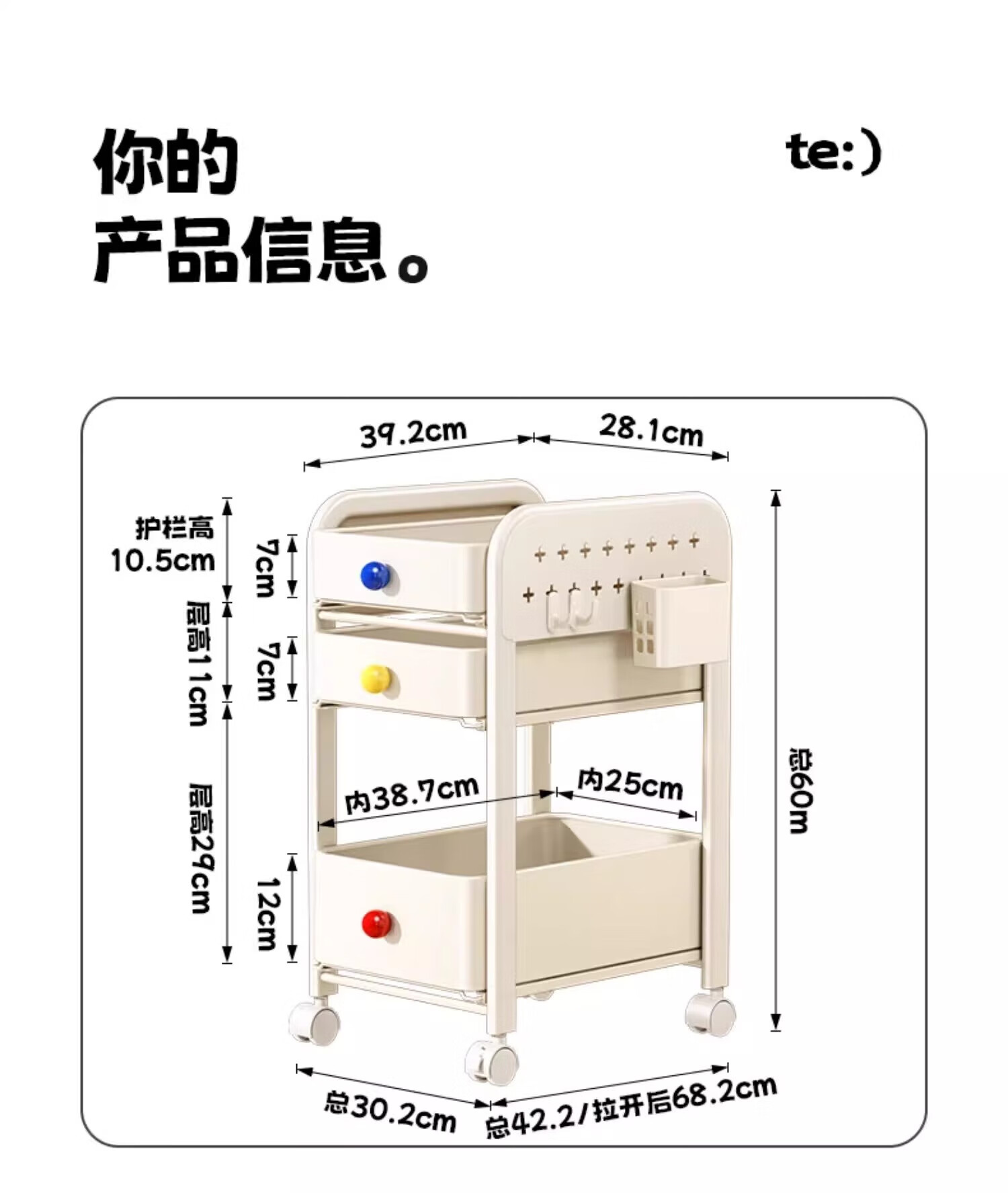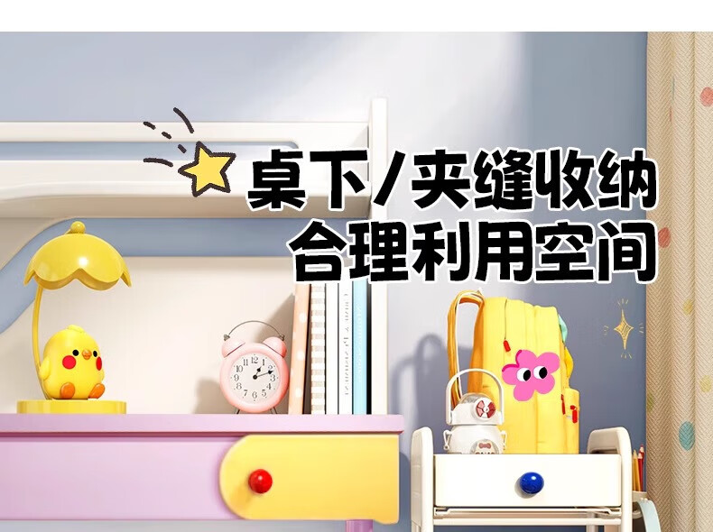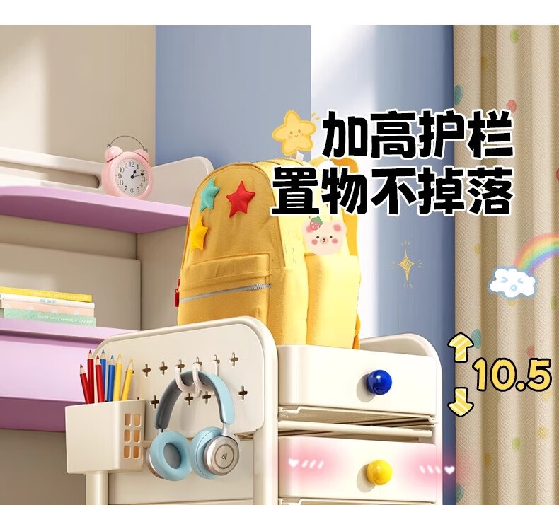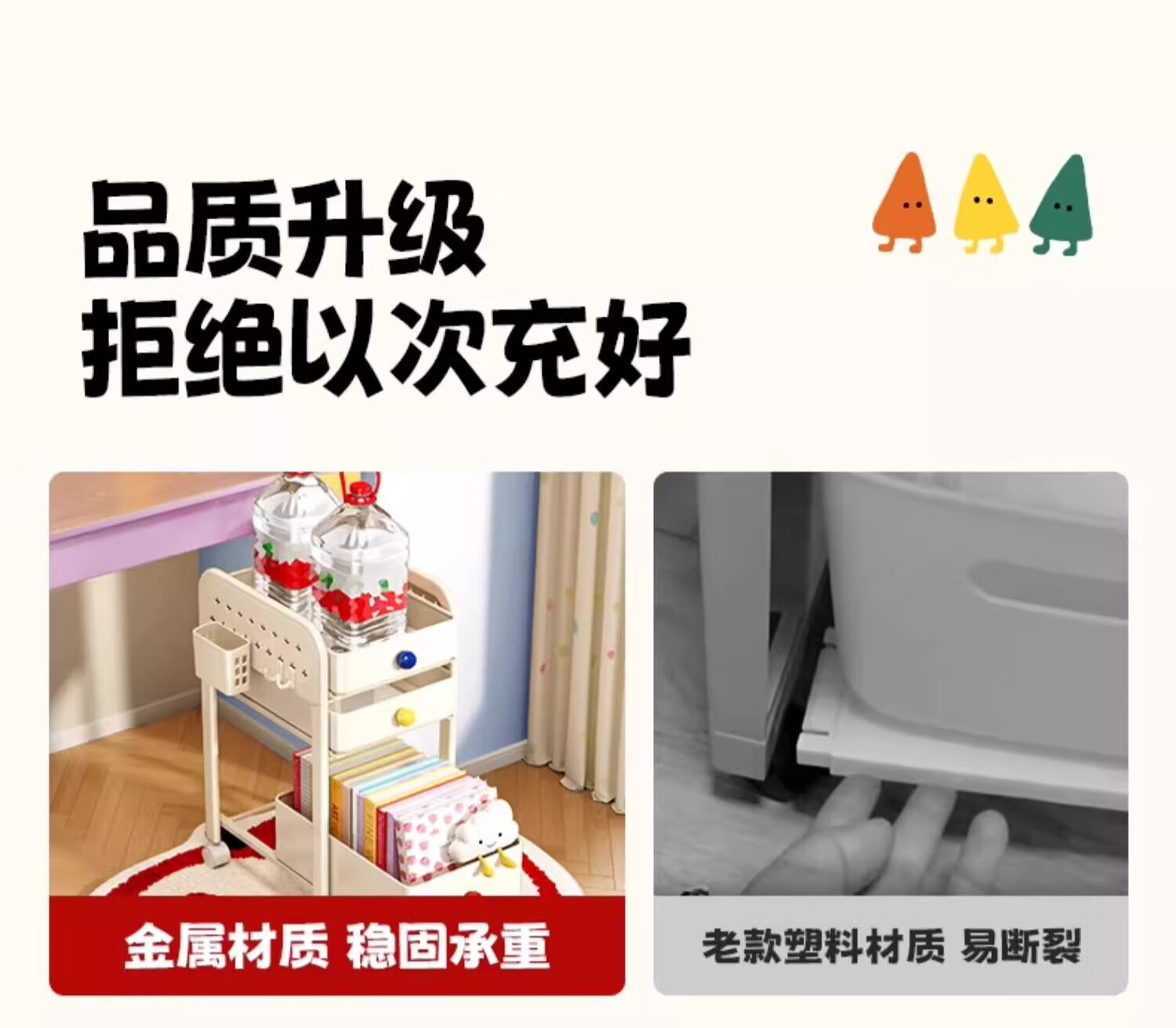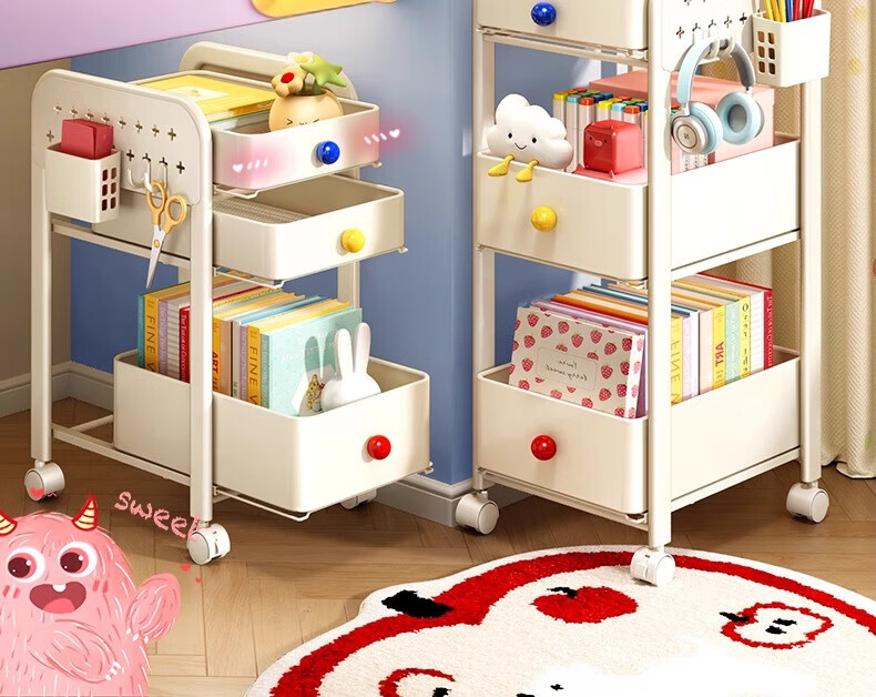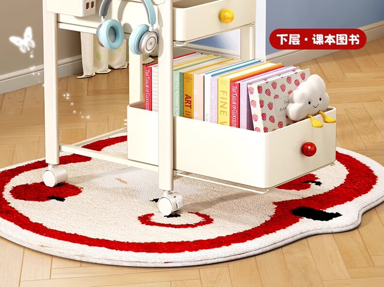 馨婺家书包置物架放书本零食收纳架家用多层桌下滑轮柜可移动夹缝小推车 经典款-双层1高1矮【挂钩*2收纳筒*1】