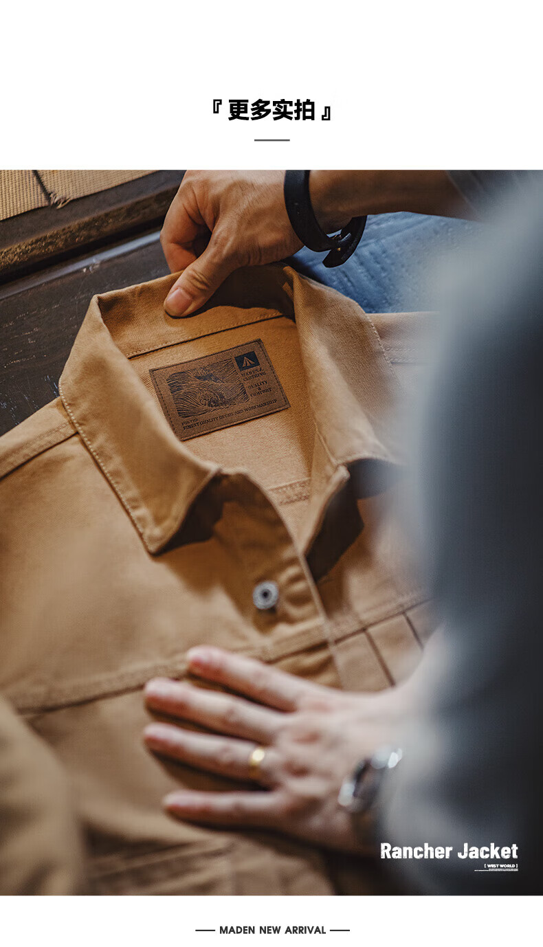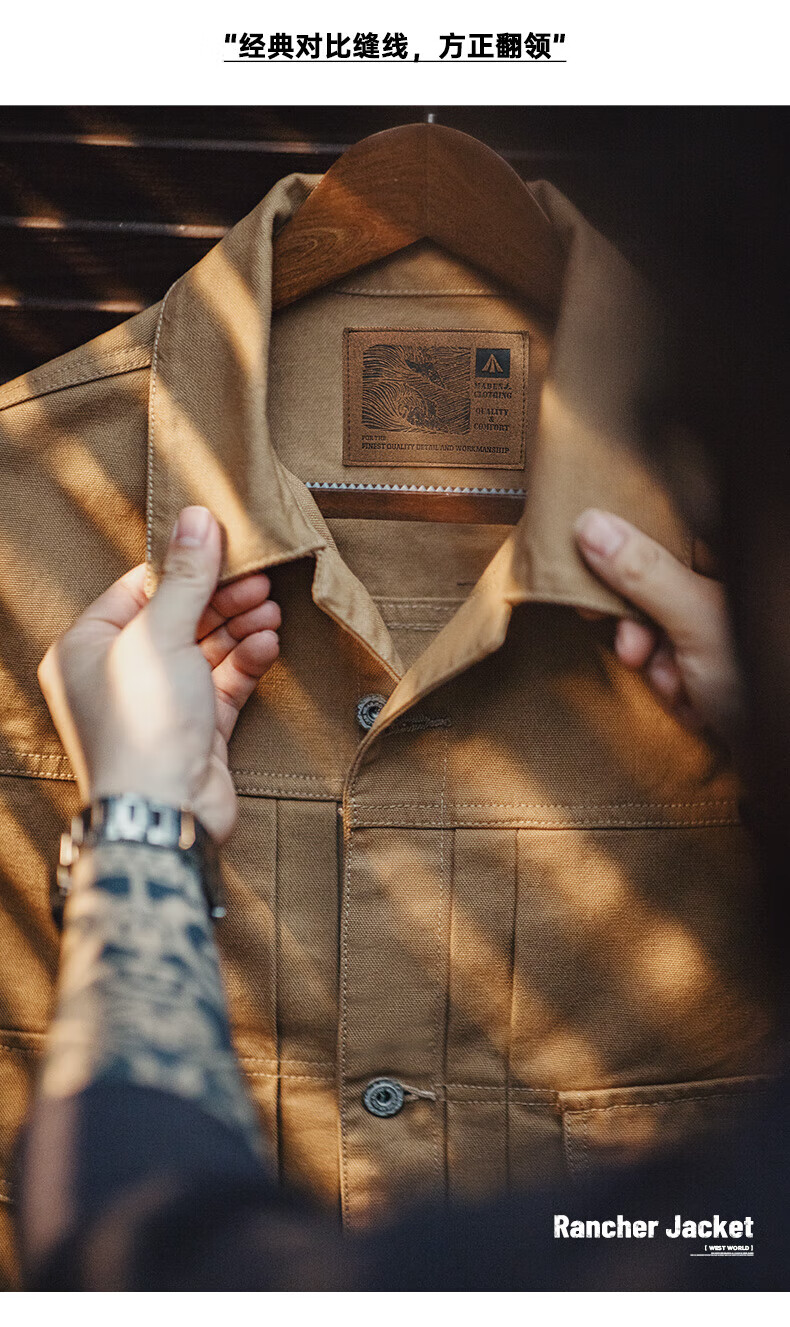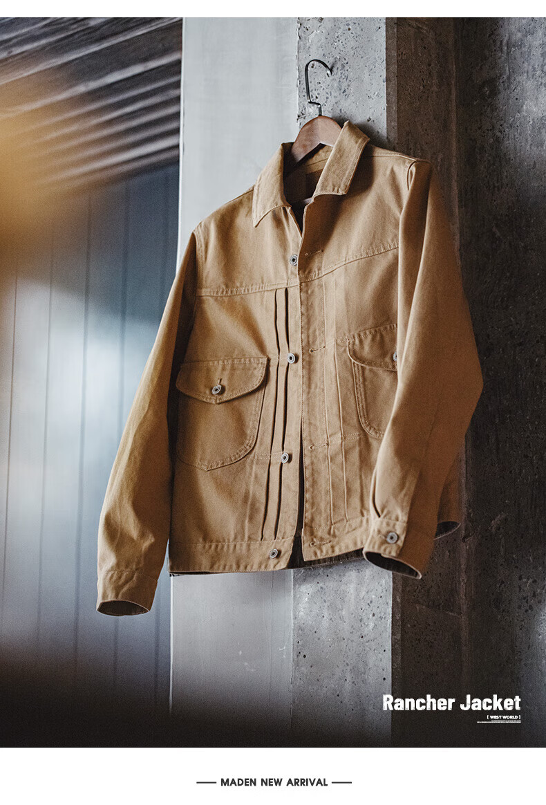 马登 MADEN美式复古西部牧场男士休闲夹克美拉德重磅帆布翻领牛仔外套男秋 姜黄色 XL