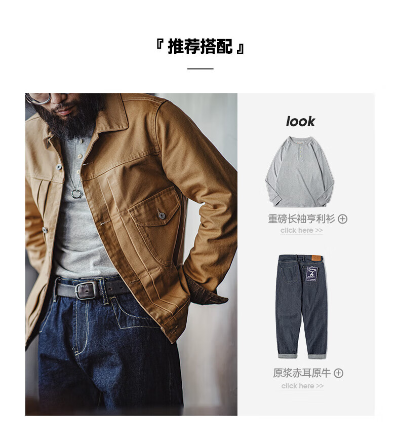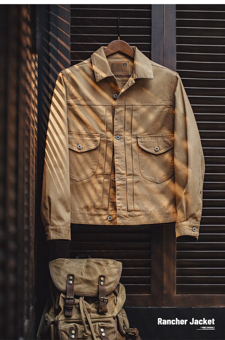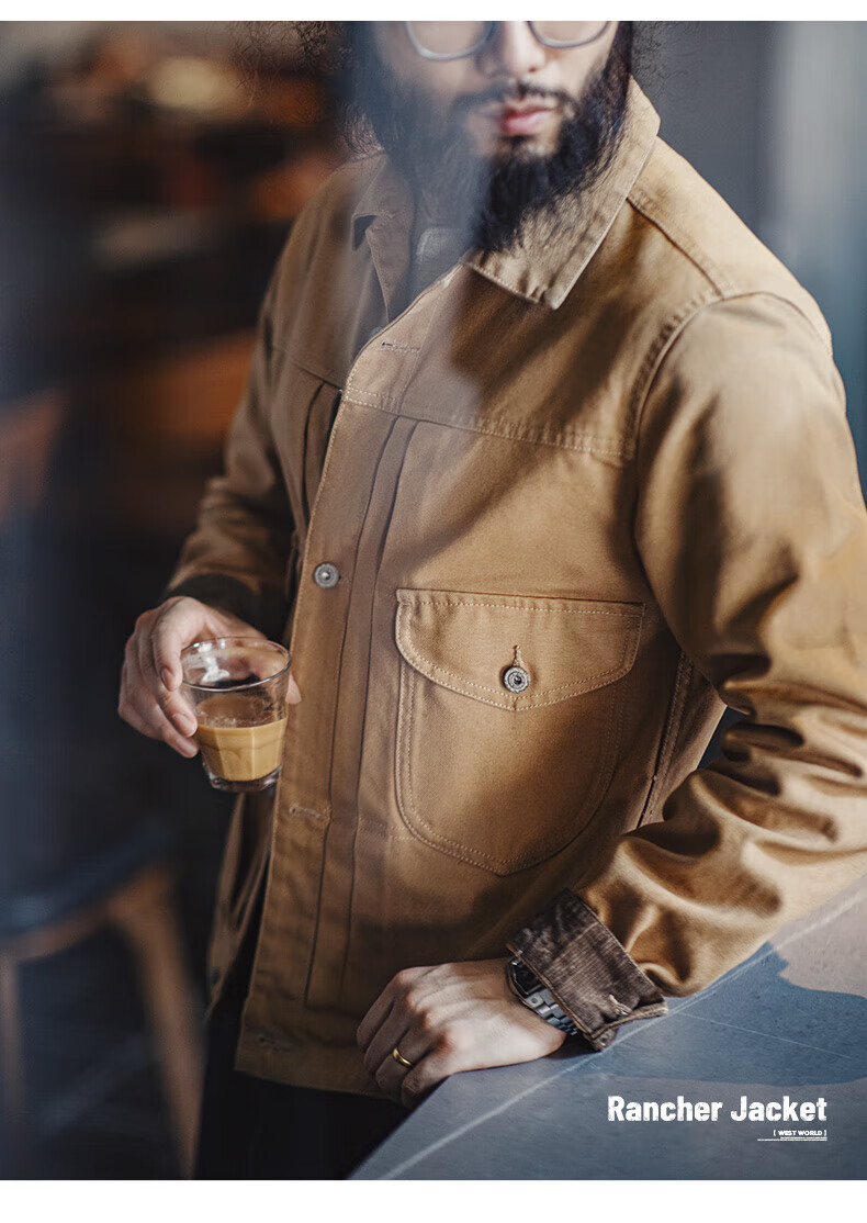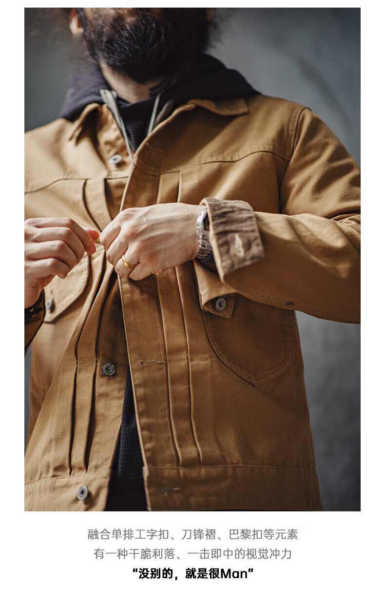 马登 MADEN美式复古西部牧场男士休闲夹克美拉德重磅帆布翻领牛仔外套男秋 姜黄色 XL