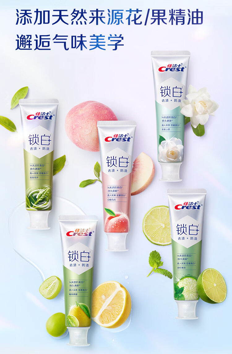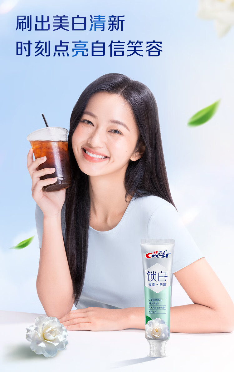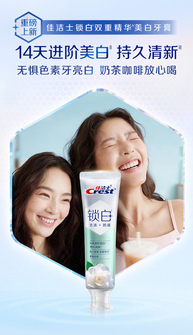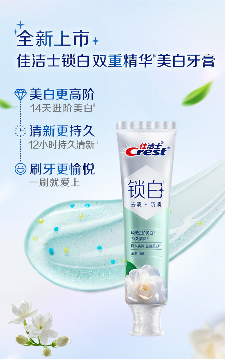 佳洁士新锁白双重精华美白清新牙膏茉莉山茶味去渍含氟120g京东自营