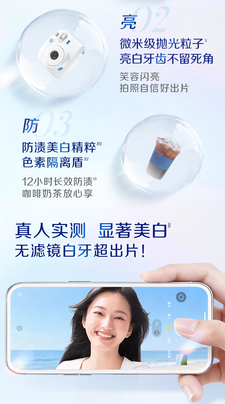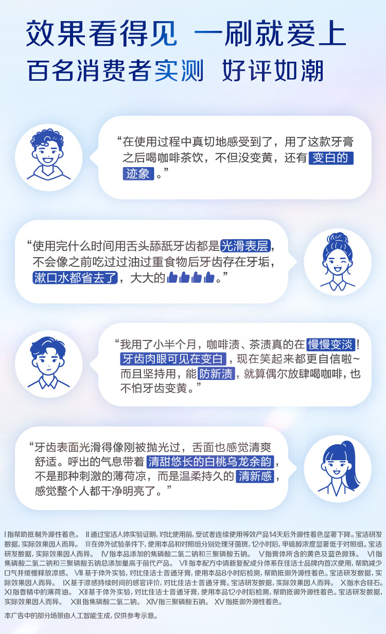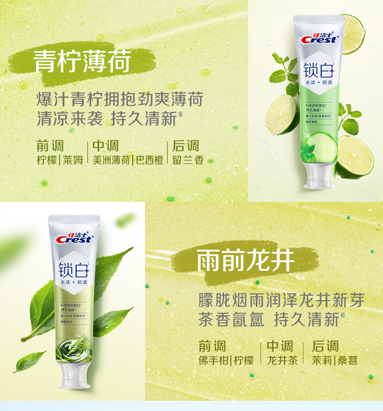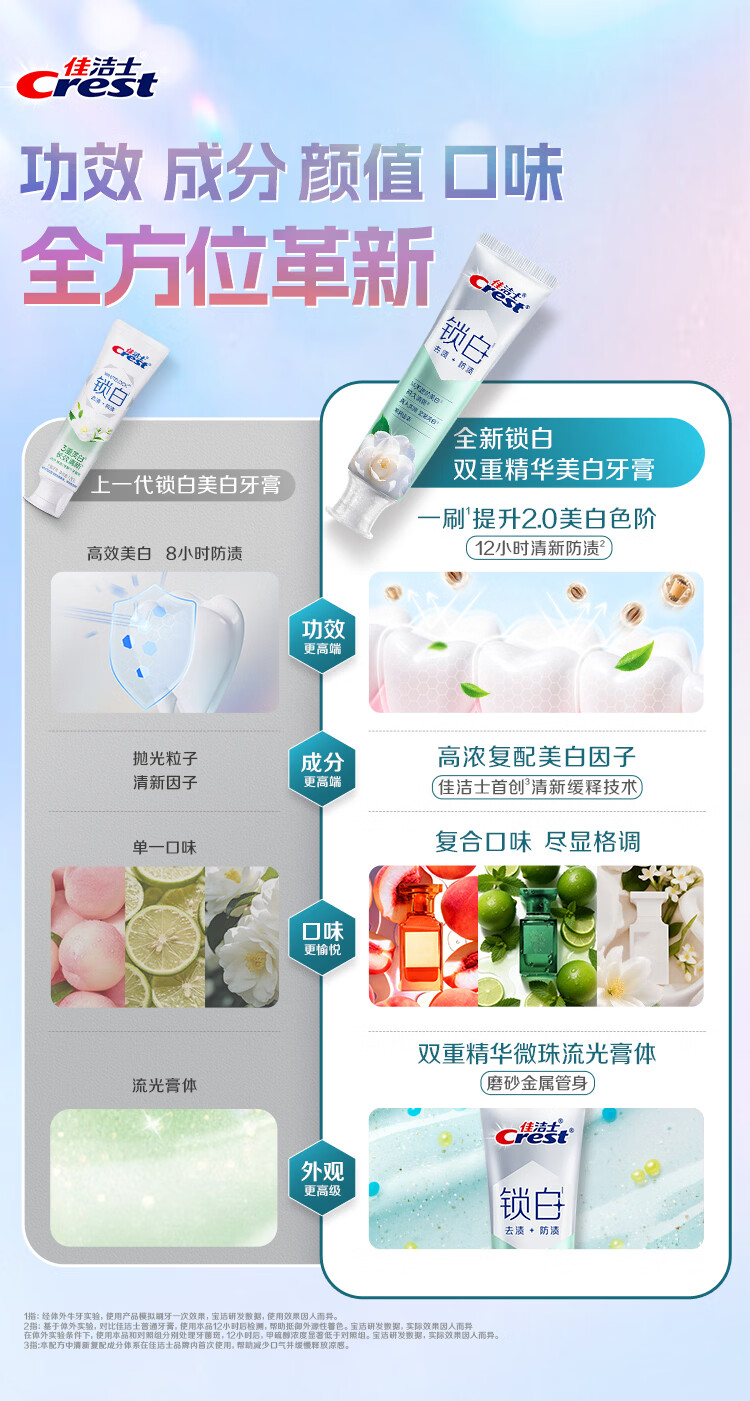 佳洁士新锁白双重精华美白清新牙膏茉莉山茶味去渍含氟120g京东自营