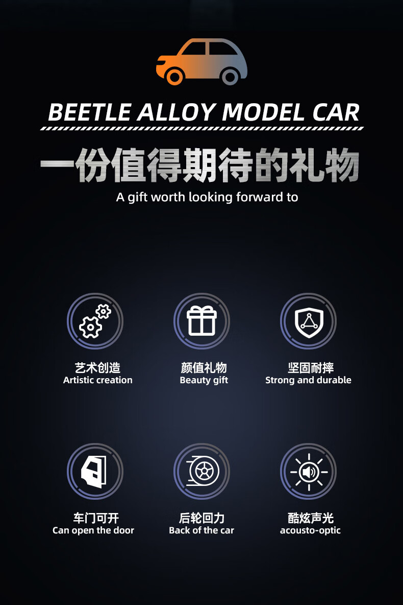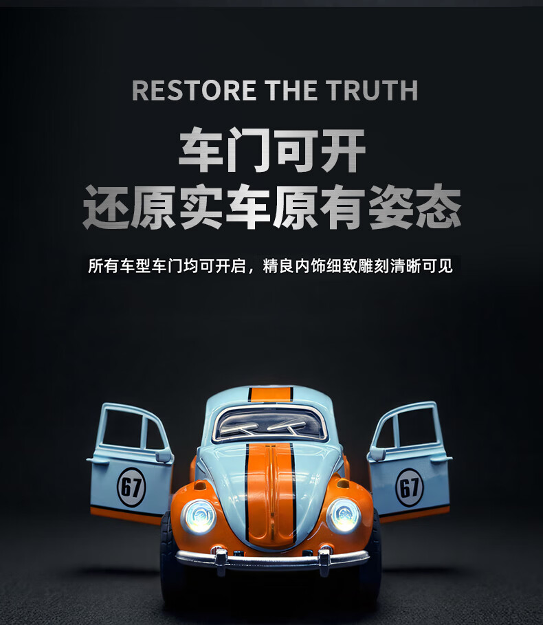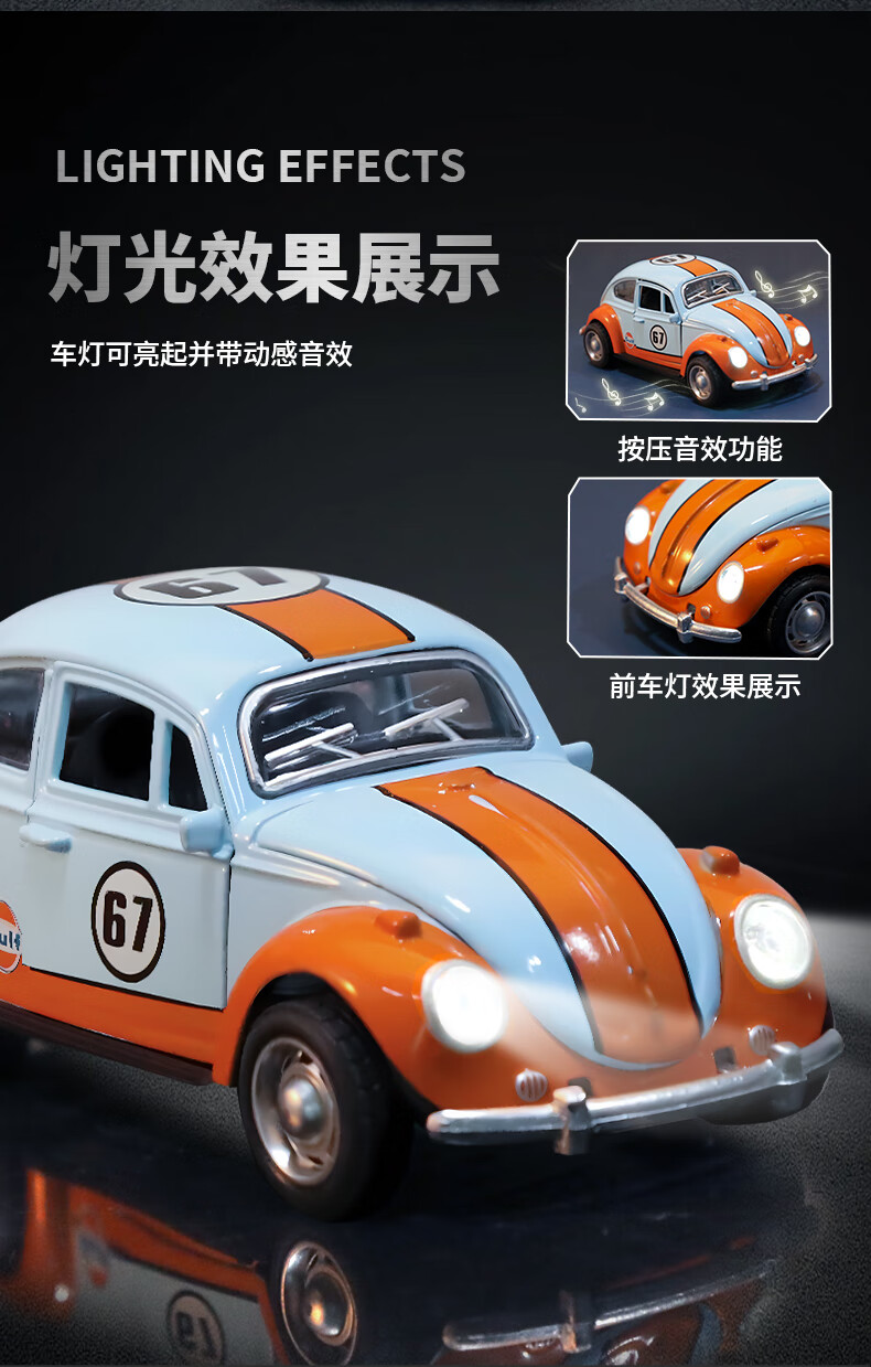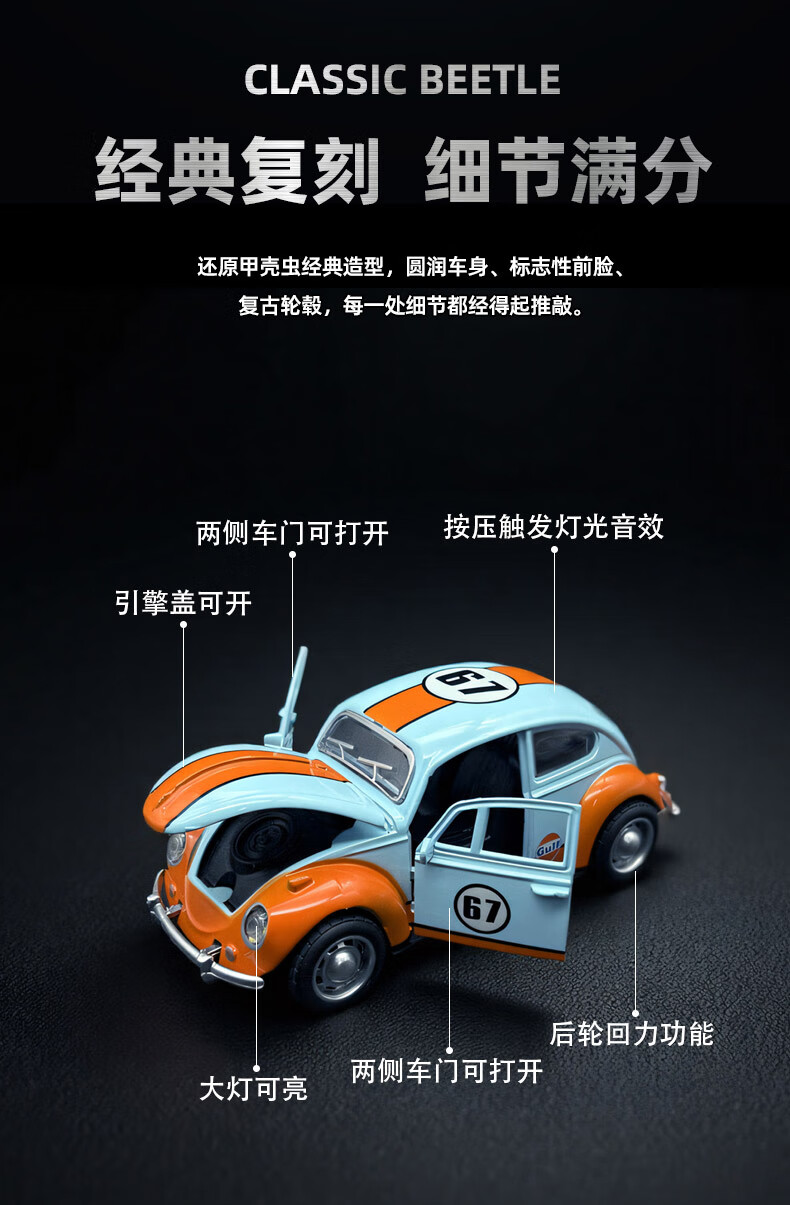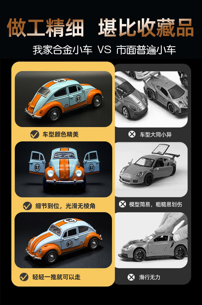 恩贝家族儿童合金甲壳虫玩具车男孩3-6岁老爷车回力汽车模型摆件生日礼物