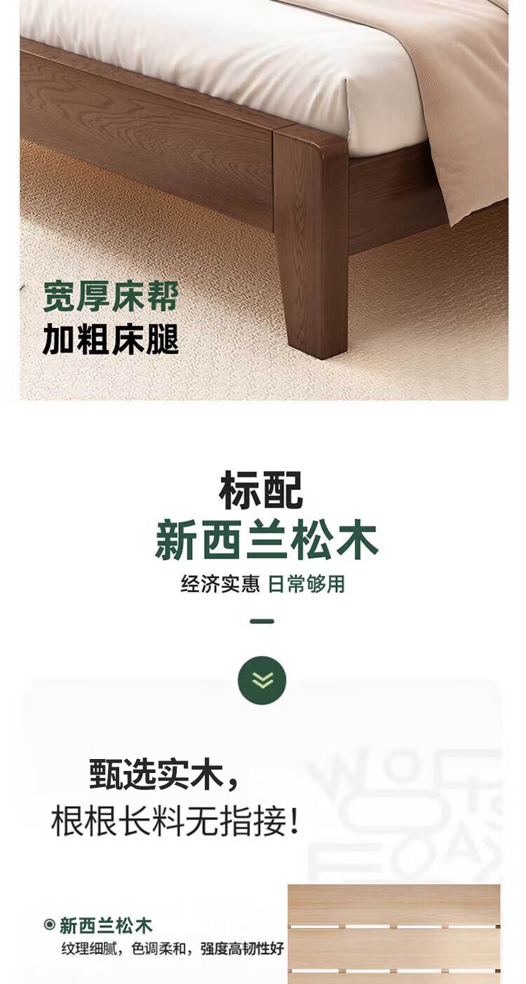 科虎实木床双人床1.8x2米主卧大床家用1.5x2米 【松木排骨架】橡木床 180*200cm