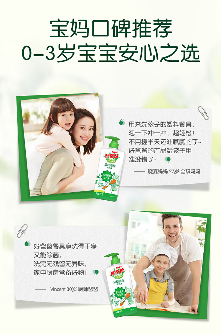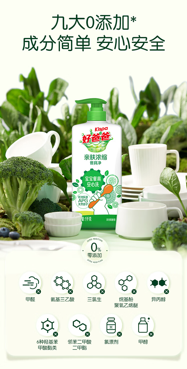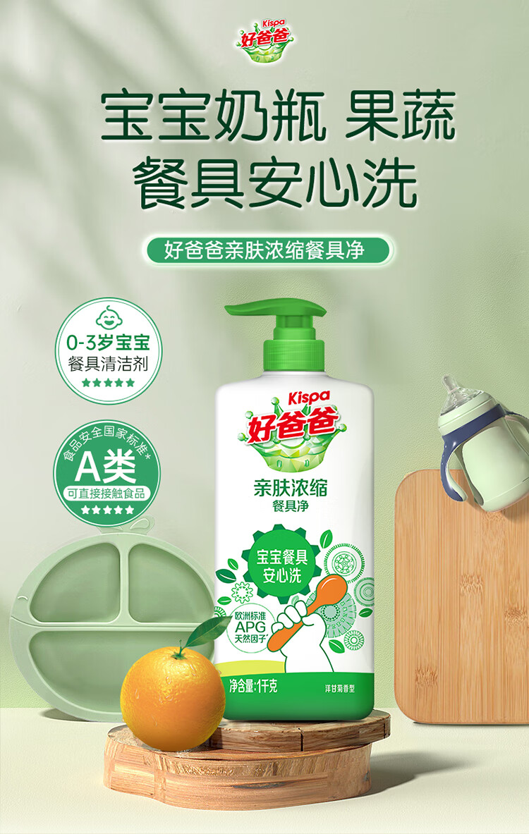 好爸爸(Kispa)亲肤浓缩餐具净洗洁精1kg A类食品用 可洗宝宝婴童餐碗奶瓶果蔬